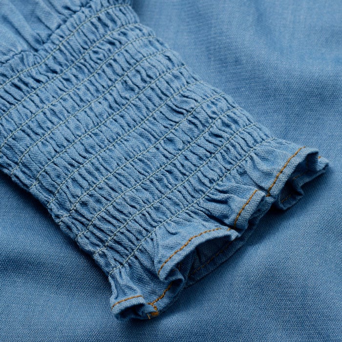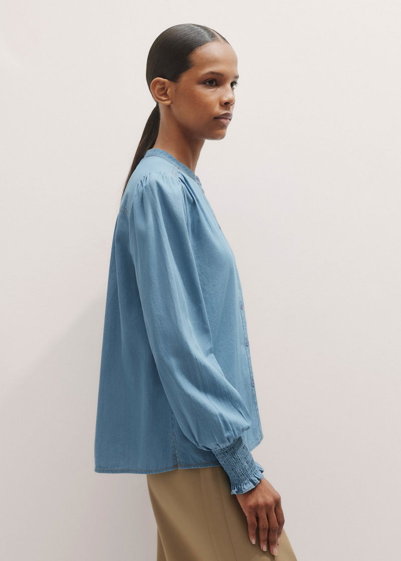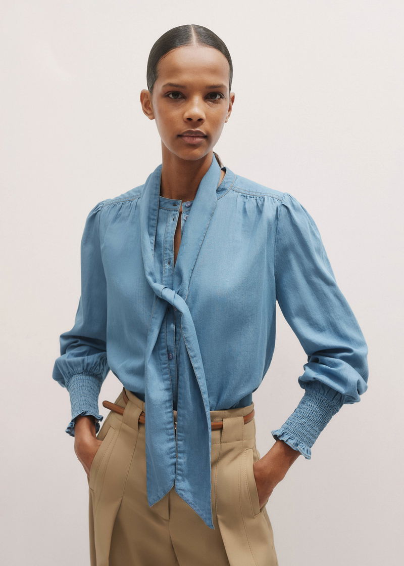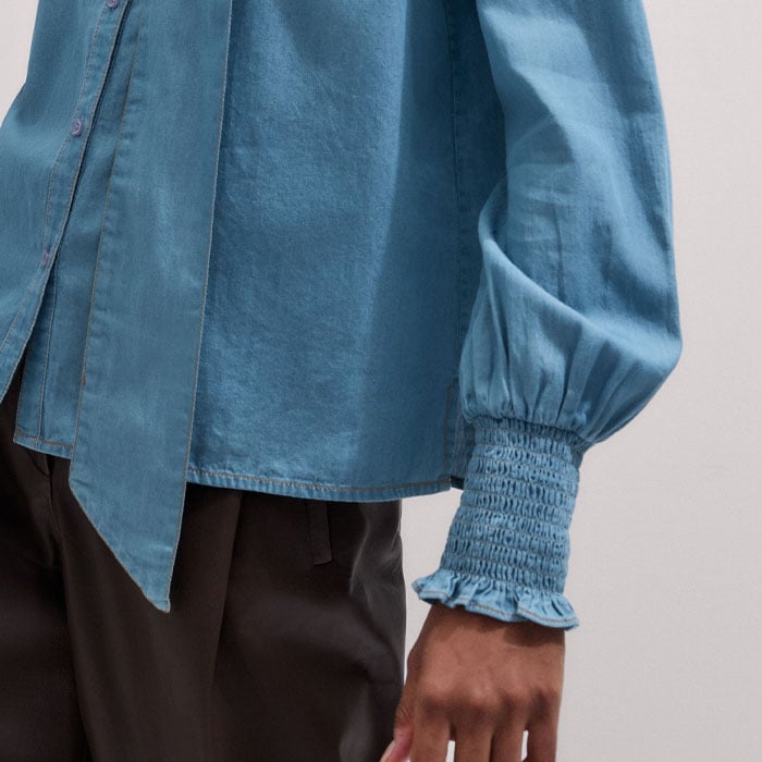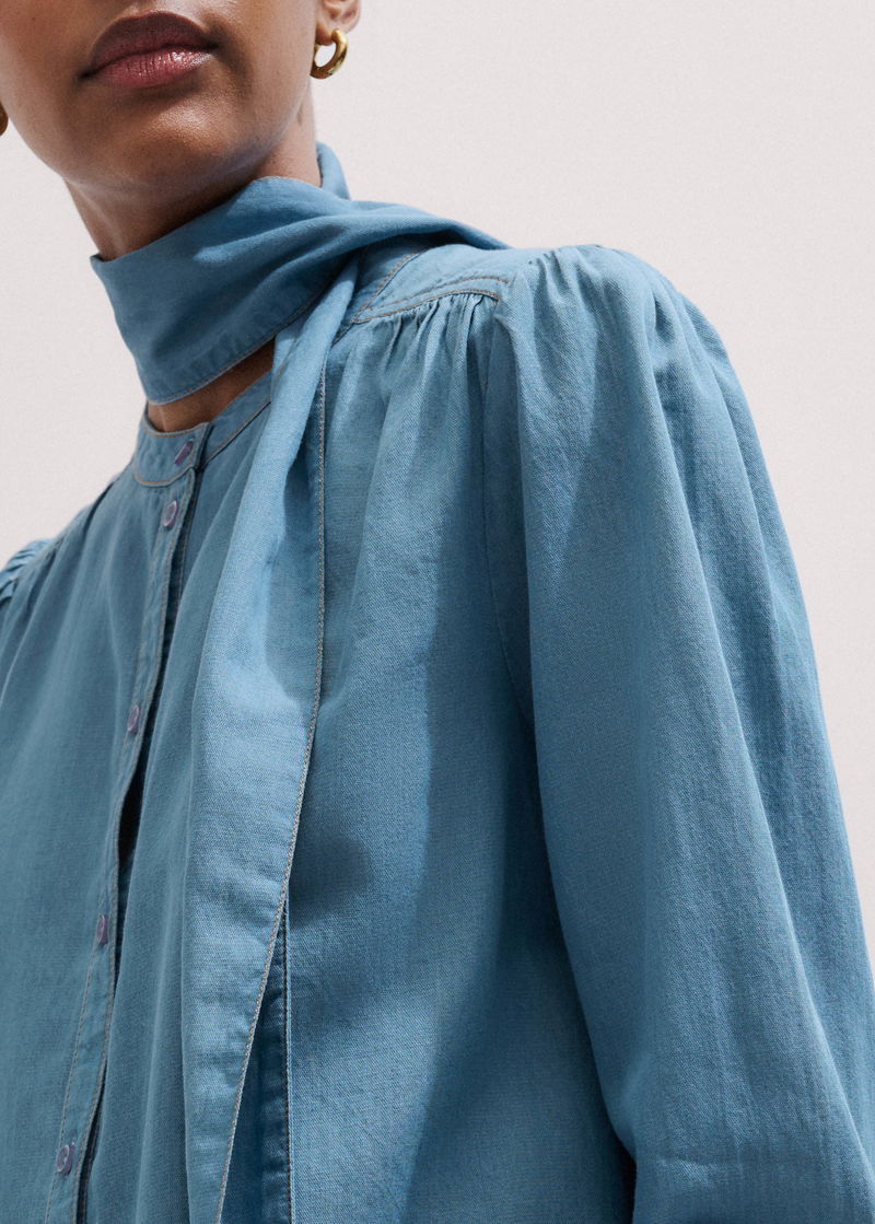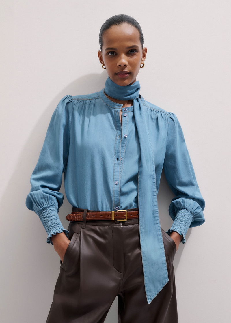 Chambray Pussybow Blouse + Tie Chambray Blue