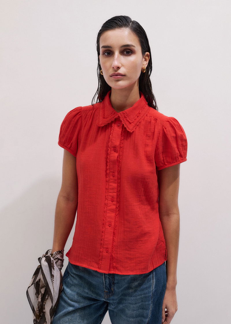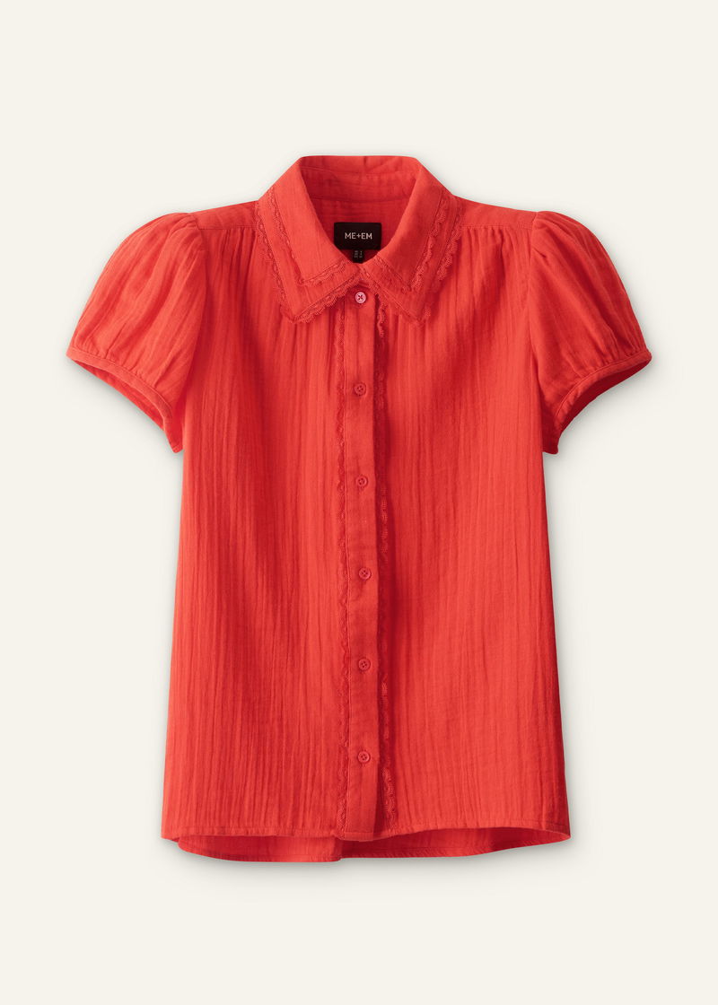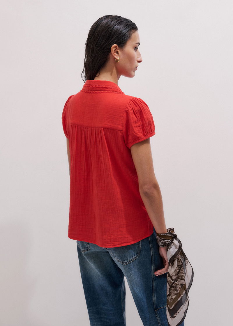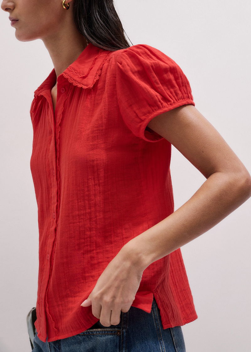 Cheesecloth Cap-Sleeve Blouse Poppy Red
