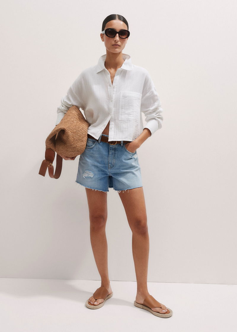 Cheesecloth Cropped Shirt Soft White