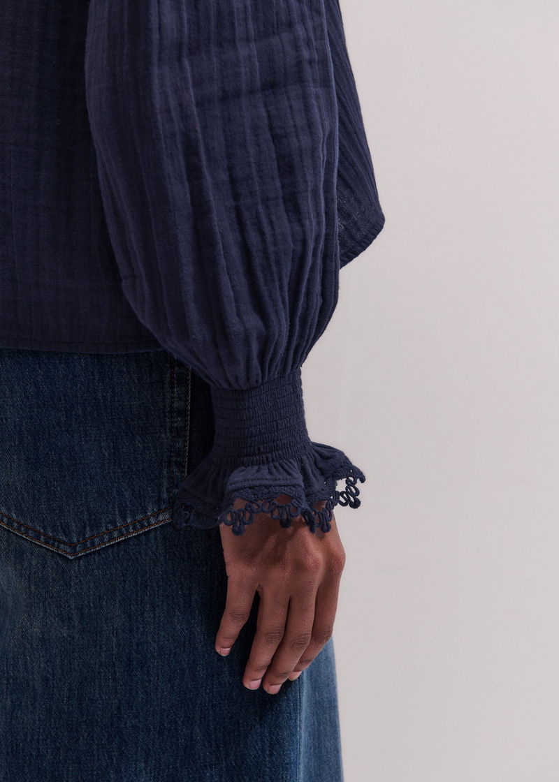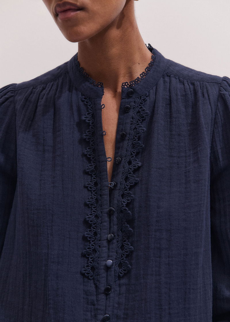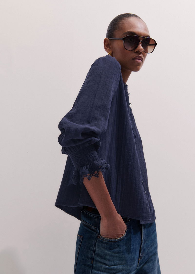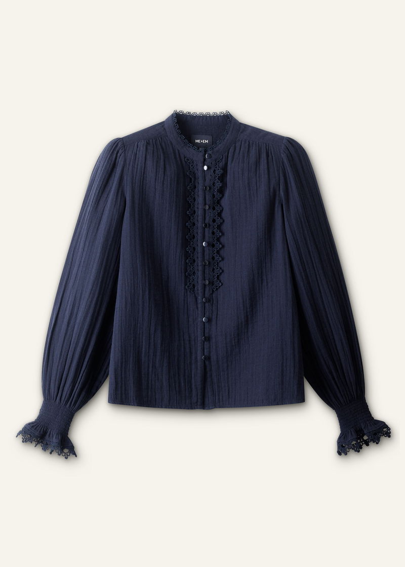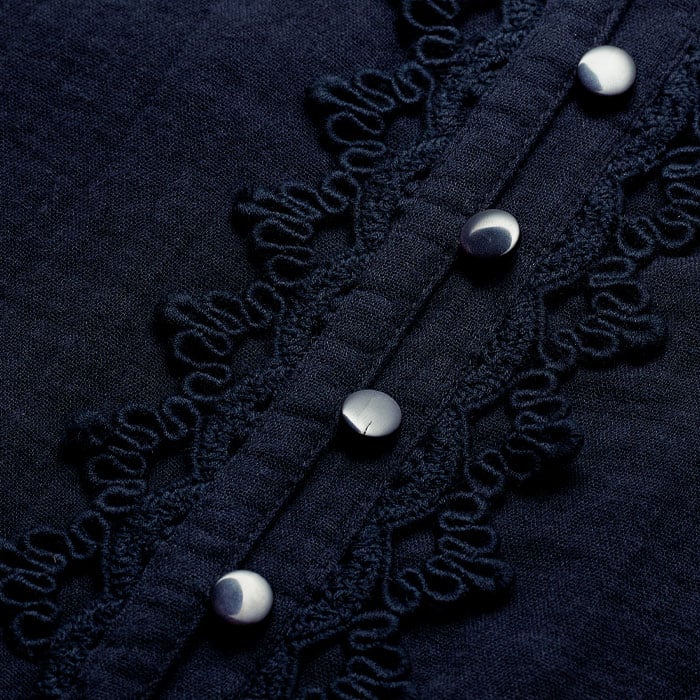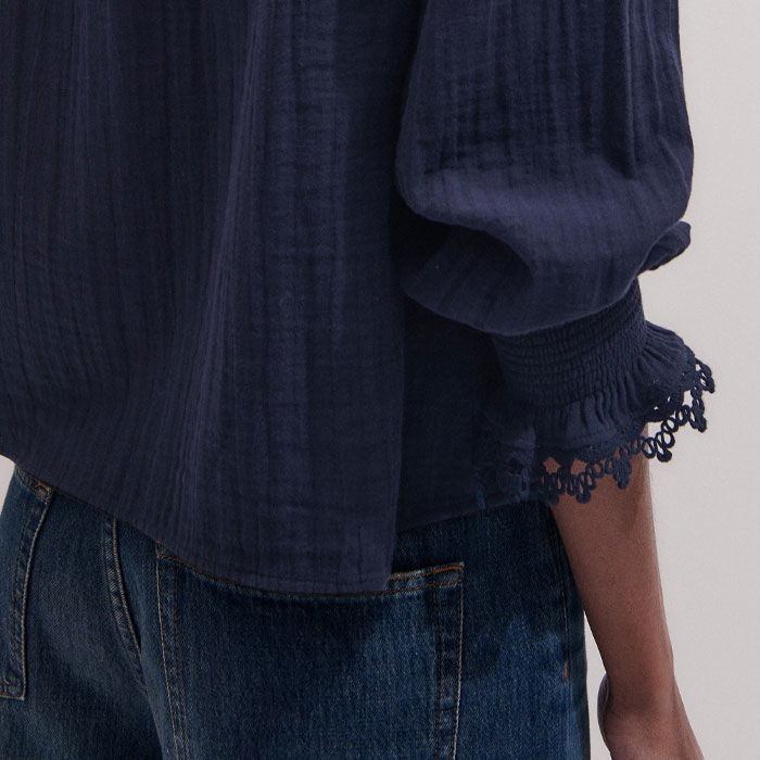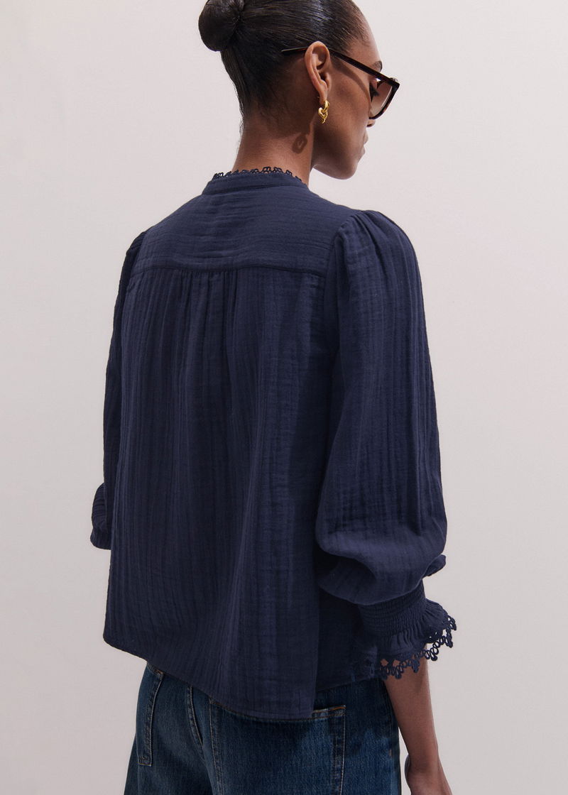 Cheesecloth Intricate Detail Blouse Navy