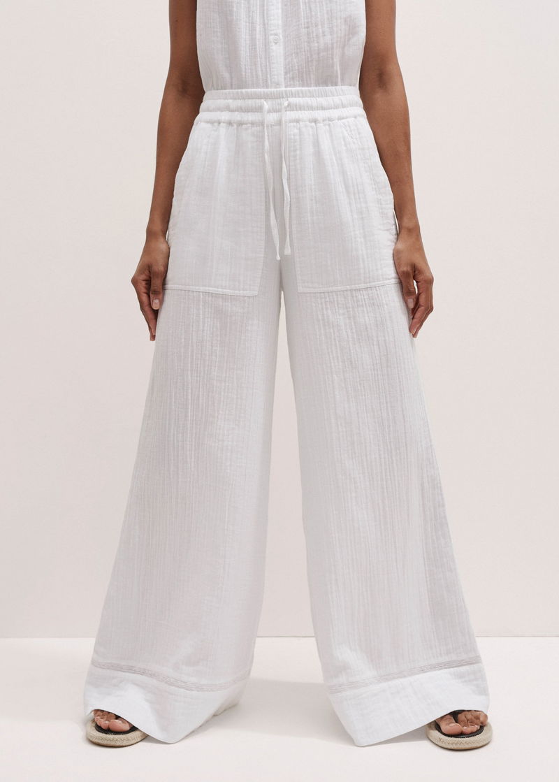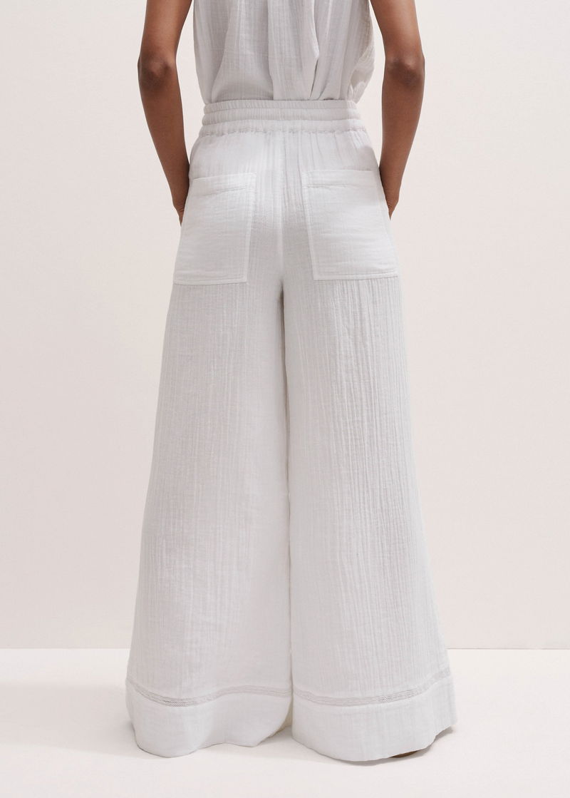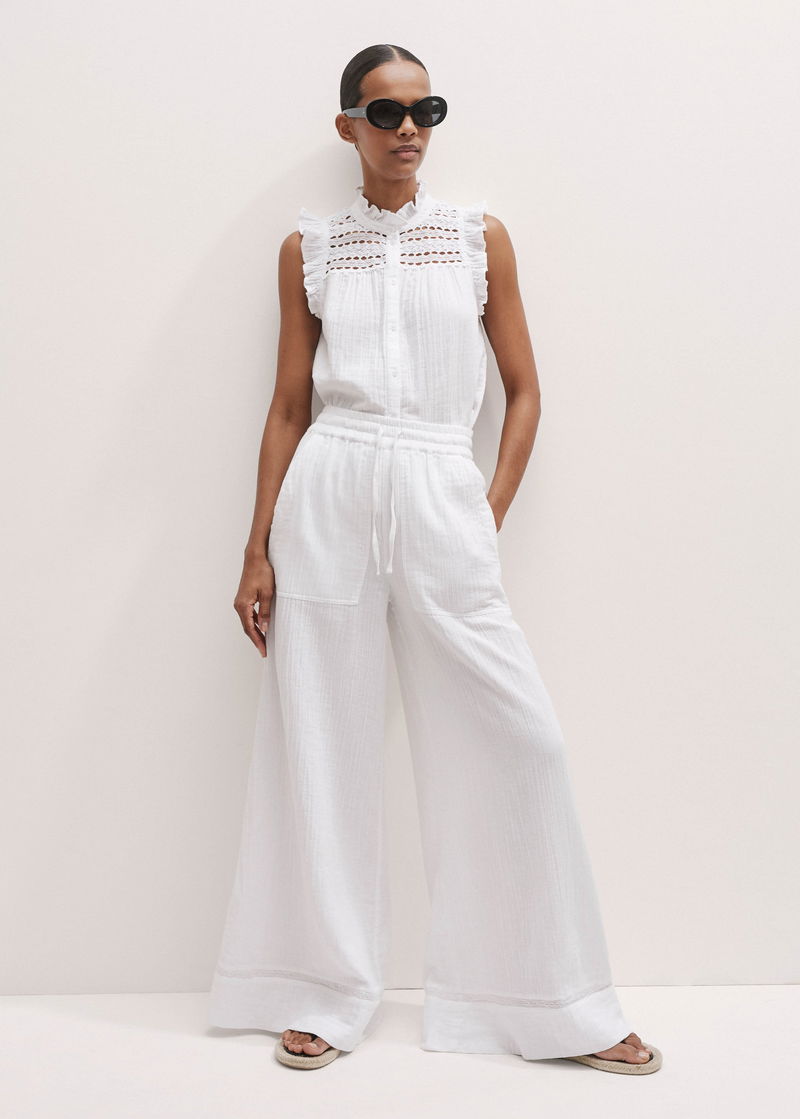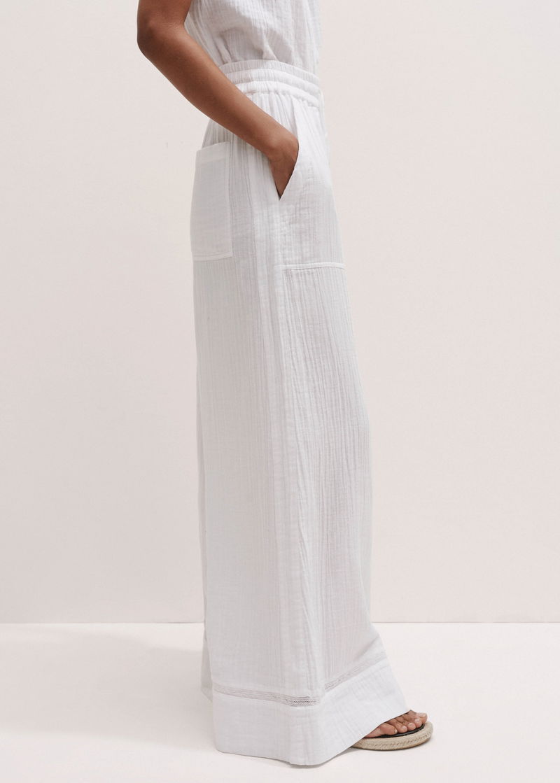 ME+EM's White Cheesecloth Lace Trim Insert Trouser is crafted from cotton cheesecloth with an iron-free finish for AM-PM polish.