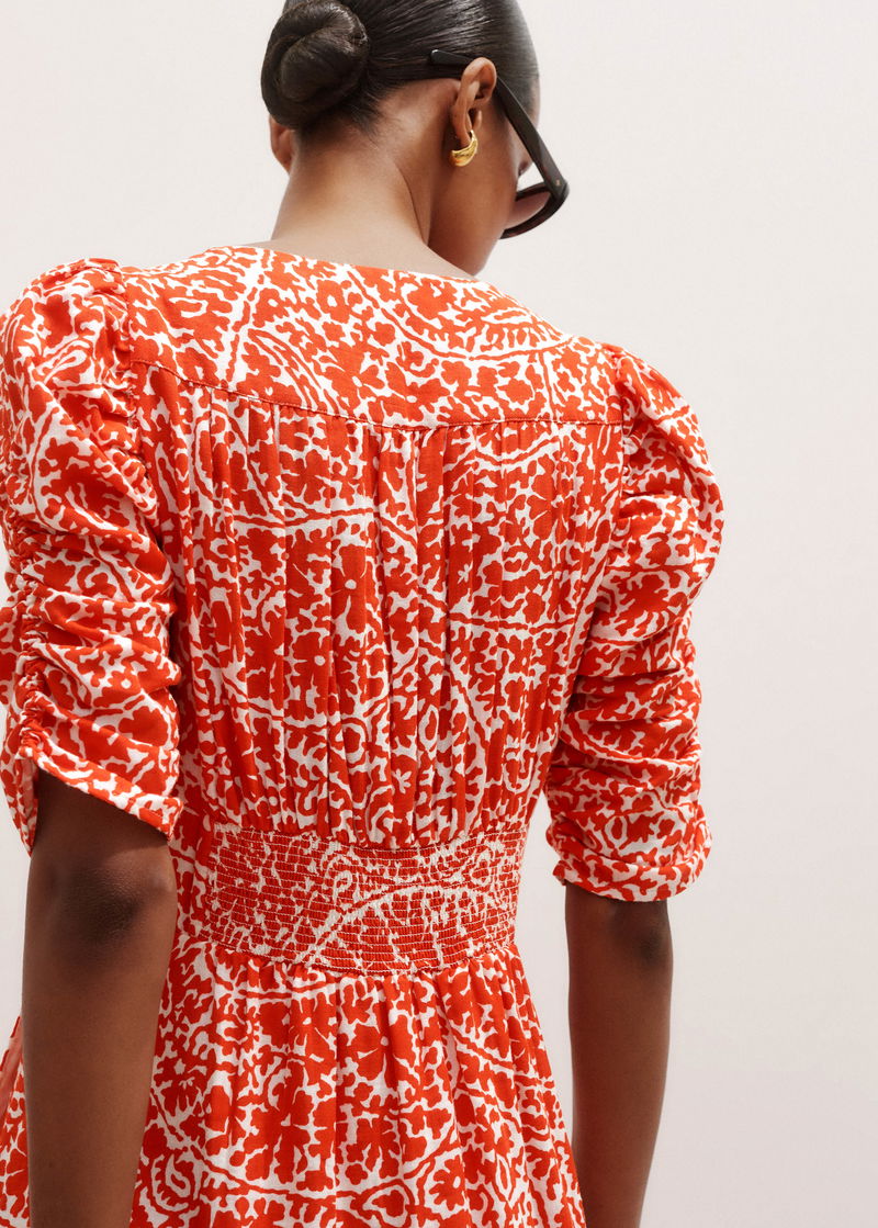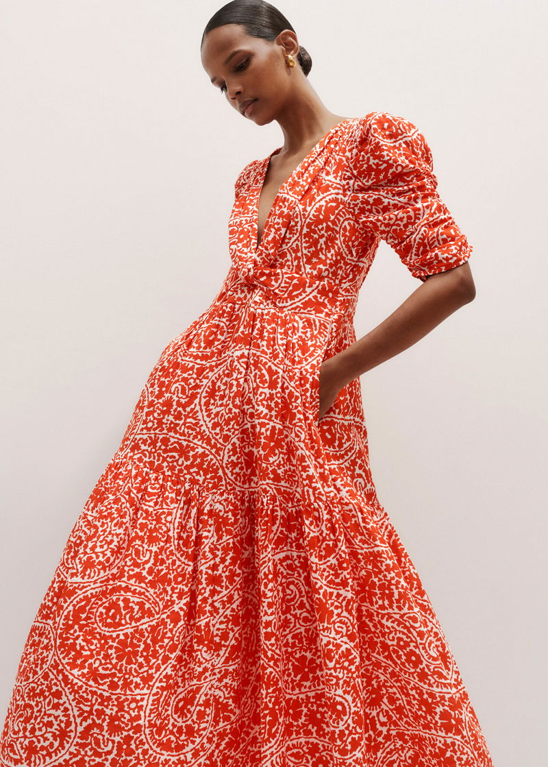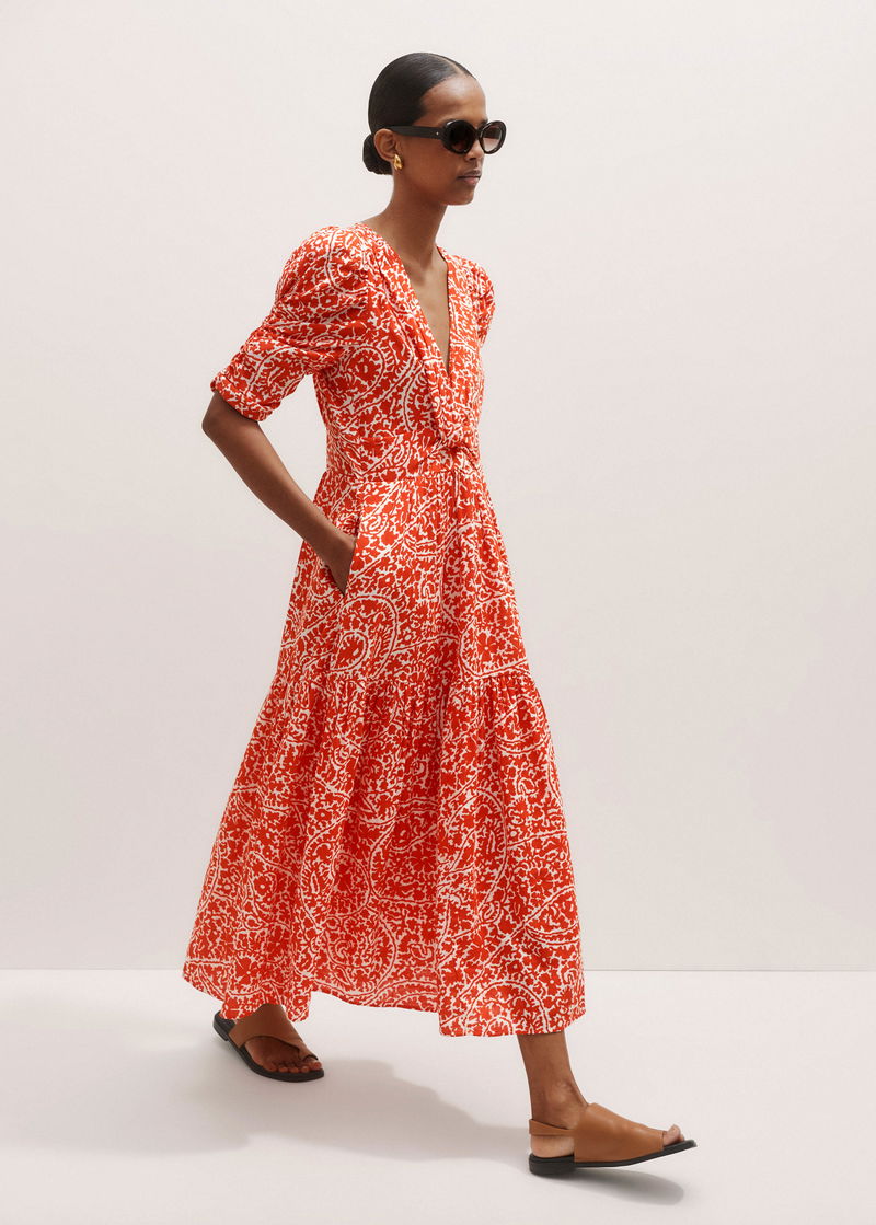 Cheesecloth Mono Paisley Print Maxi Dress Orange/Soft White