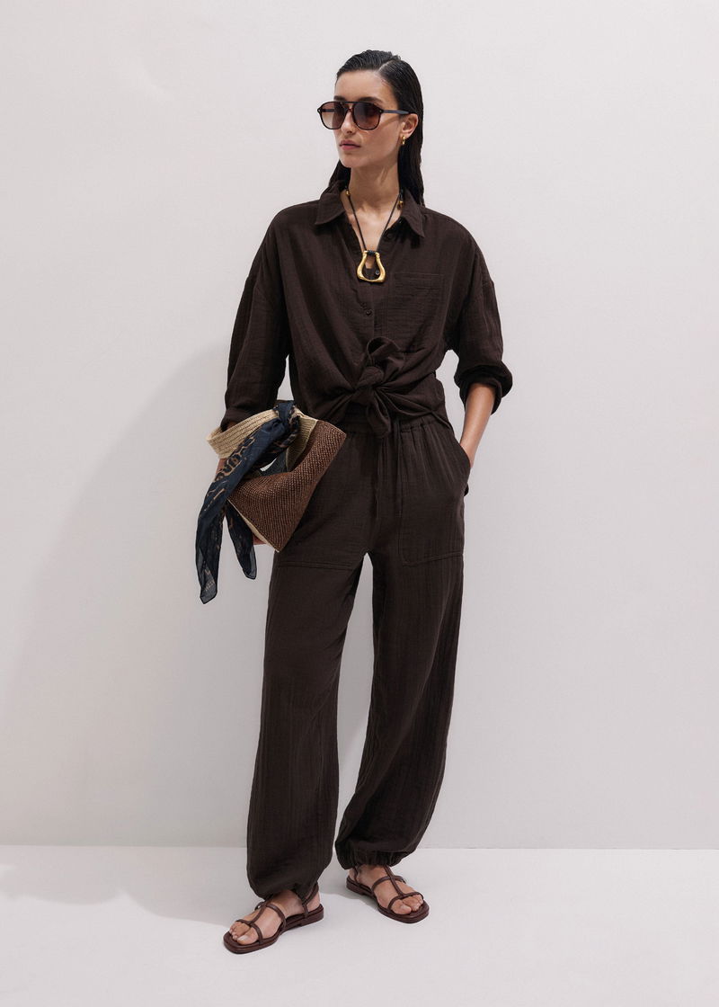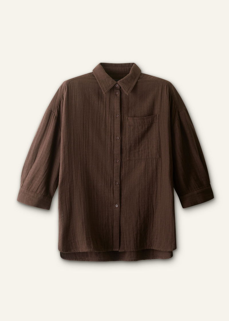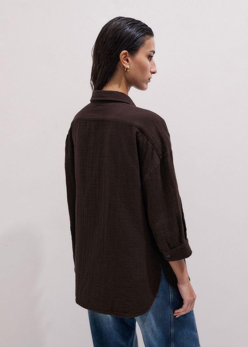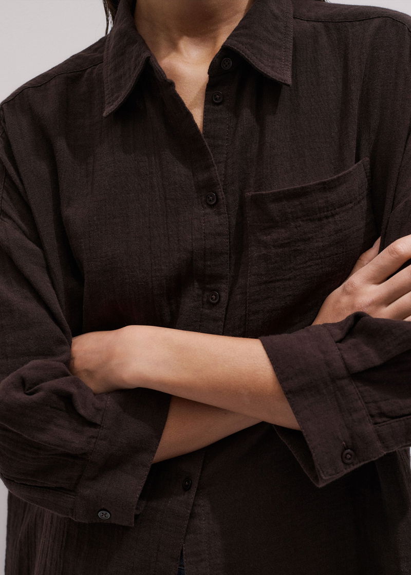 ME+EM's Brown Cheesecloth Relaxed Summer Shirt is crafted from lightweight, breathable cotton cheesecloth.