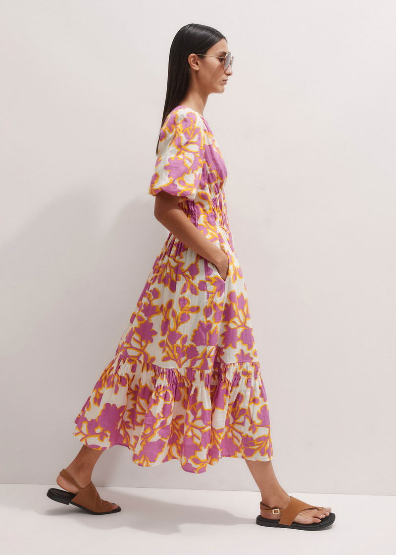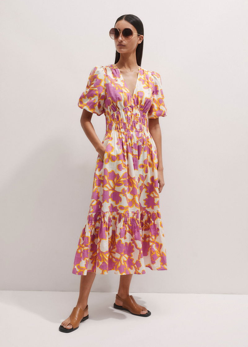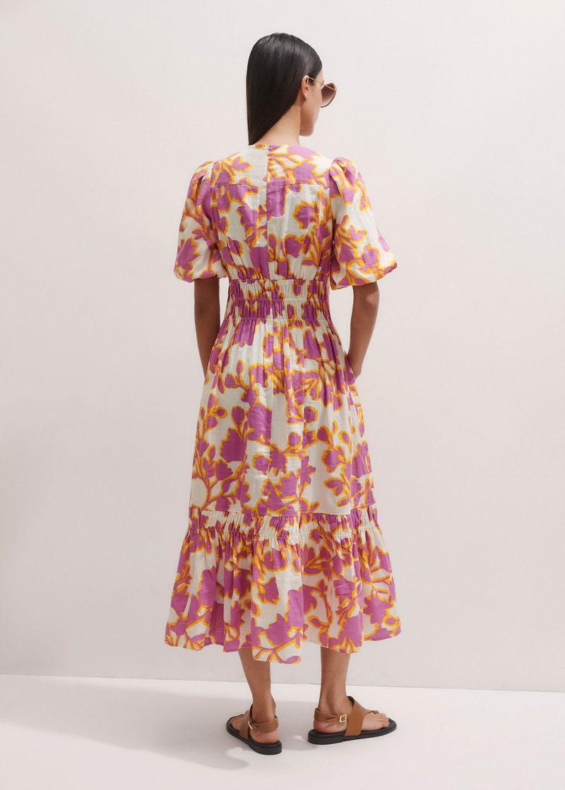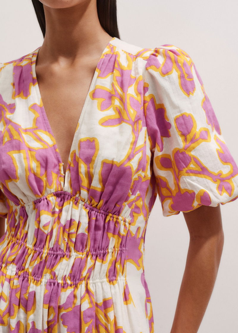 Cheesecloth Shadow Paradise Print Midi Dress White/Electric Lilac/Yellow