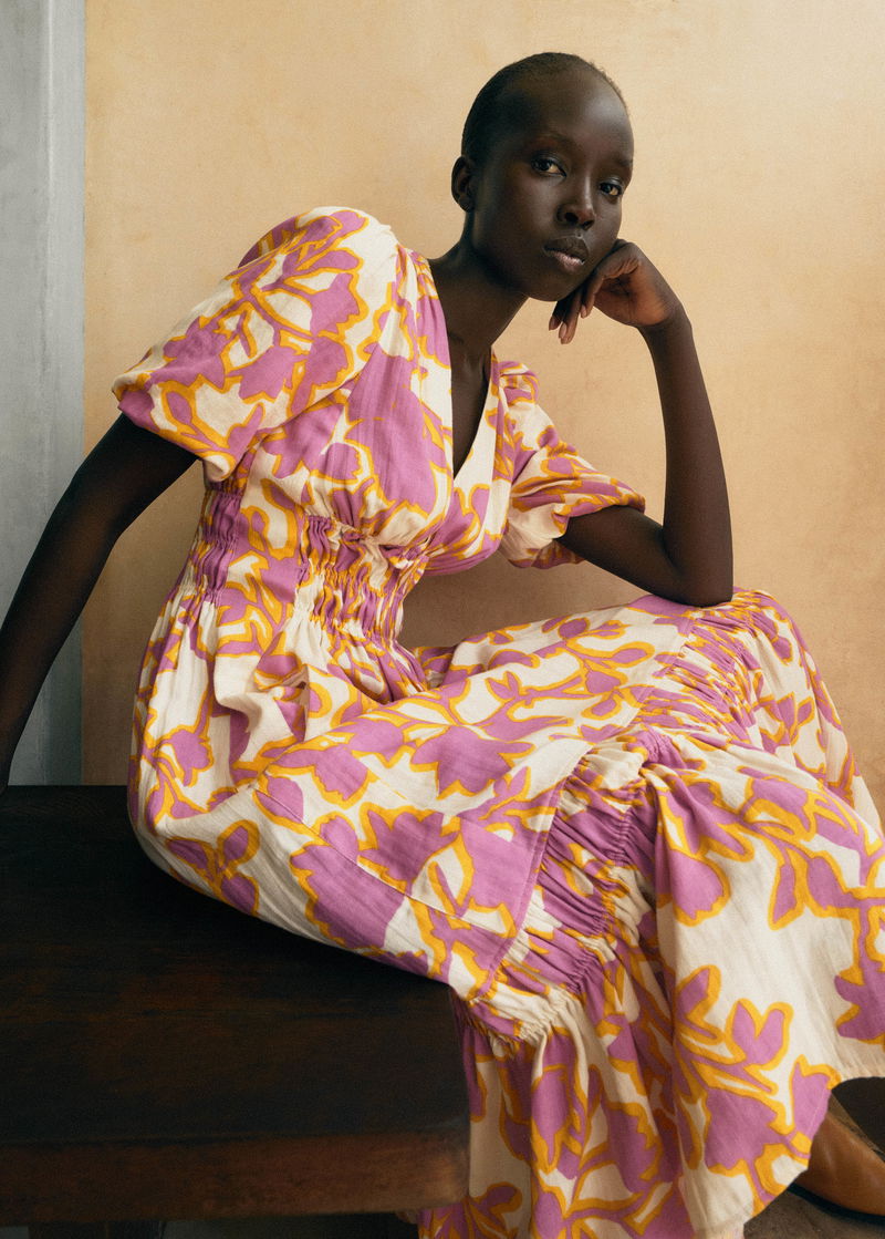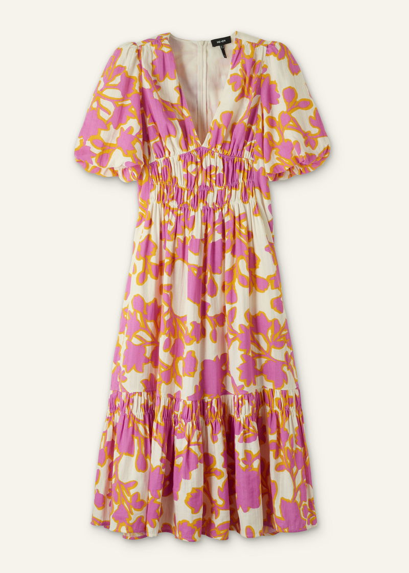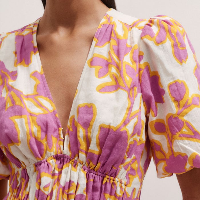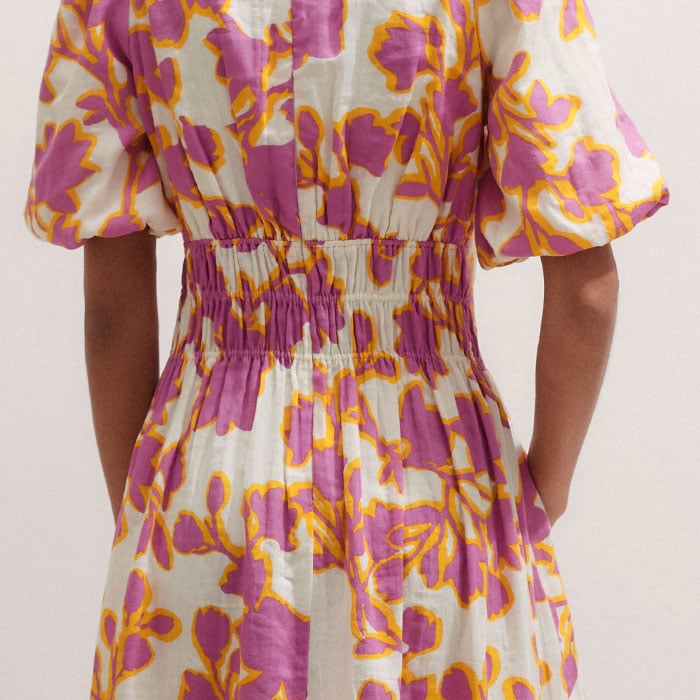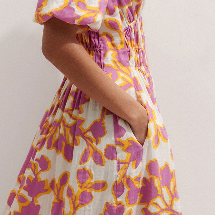 Cheesecloth Shadow Paradise Print Midi Dress White/Electric Lilac/Yellow