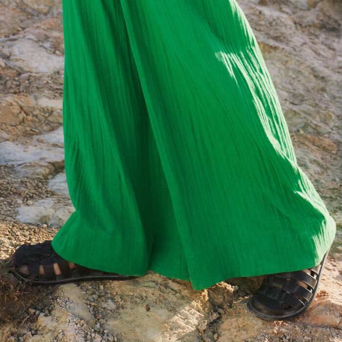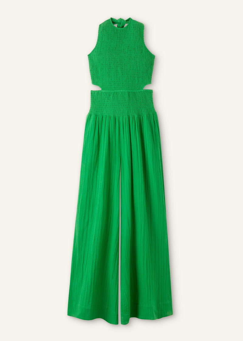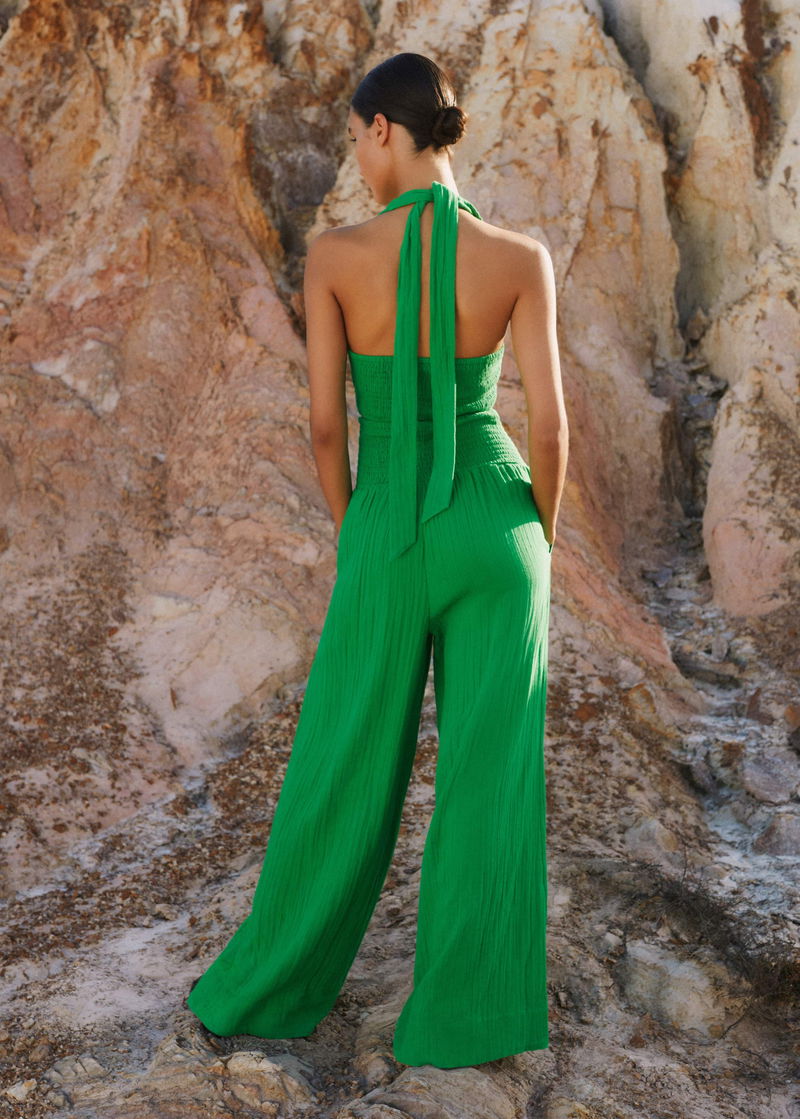 Cheesecloth Shirred Wide-Leg Jumpsuit Spring Green