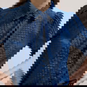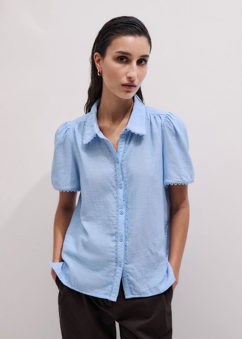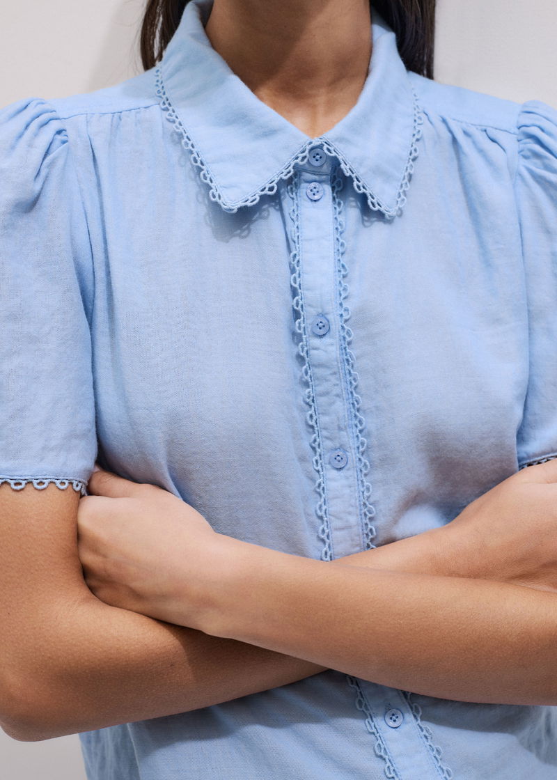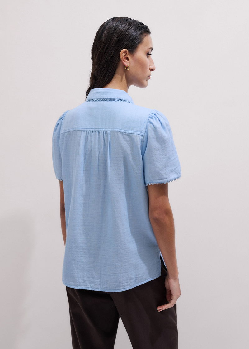 Cheesecloth Trim Detail Blouse Cloud Chambray Blue