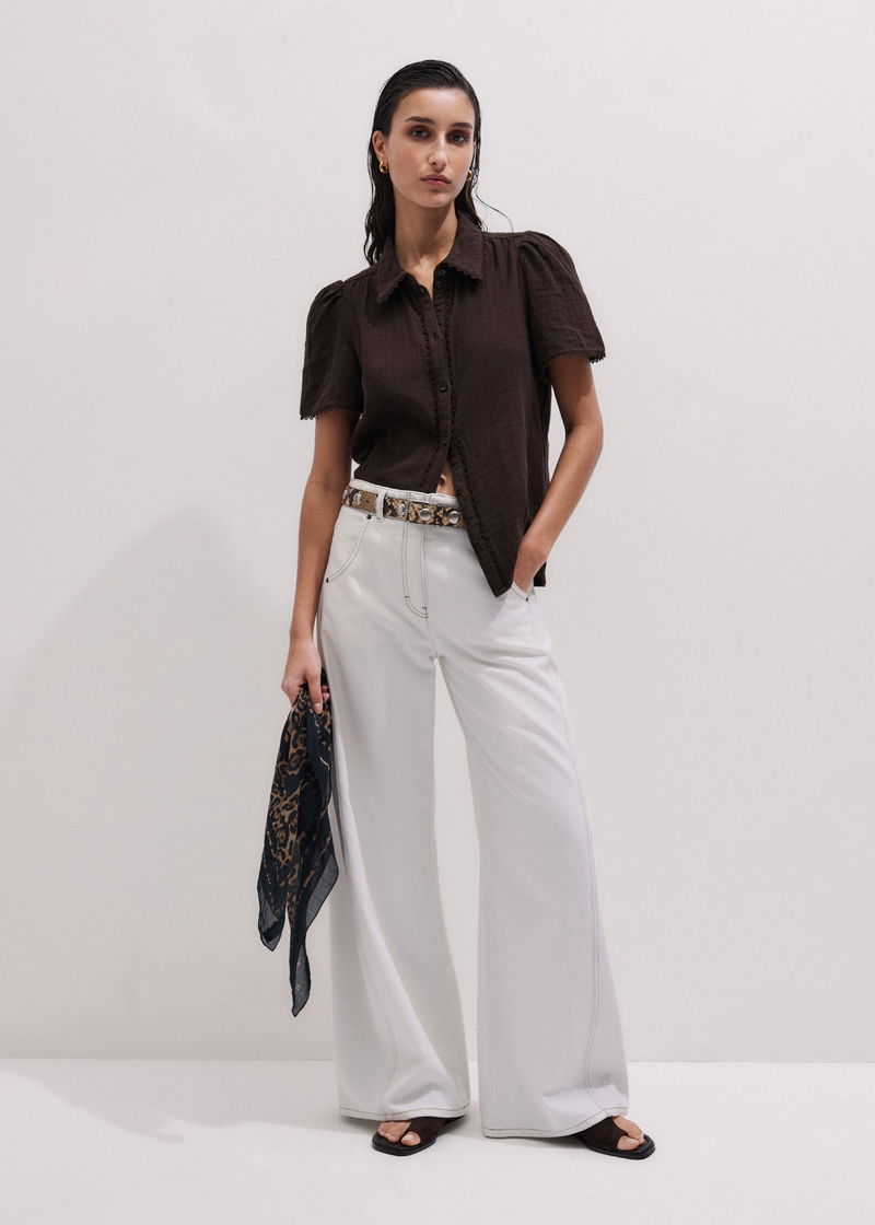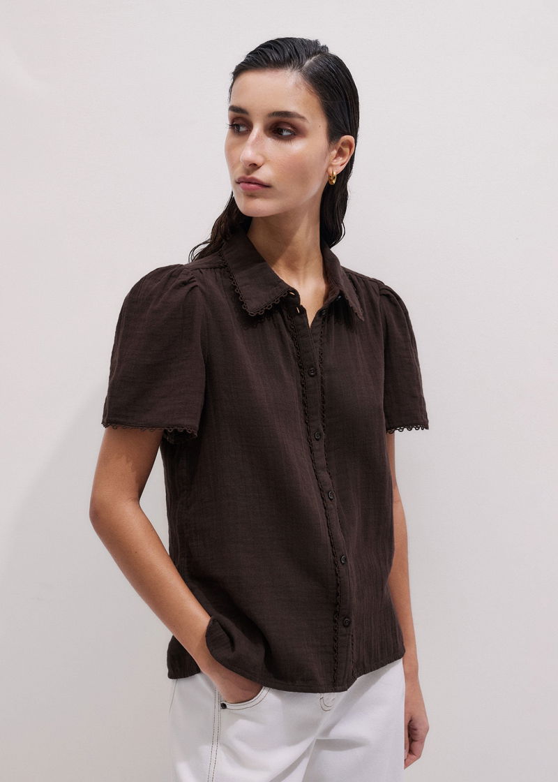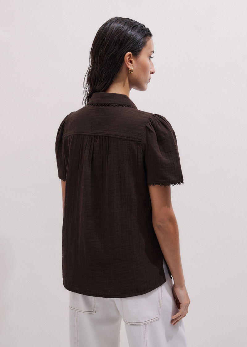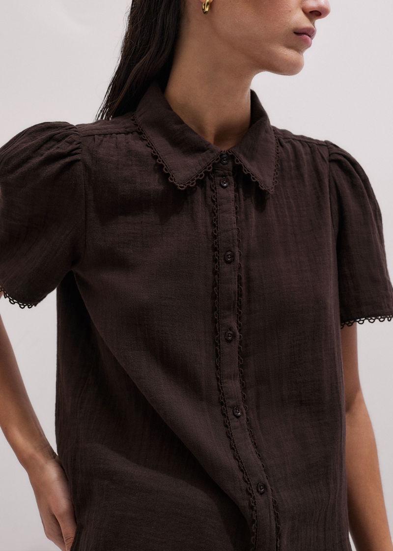 Cheesecloth Trim Detail Blouse Ganache Brown