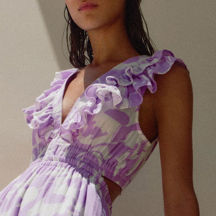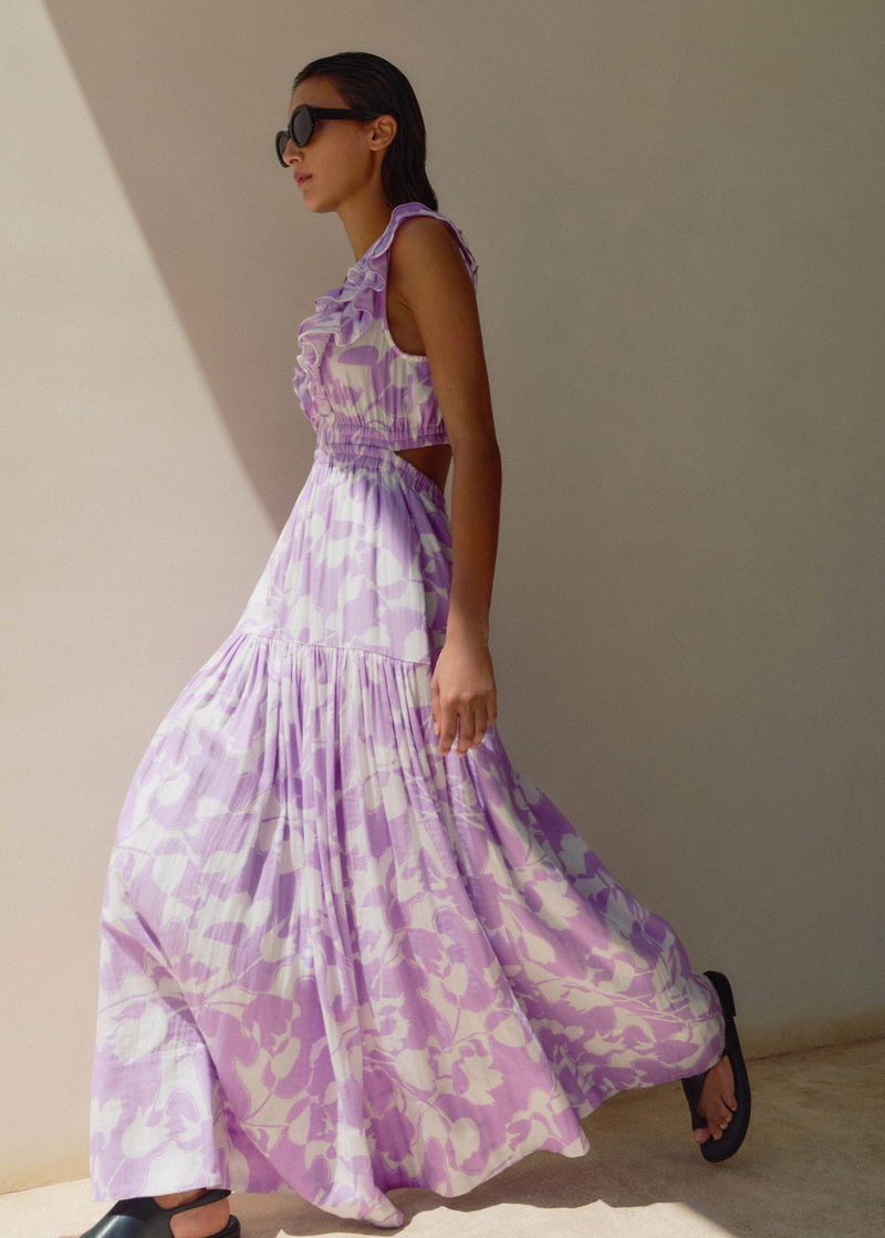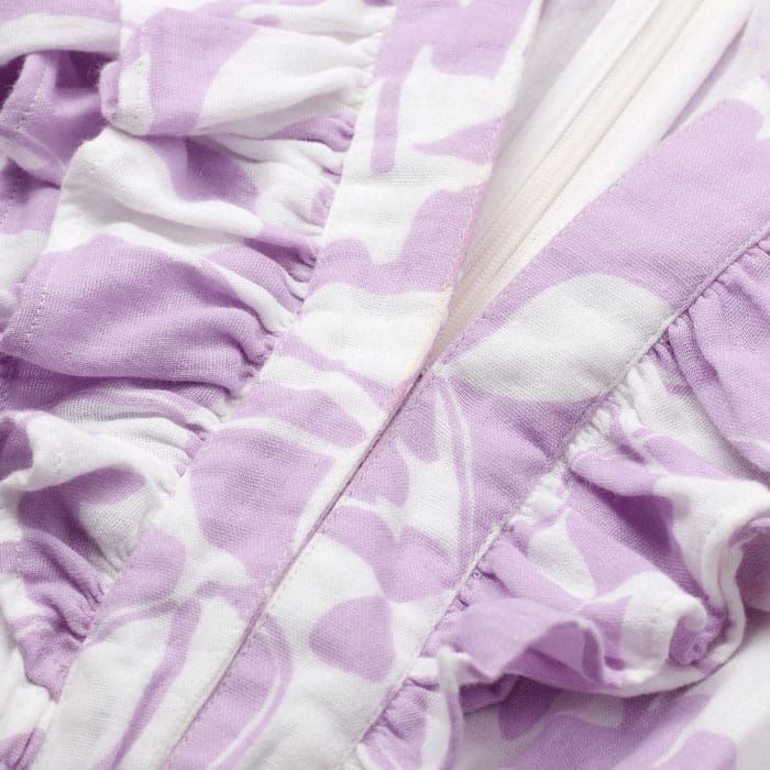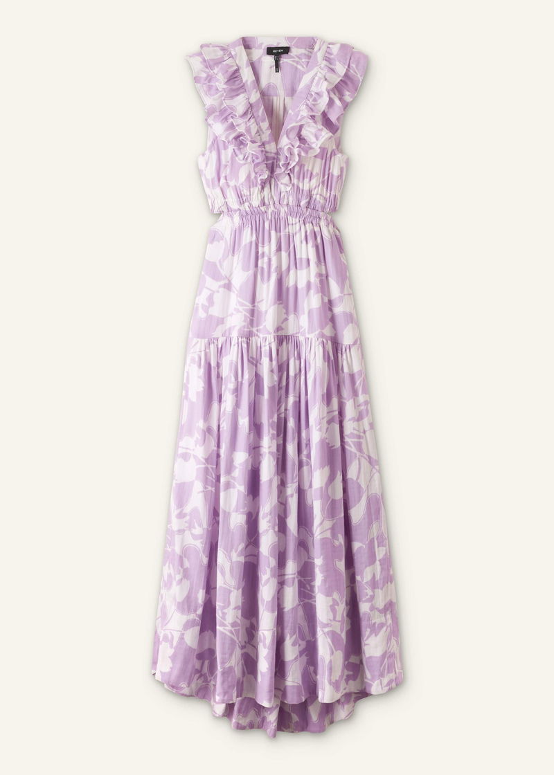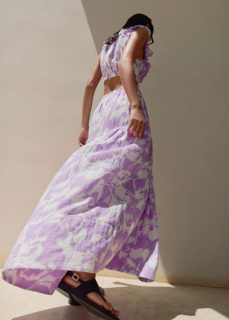 Cheesecloth Tulip Print Full-Length Dress Soft White/Sherbet Lilac