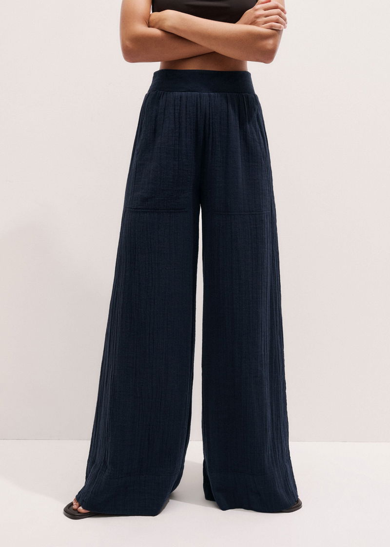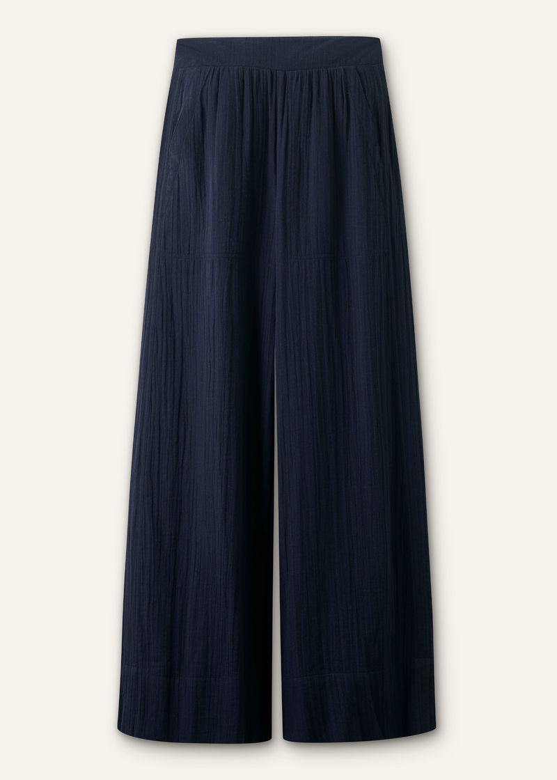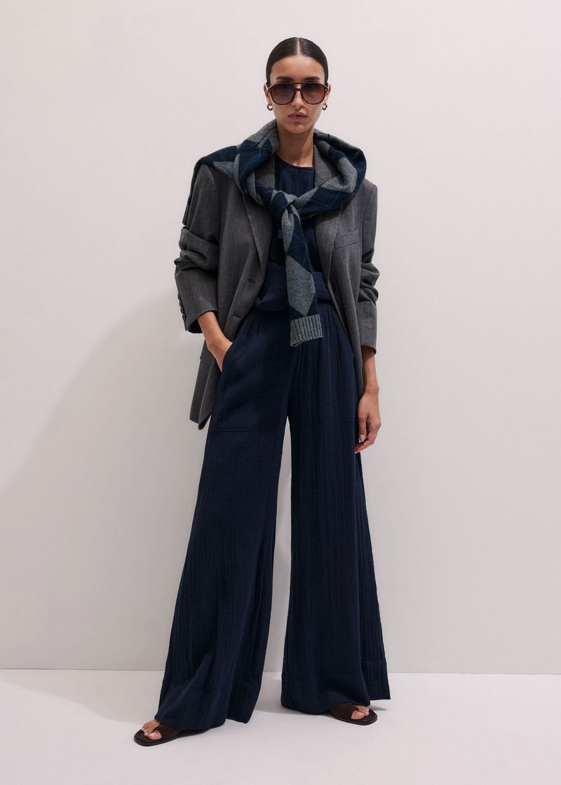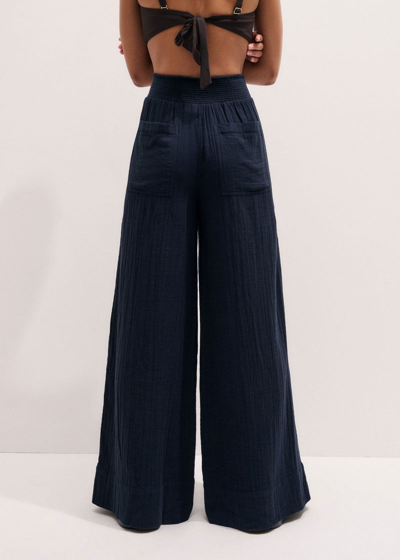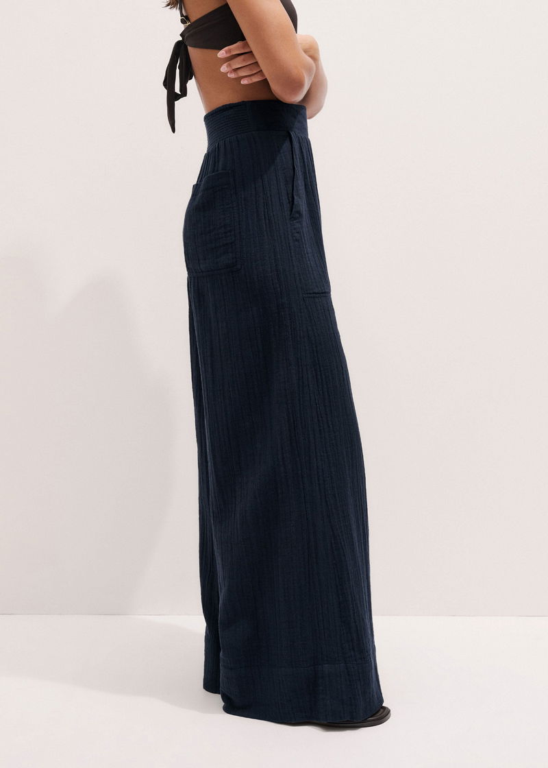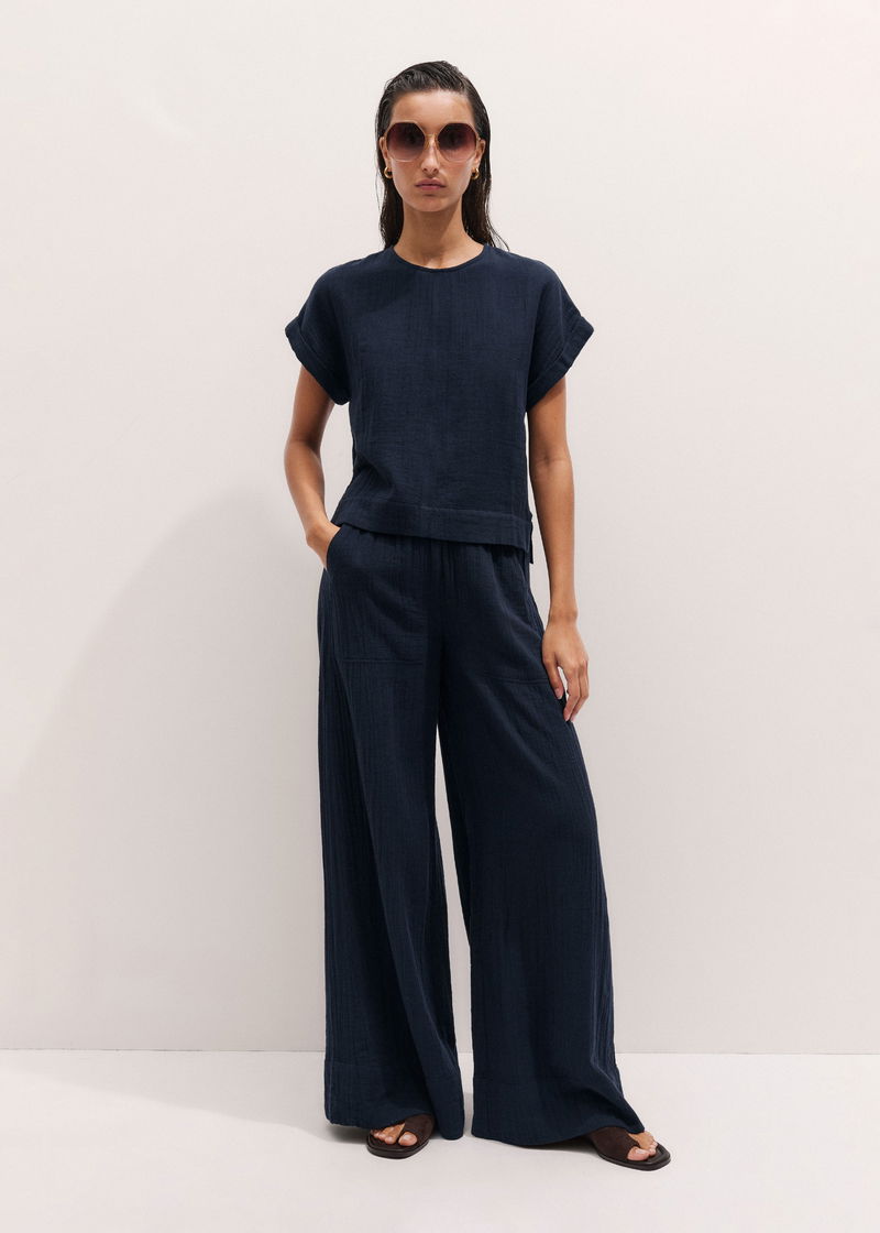 ME+EM's Navy Cheesecloth Wide-Leg Trouser is naturally textured for an iron-free finish.