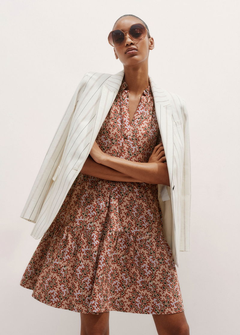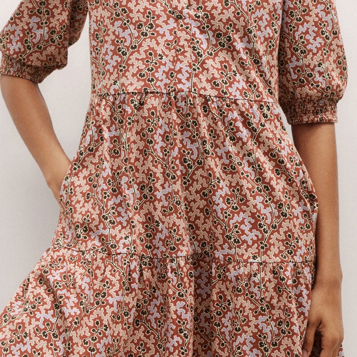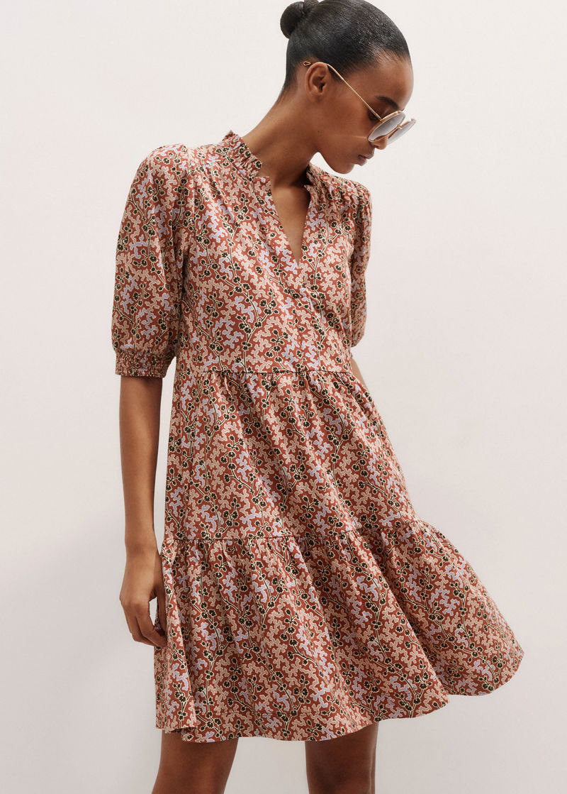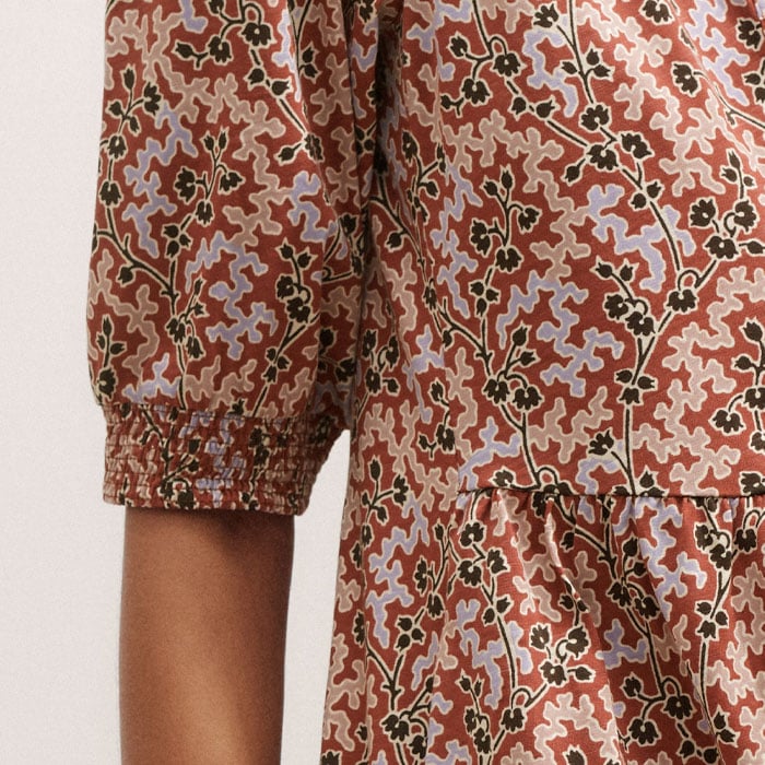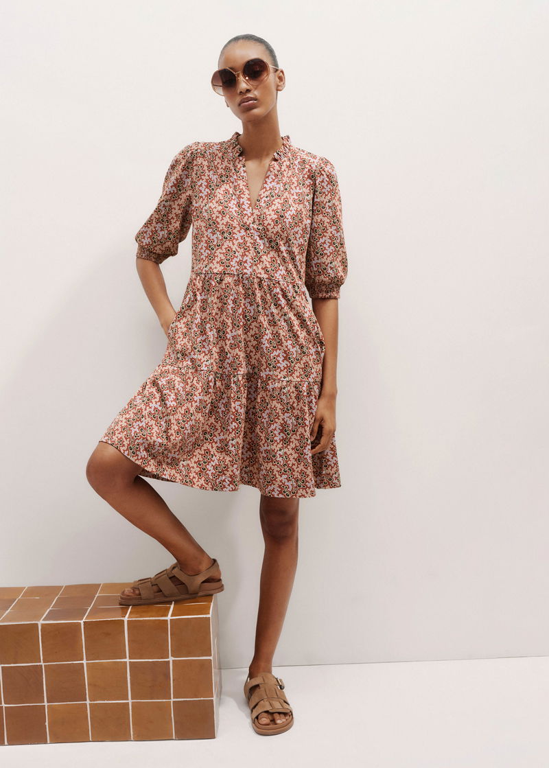 ME+EM's Pink Climbing Buds Print Short Tiered Dress is crafted from soft cotton jersey and cut to a flowing mini length for a lightweight finish.