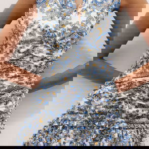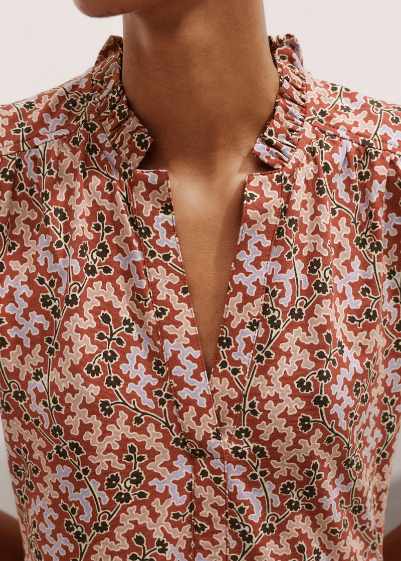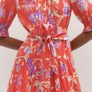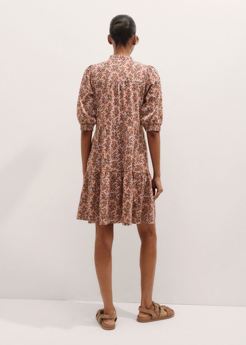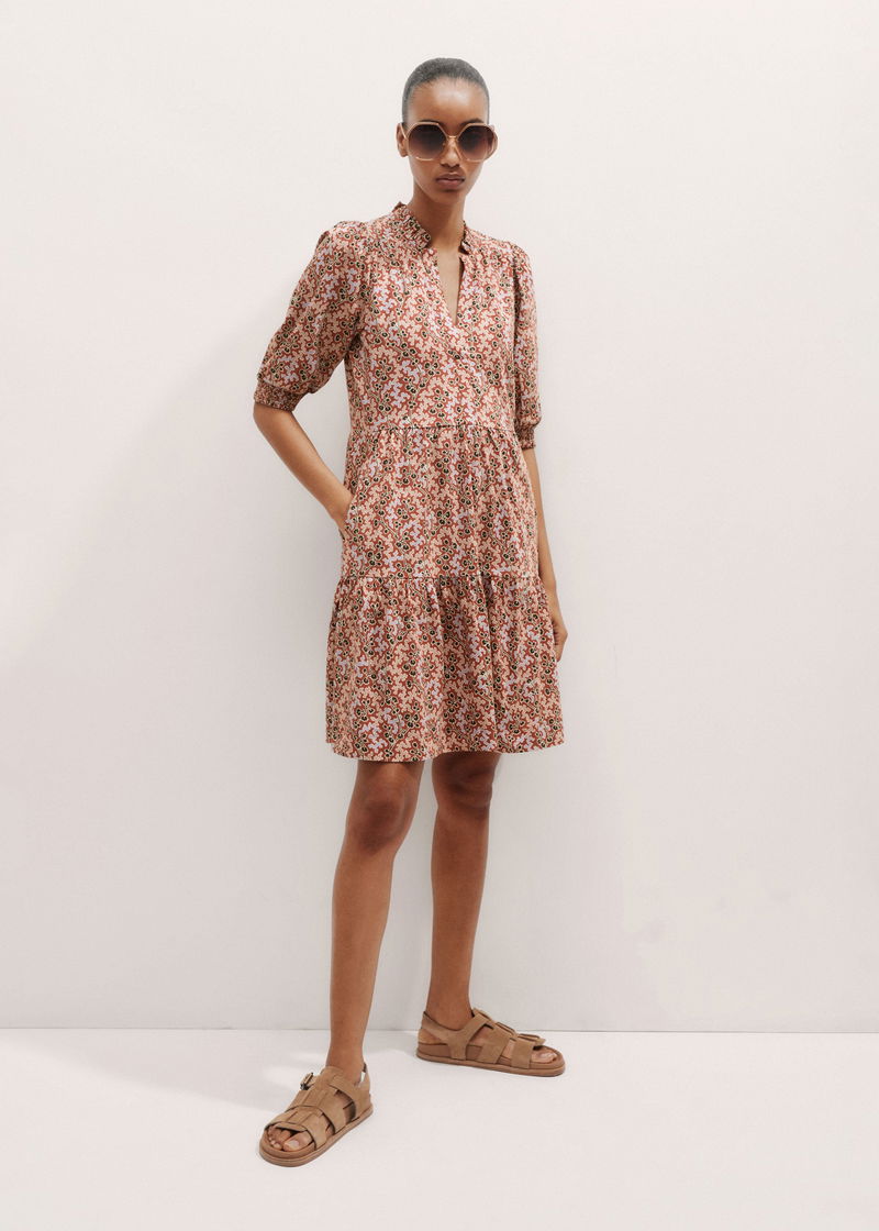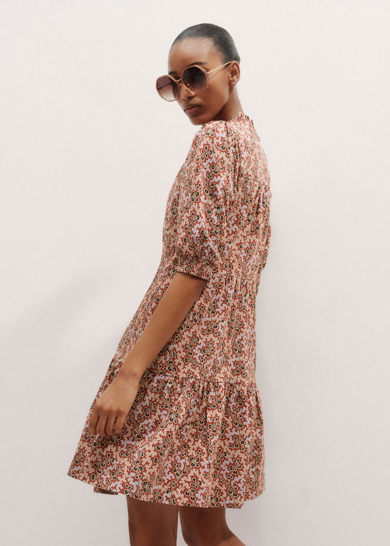 ME+EM's Pink Climbing Buds Print Short Tiered Dress is crafted from soft cotton jersey and cut to a flowing mini length for a lightweight finish.