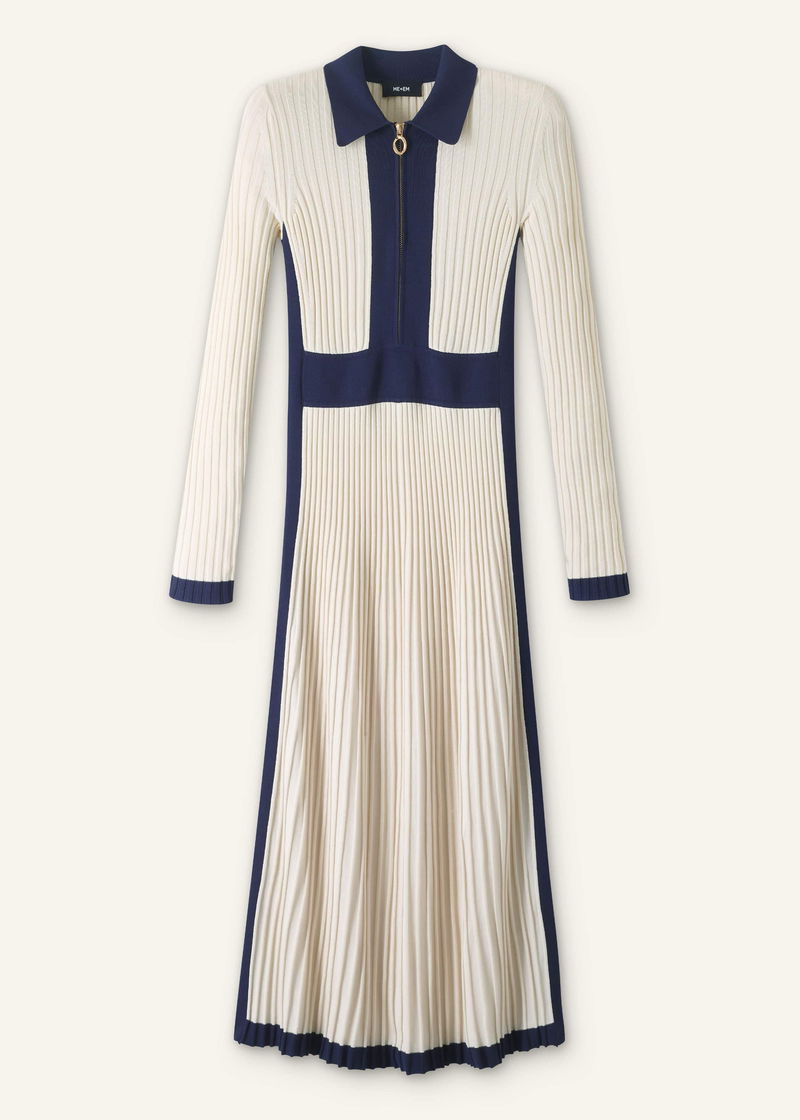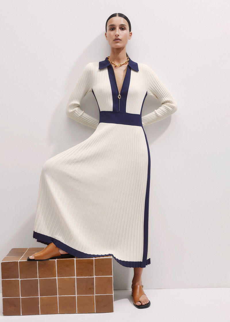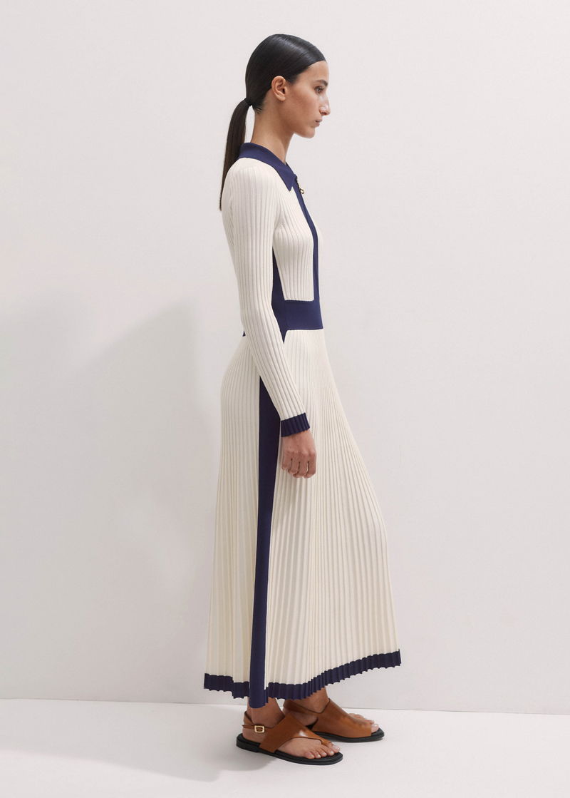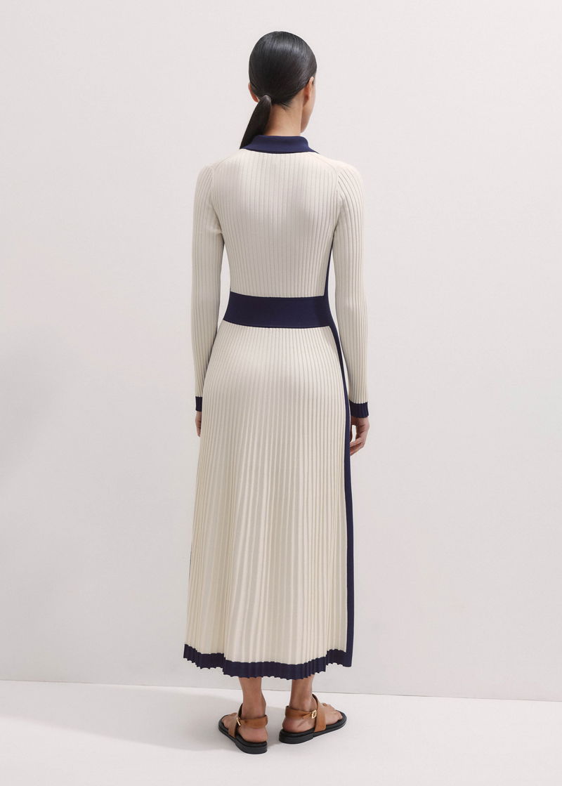 Collared Contrast Panel Maxi Dress Cream/Navy