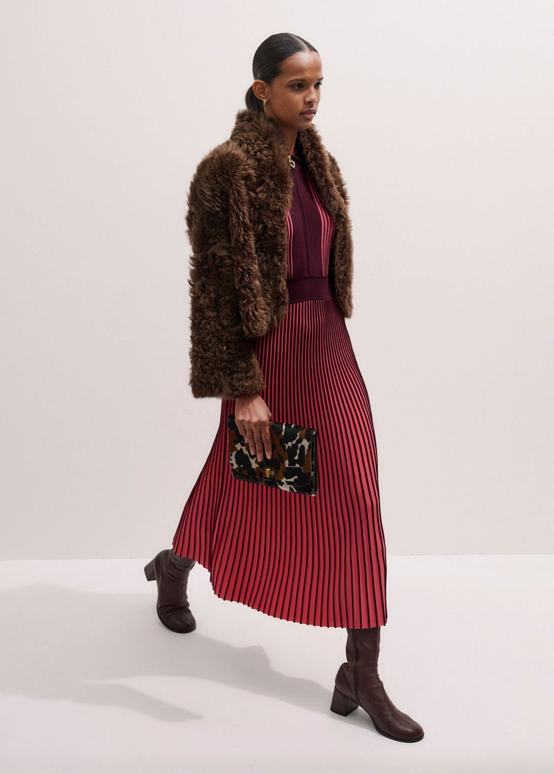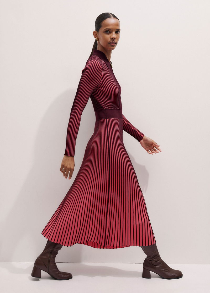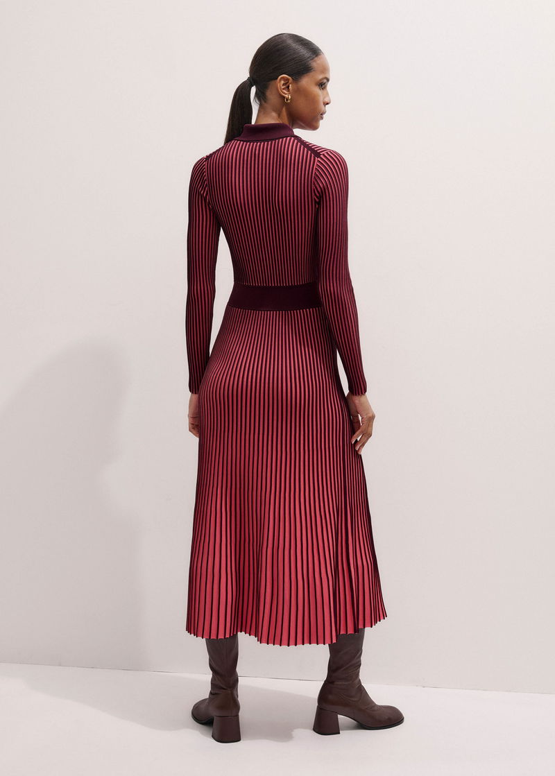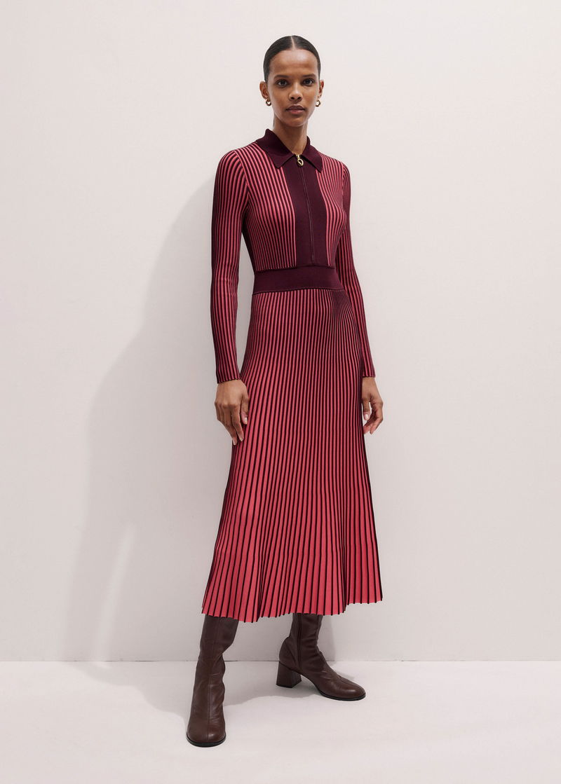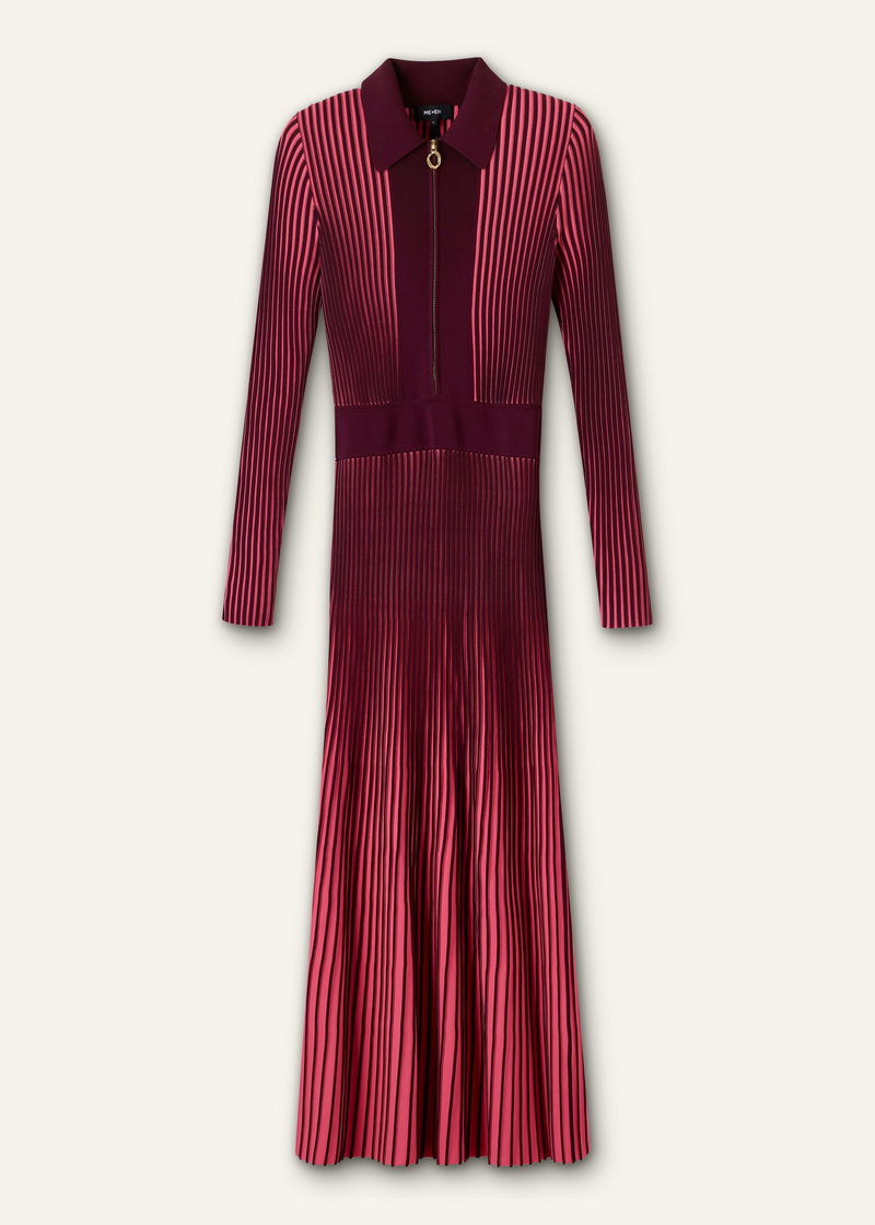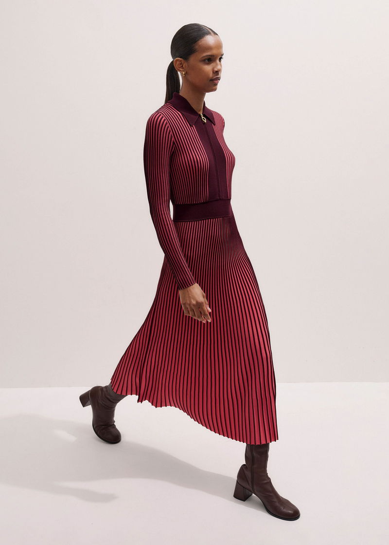 Collared Contrast Panel Maxi Dress Rhubarb Pink/Bordeaux