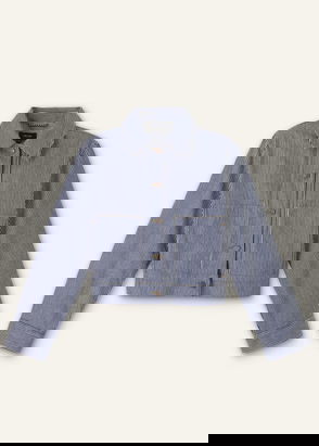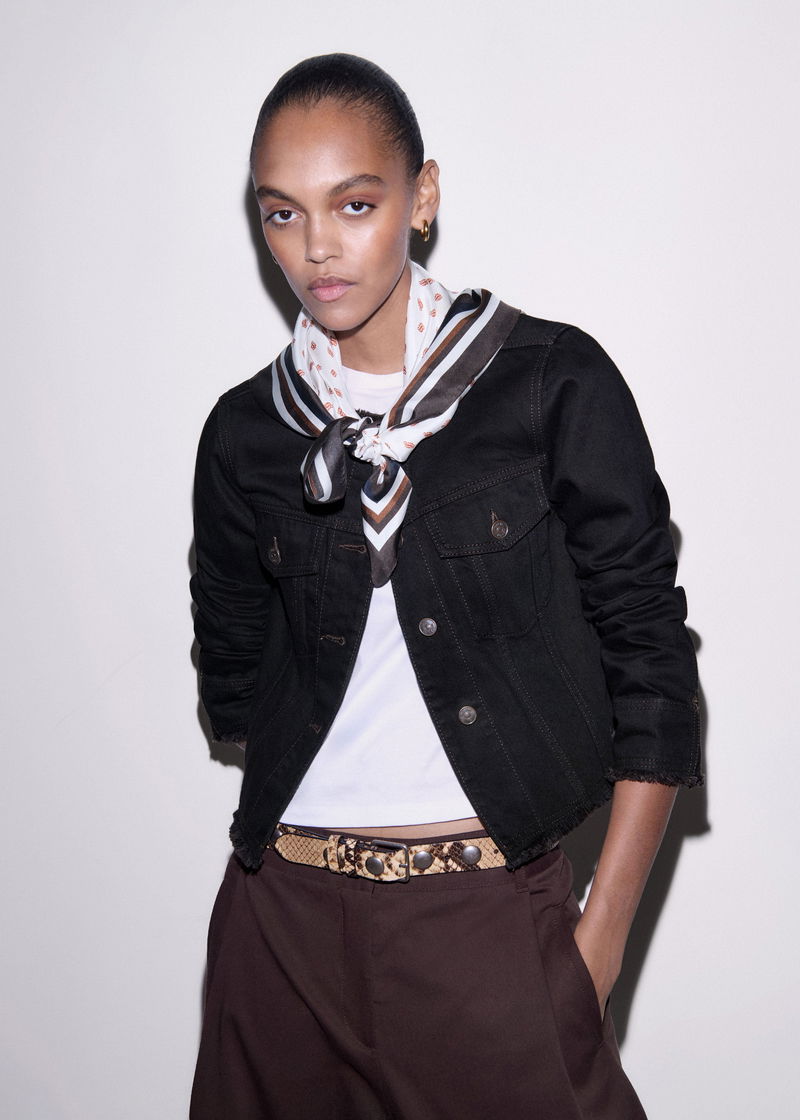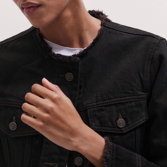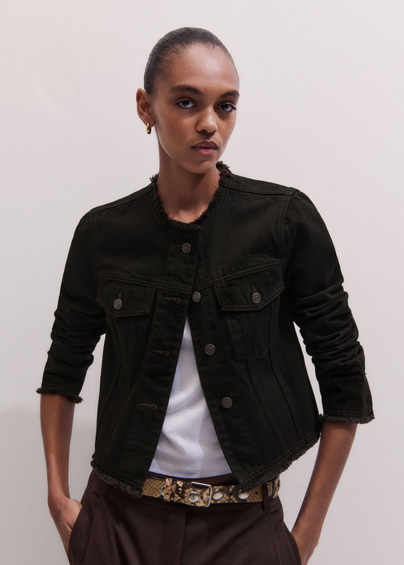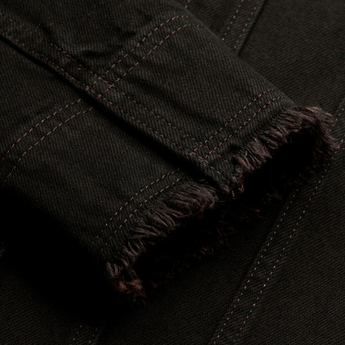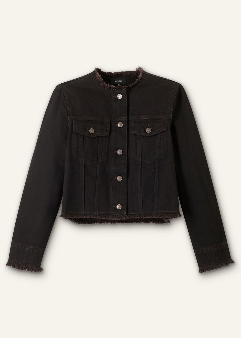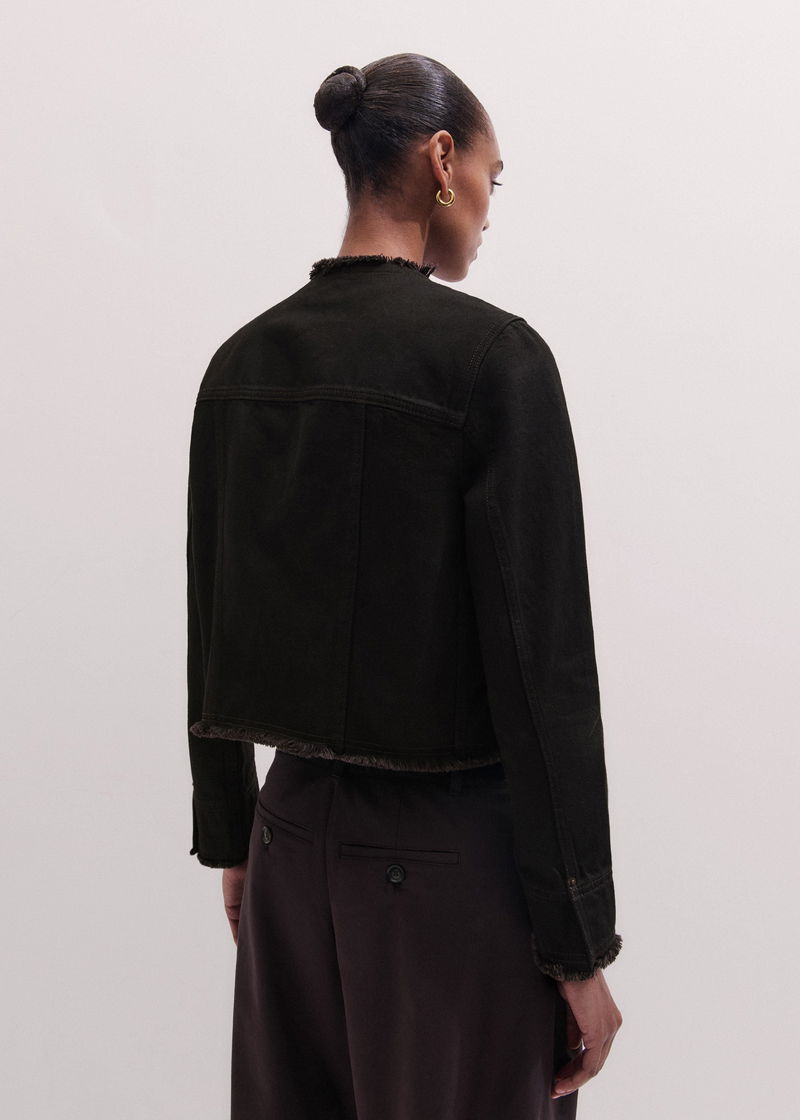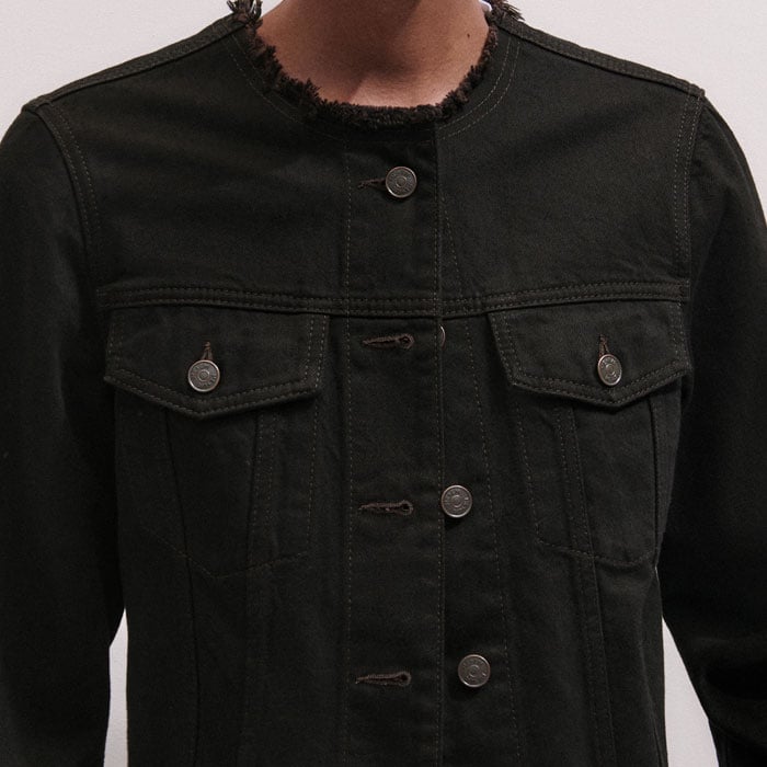 Collarless Denim Jacket Brown Black Wash