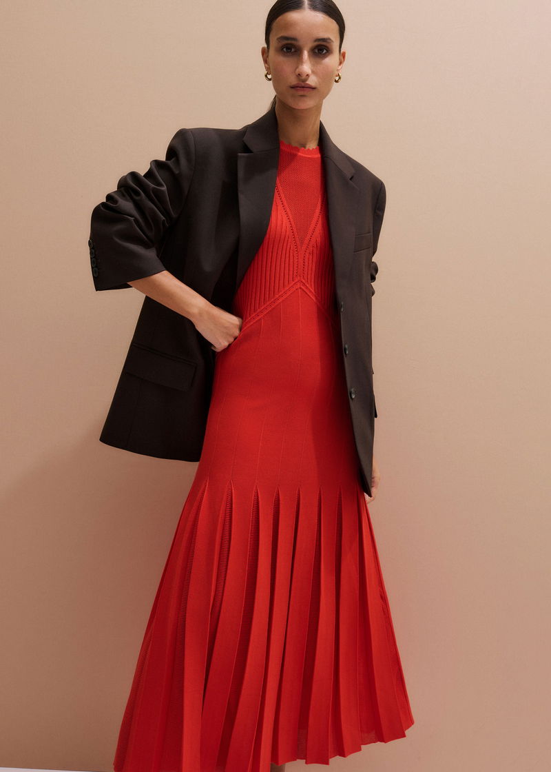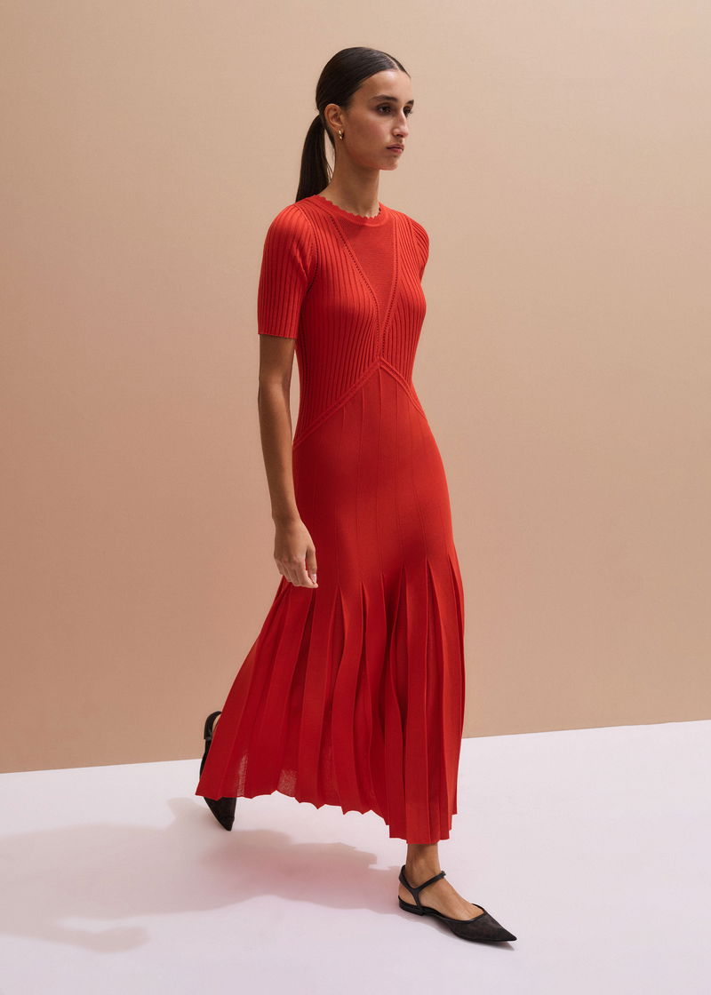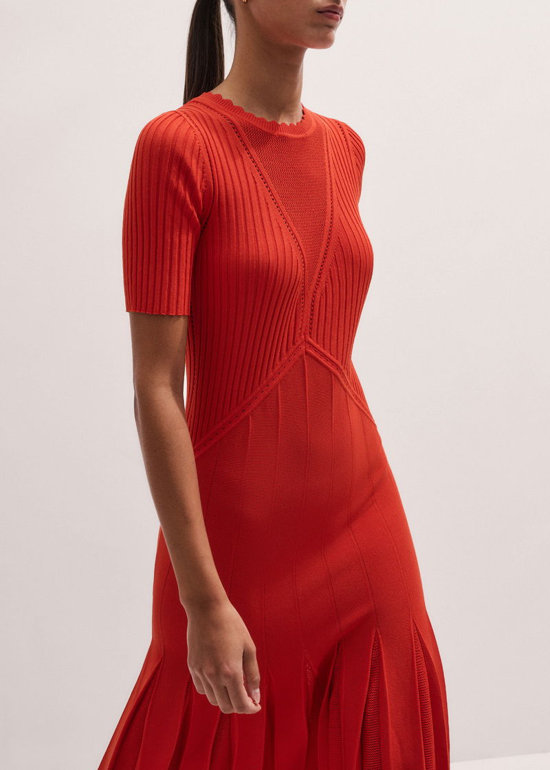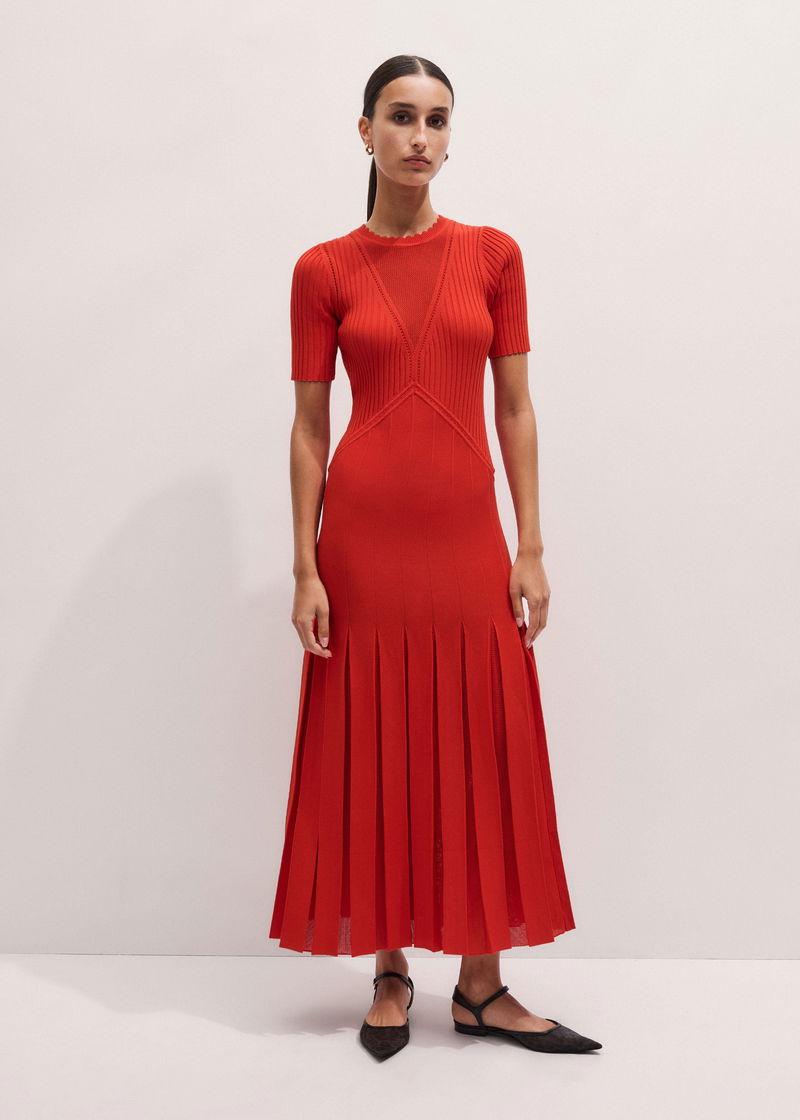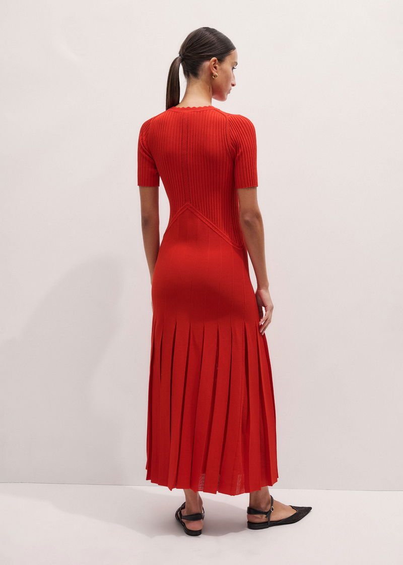Conceal + Reveal Lace Knit Maxi Dress Poppy Red