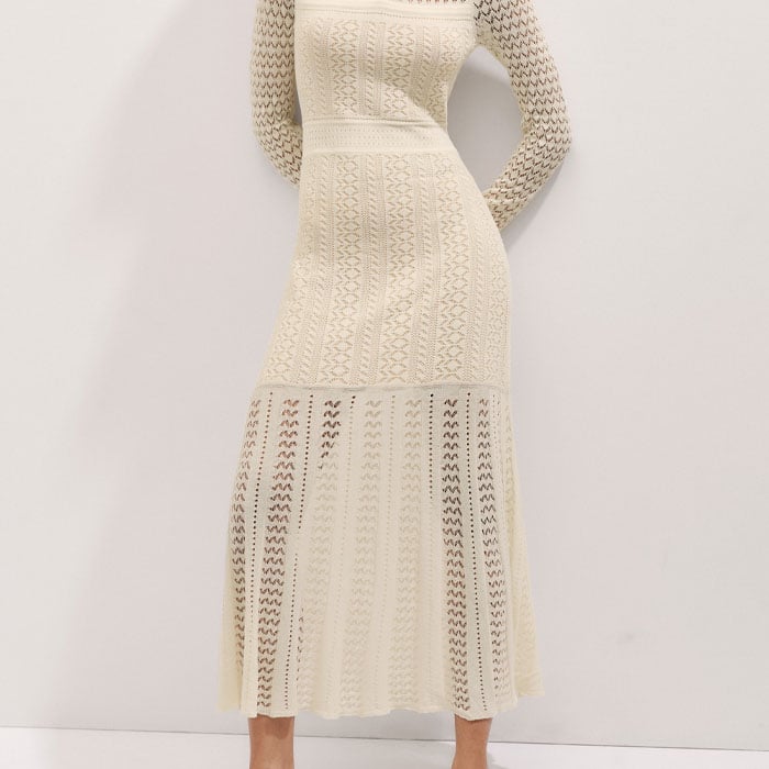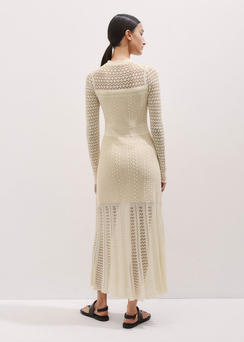 Conceal + Reveal Long Sleeve Knit Maxi Dress Cream