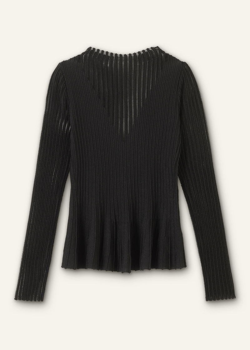 Conceal + Reveal Metallic Knit Peplum Top Black