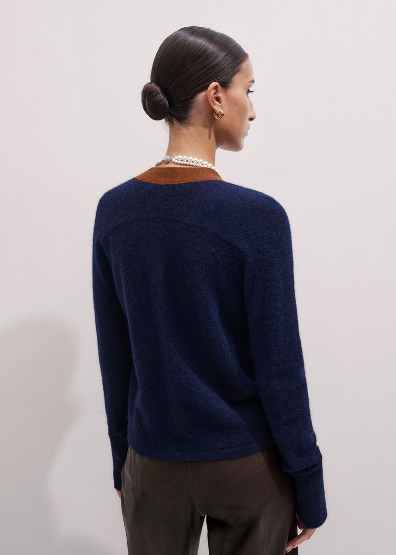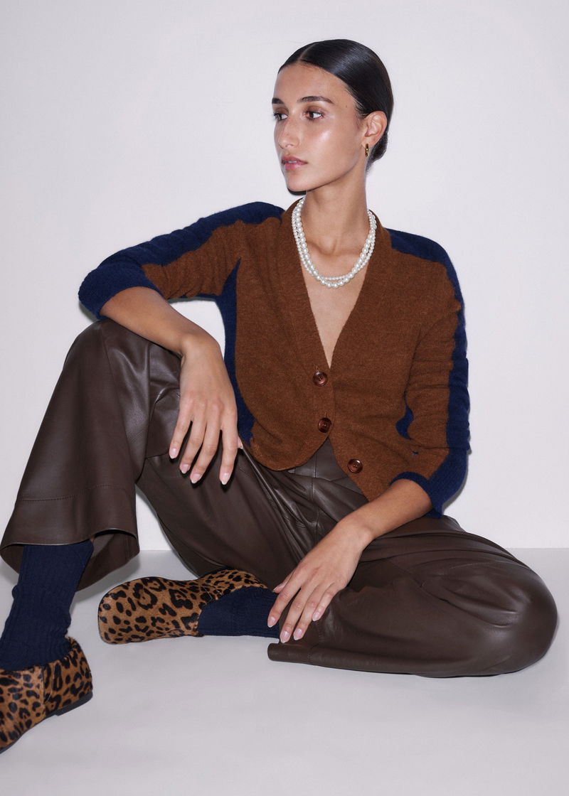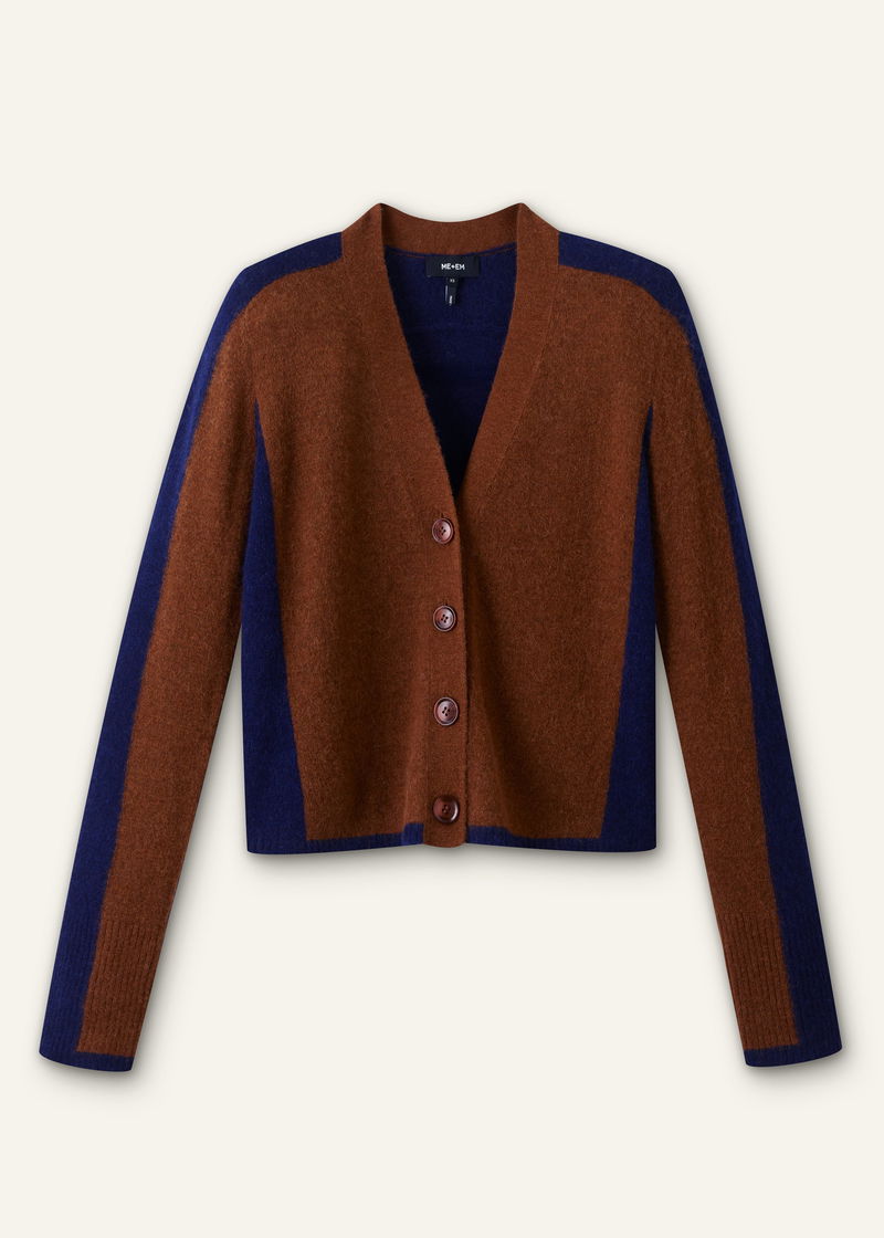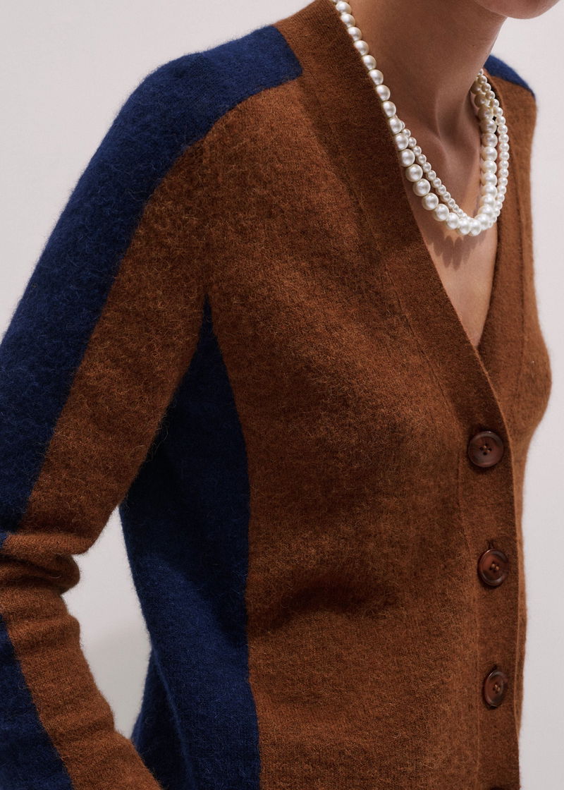 Contrast Panel Relaxed Cardigan Burnt Caramel/Indigo Blue