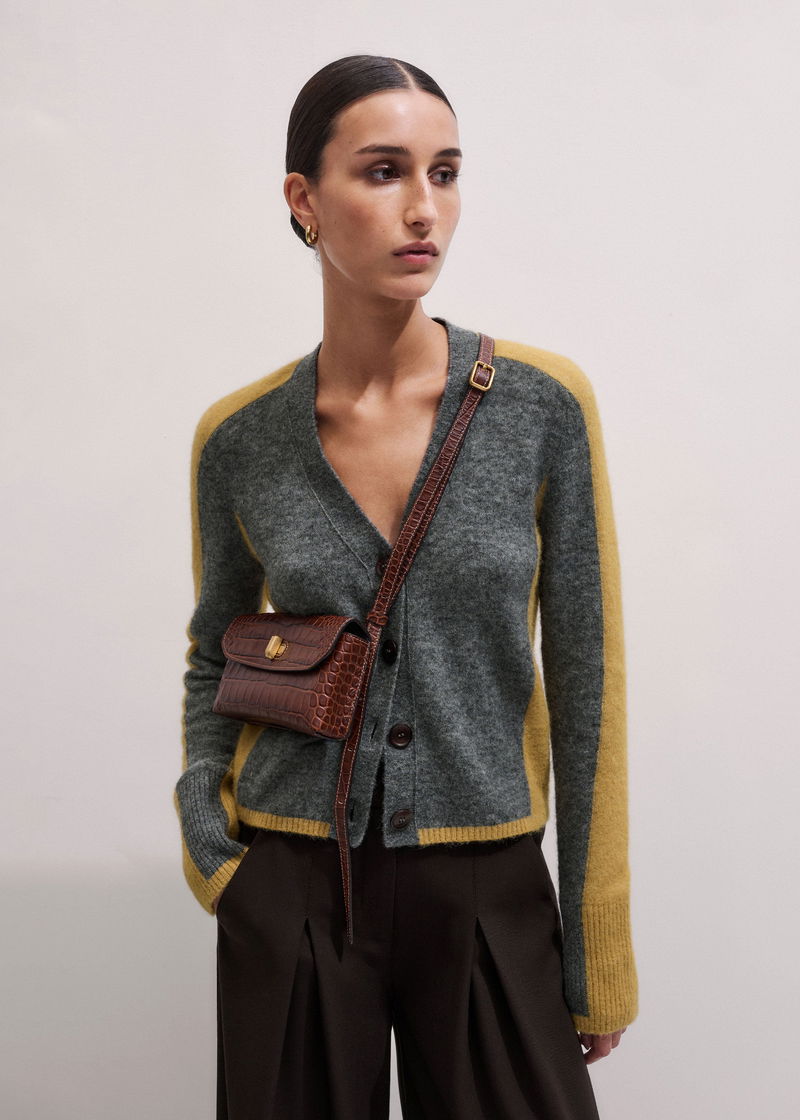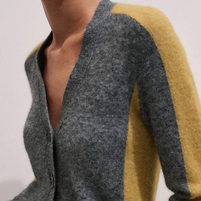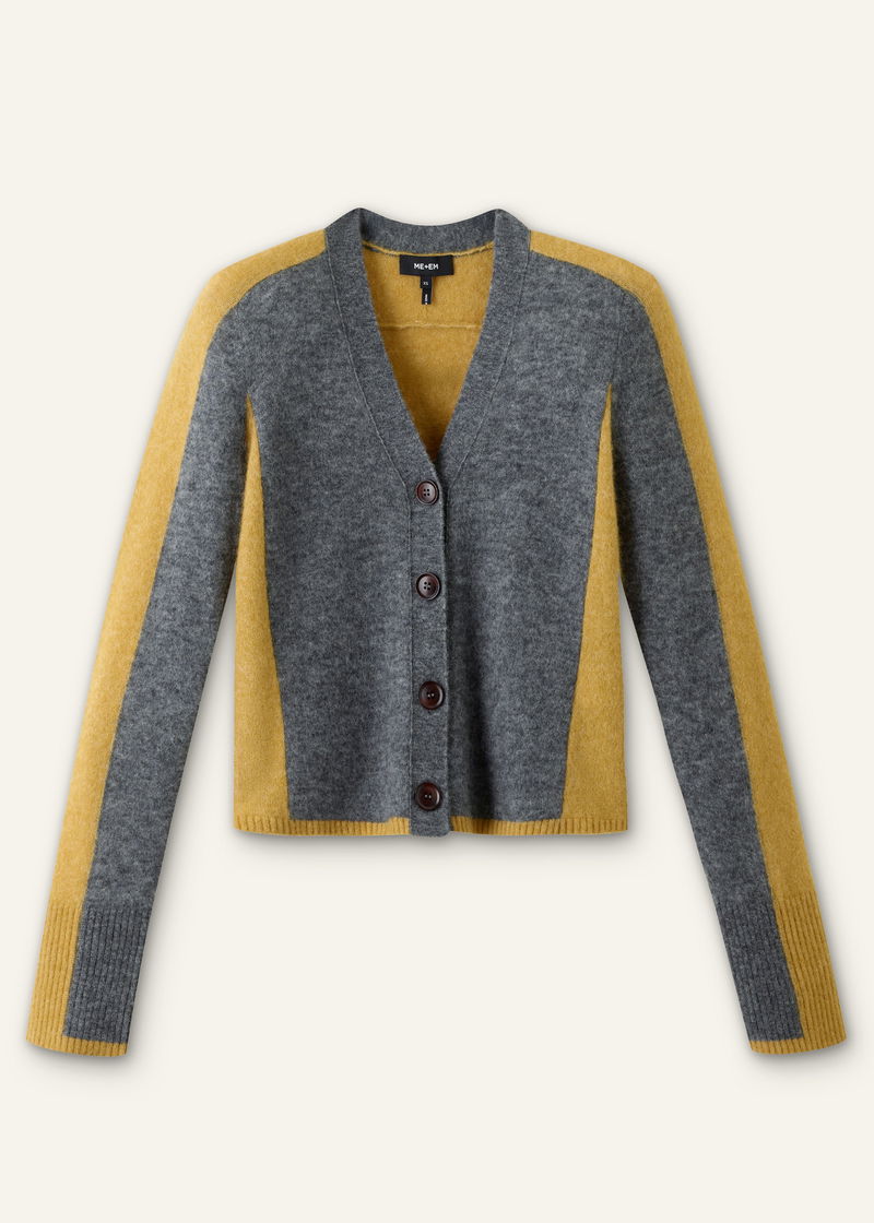 Contrast Panel Relaxed Cardigan Mid Grey Mélange/Dijon Yellow