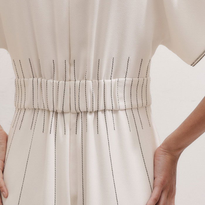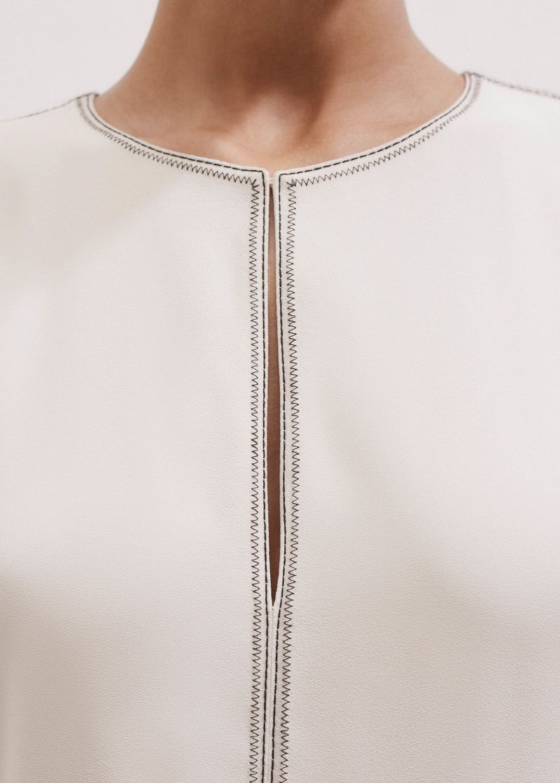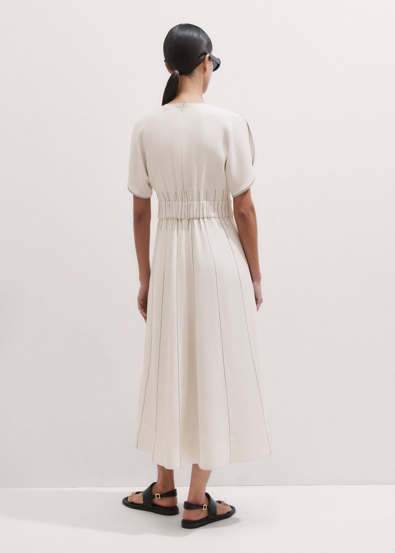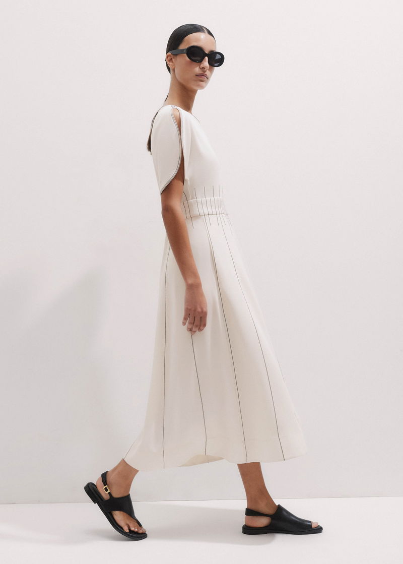 Contrast Stitch Midi Dress Cream/Black