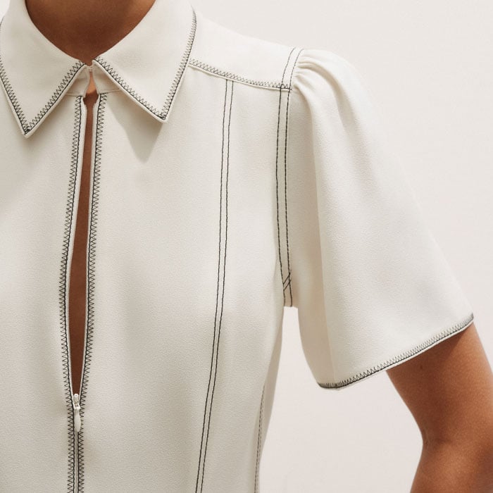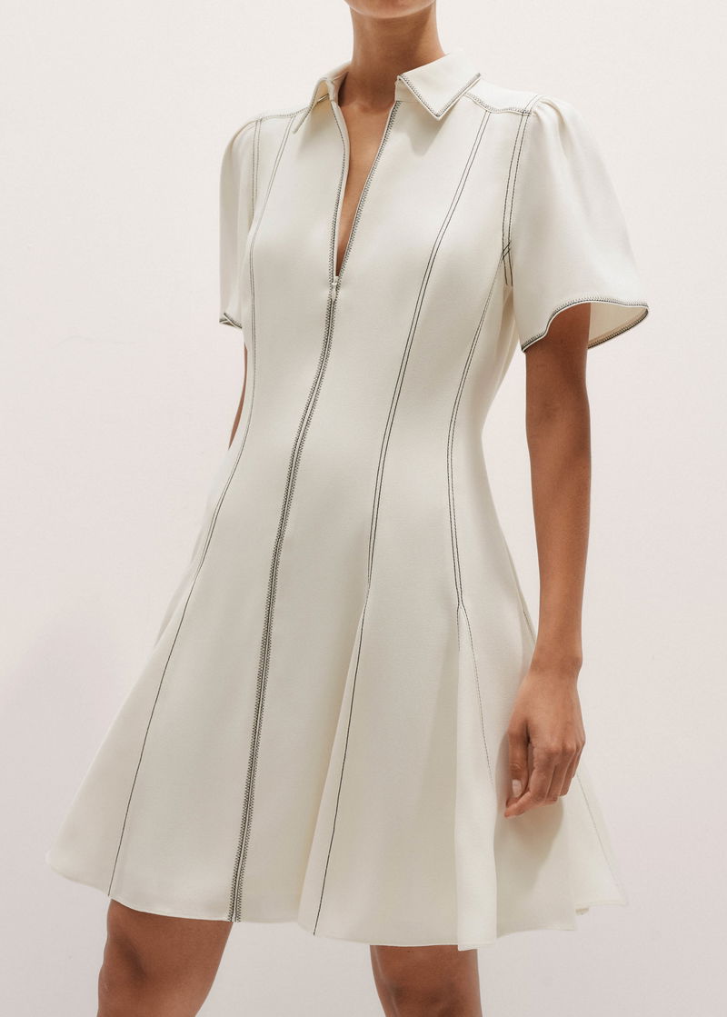 Contrast Stitch Mini Dress Light Cream