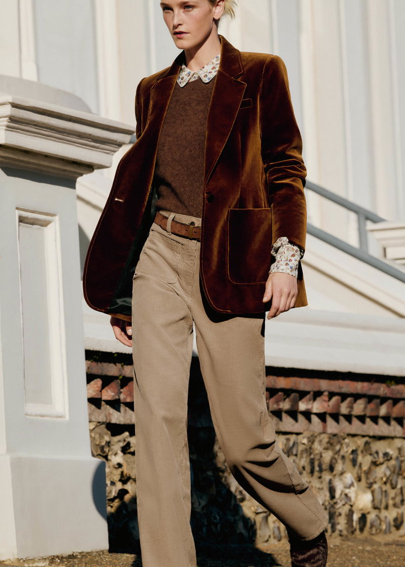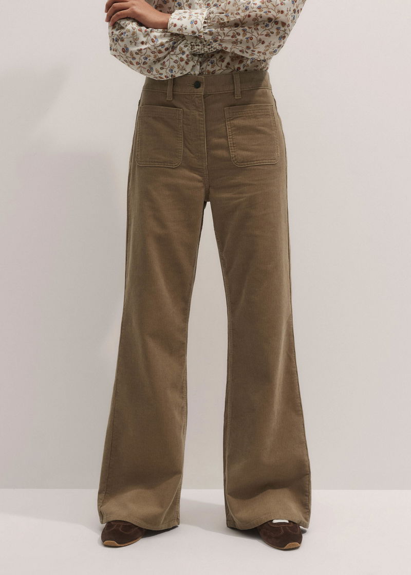 ME+EM's Brown Cord Leg-Elongating Trouser is made from velvety cotton corduroy in a kick flare silhouette.