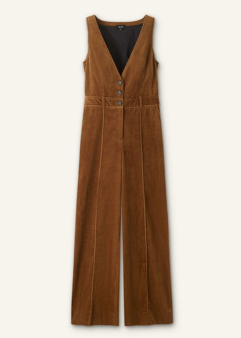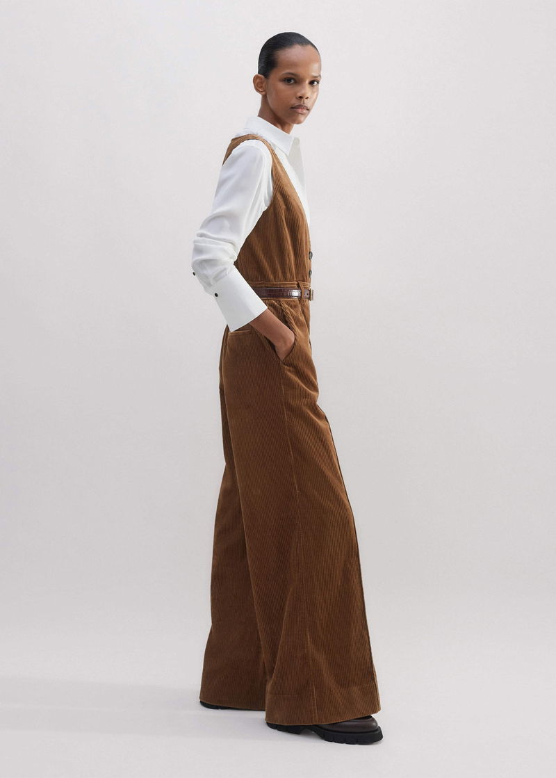Cord Wide-Leg Layering Jumpsuit Caramel