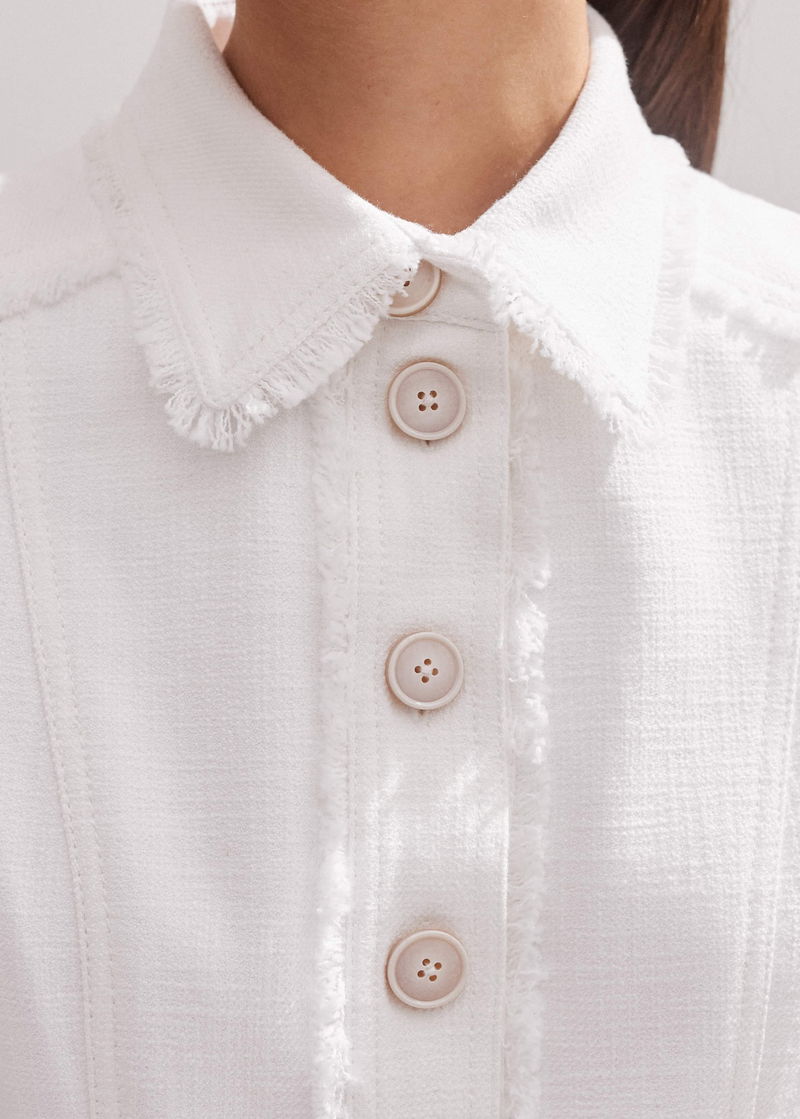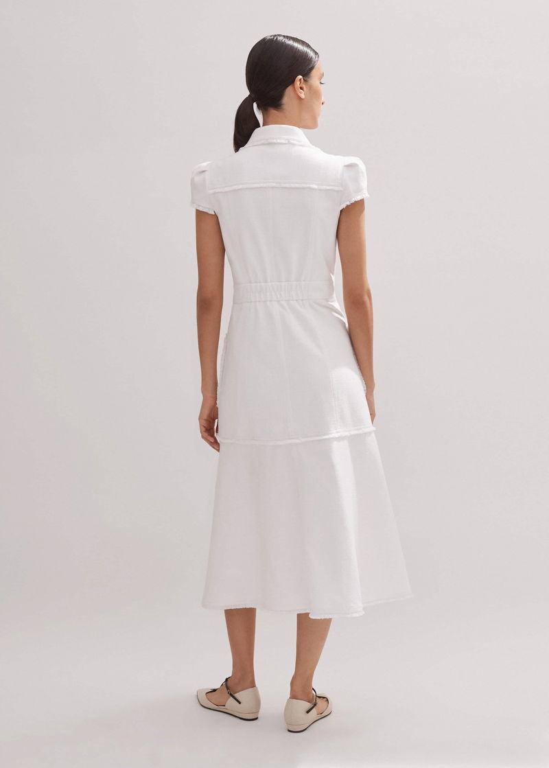 Cotton-Blend Fringed Midi Dress Cream