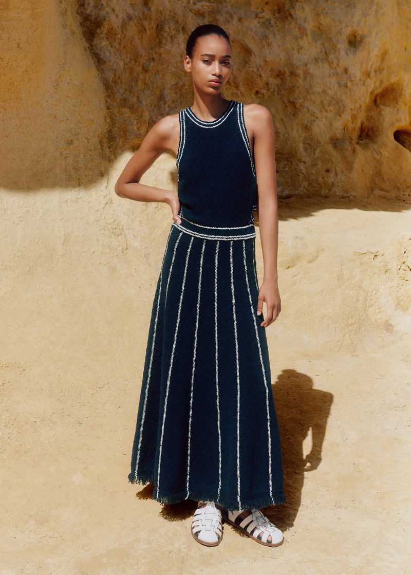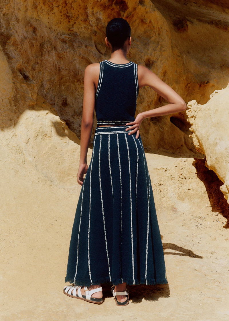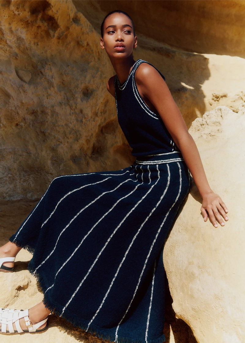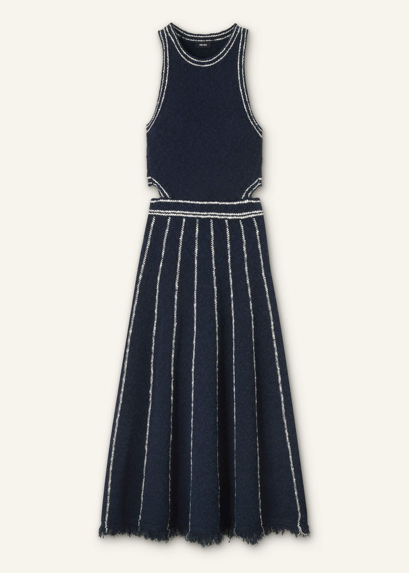 Cotton Boucle Cut Out Maxi Dress Navy/Cream