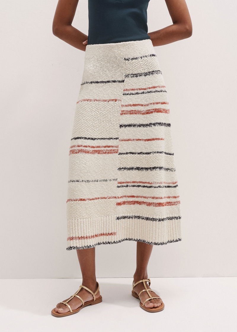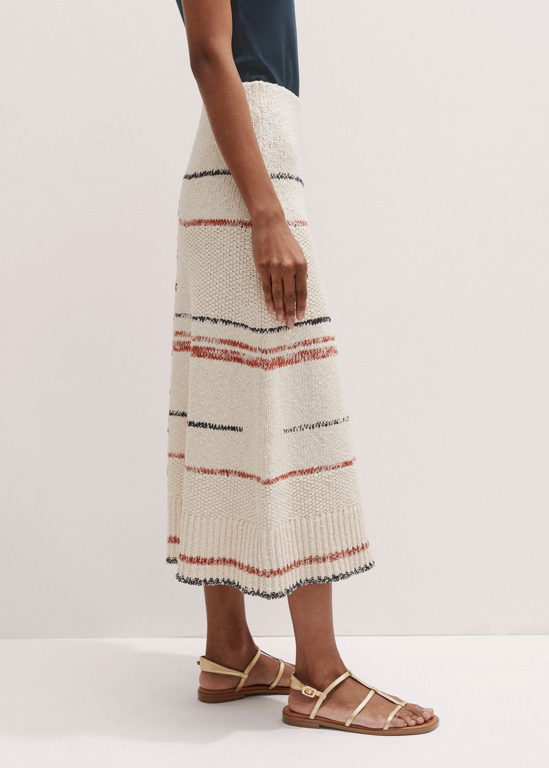 Cotton Bouclé Stripe Knit Maxi Skirt Cream Multi