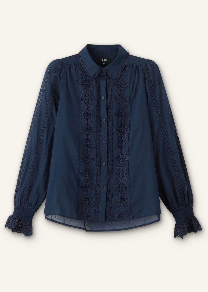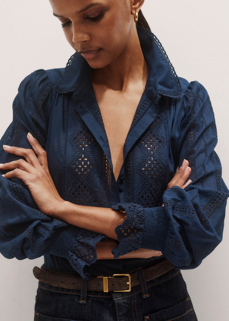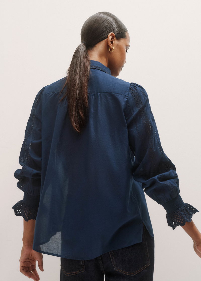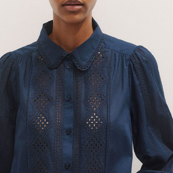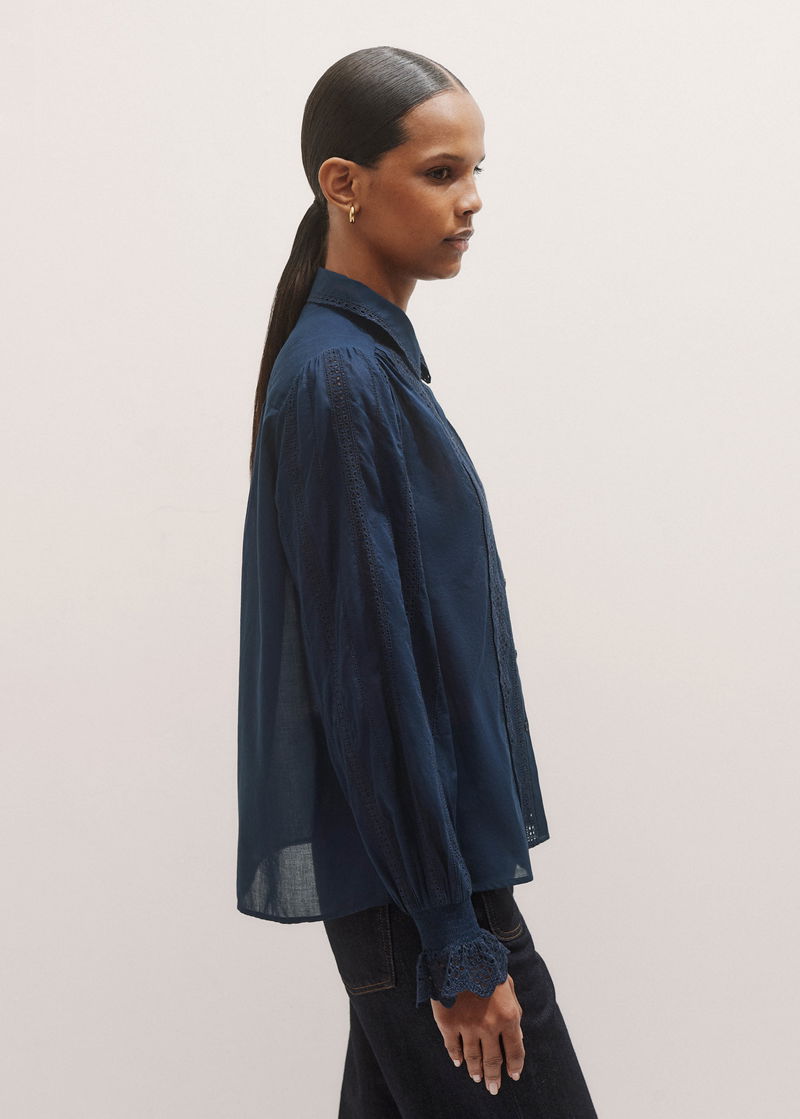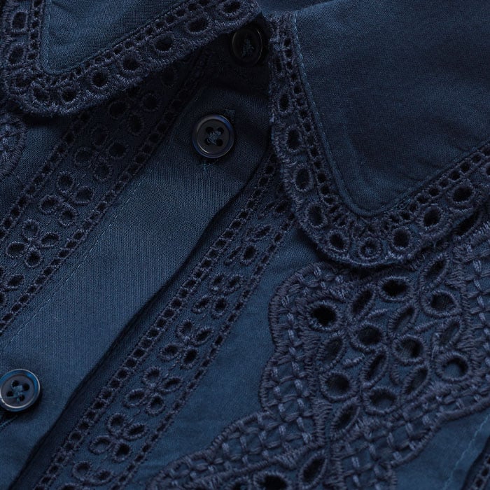 Cotton Broderie Detail Straight Shirt Bright Navy