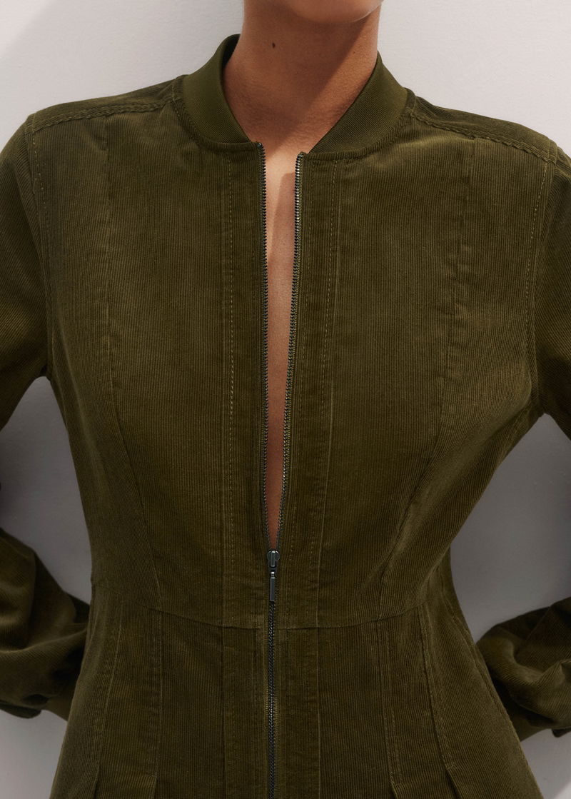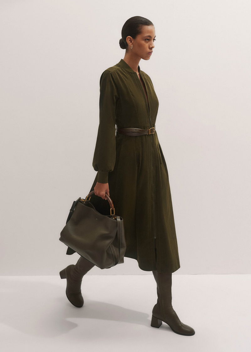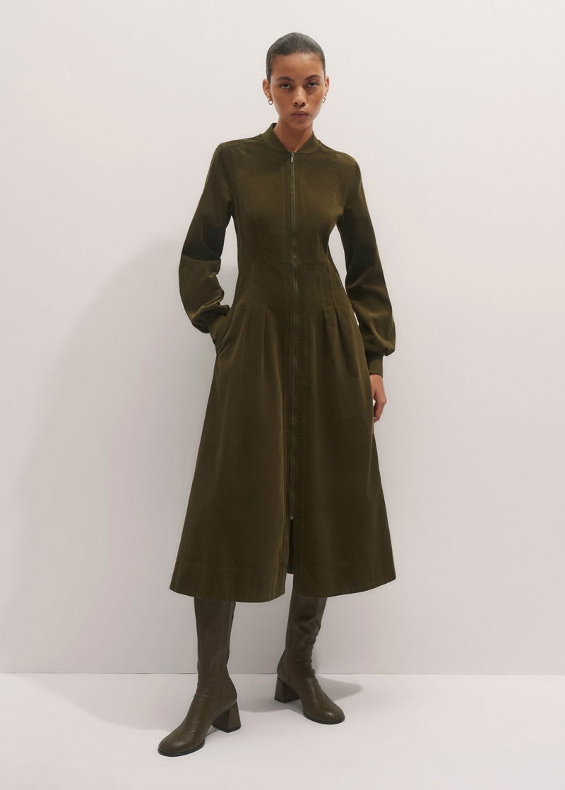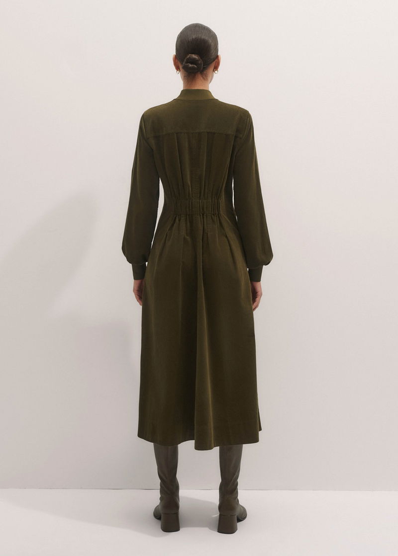 Cotton Cord Pleated Midi Dress Bronzed Green
