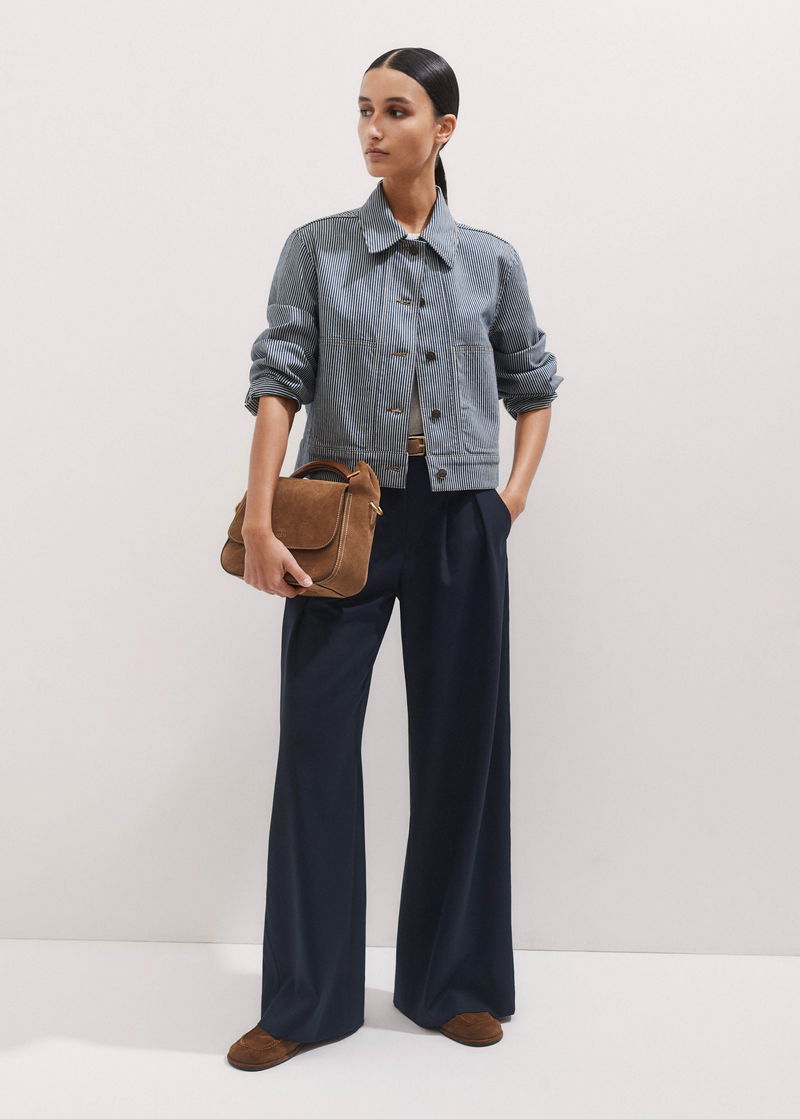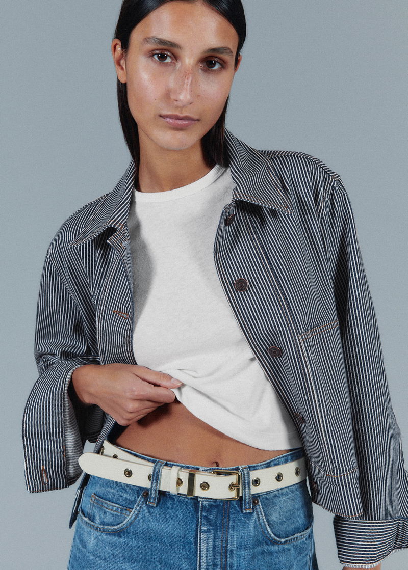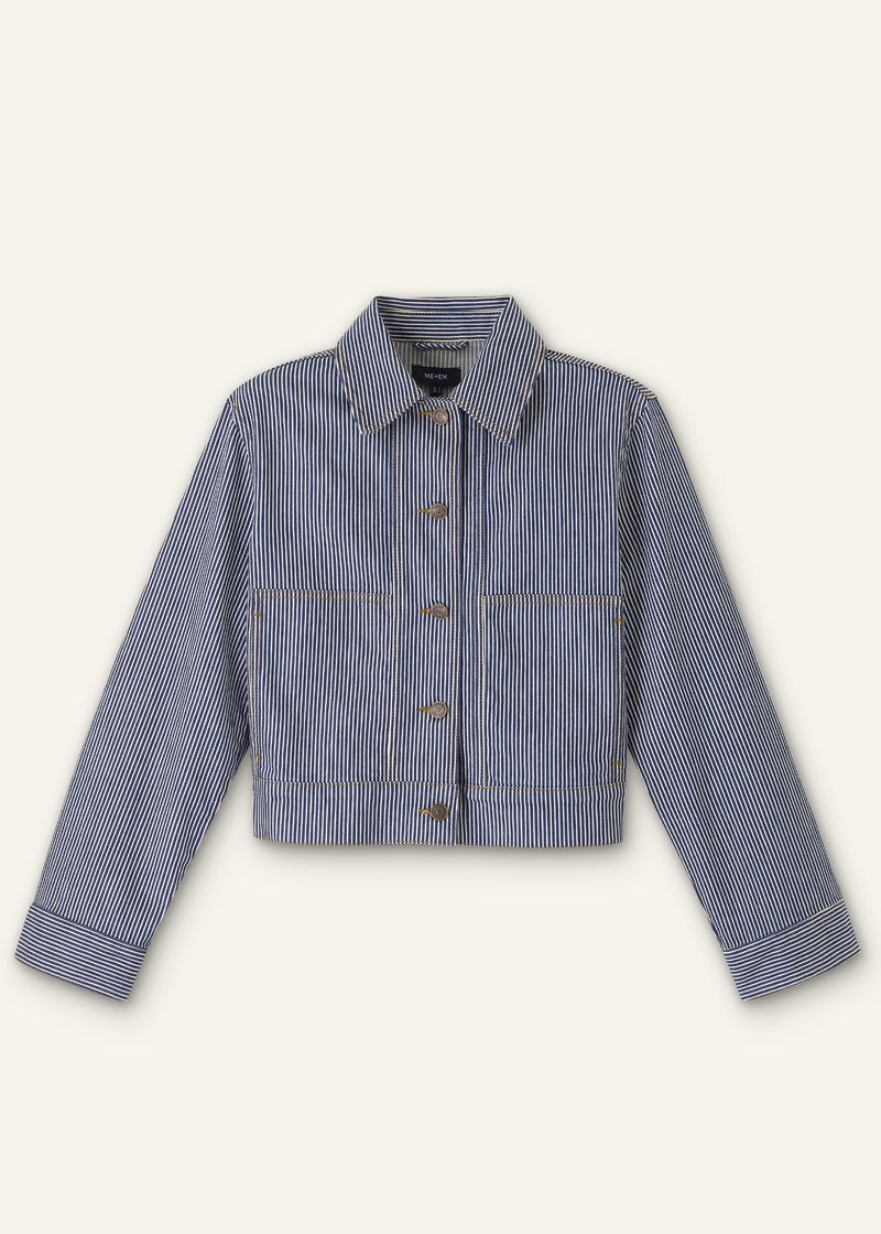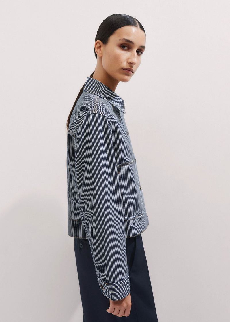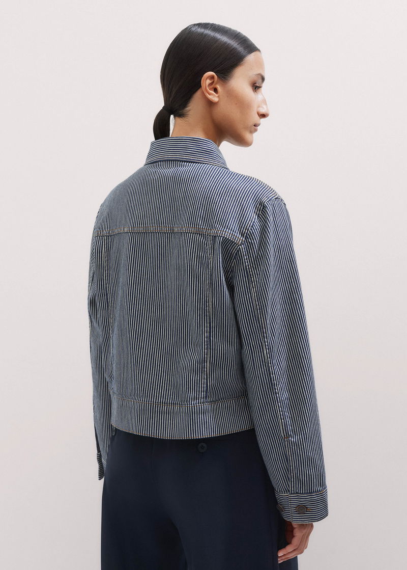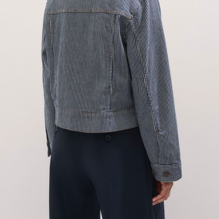 Cotton Denim Stripe Jacket Navy/Ecru