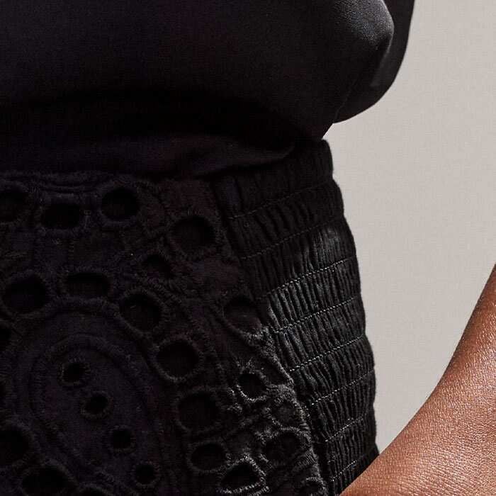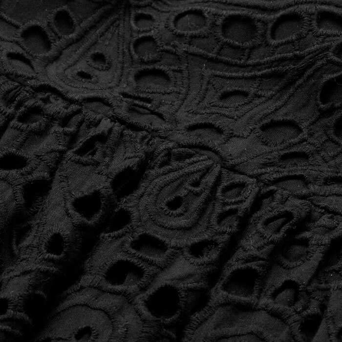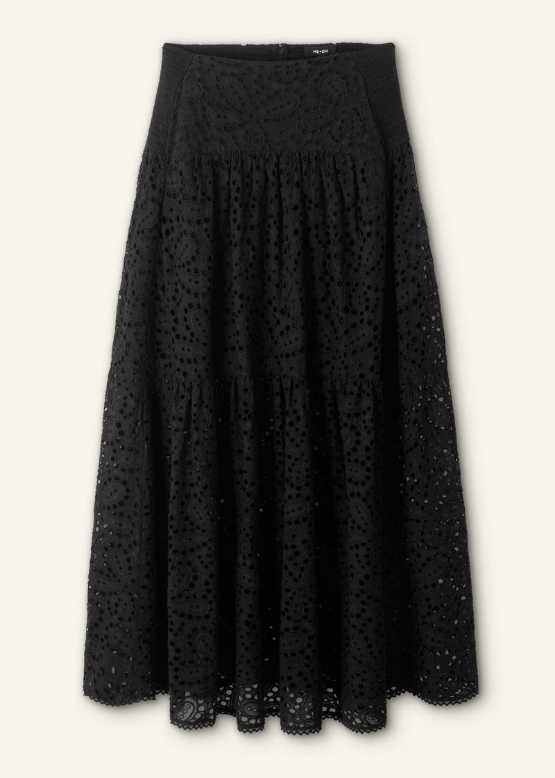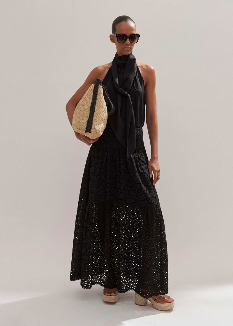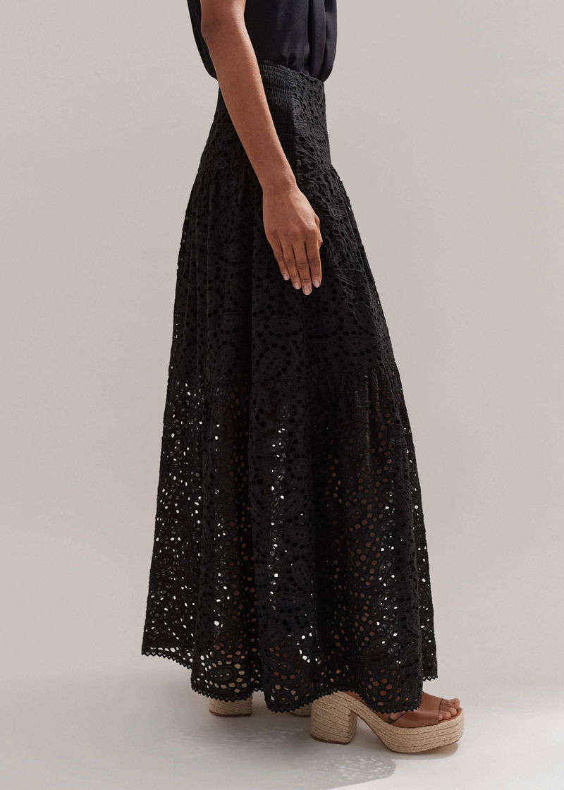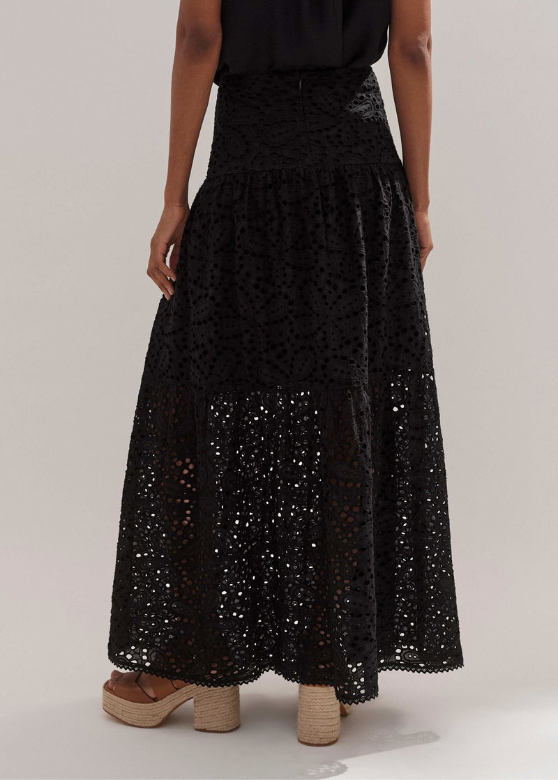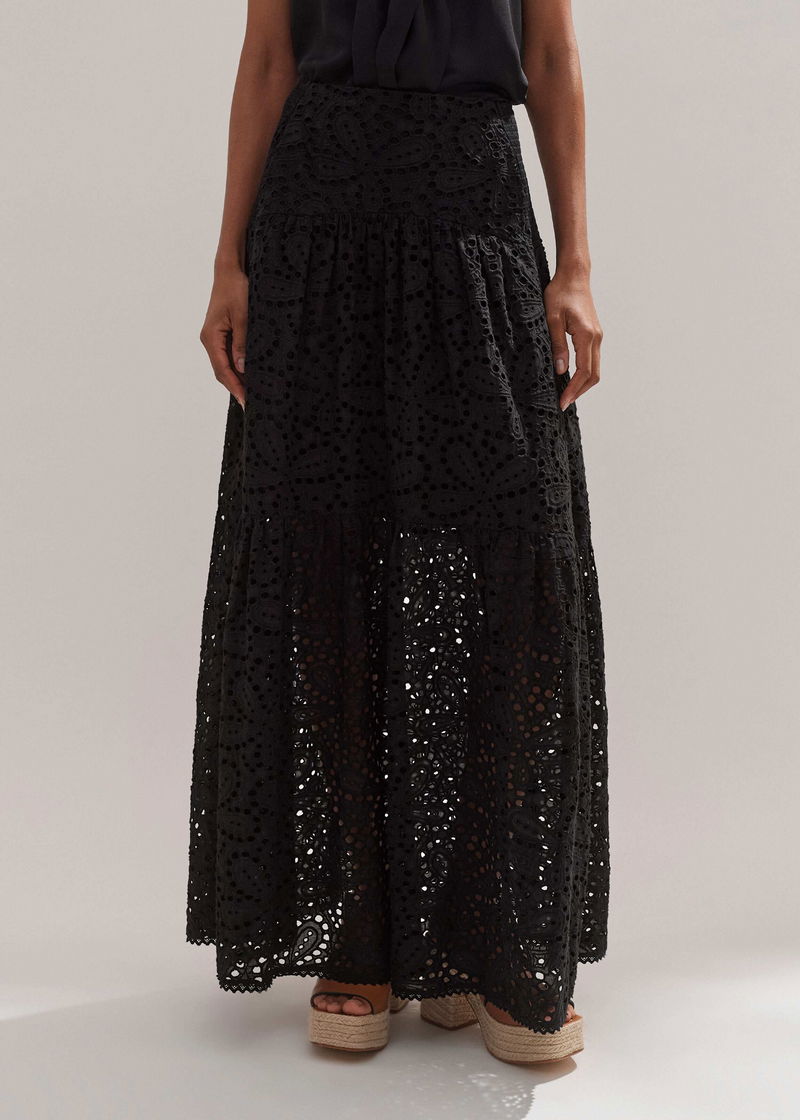 Cotton Lace Flower Broderie Maxi Skirt Black