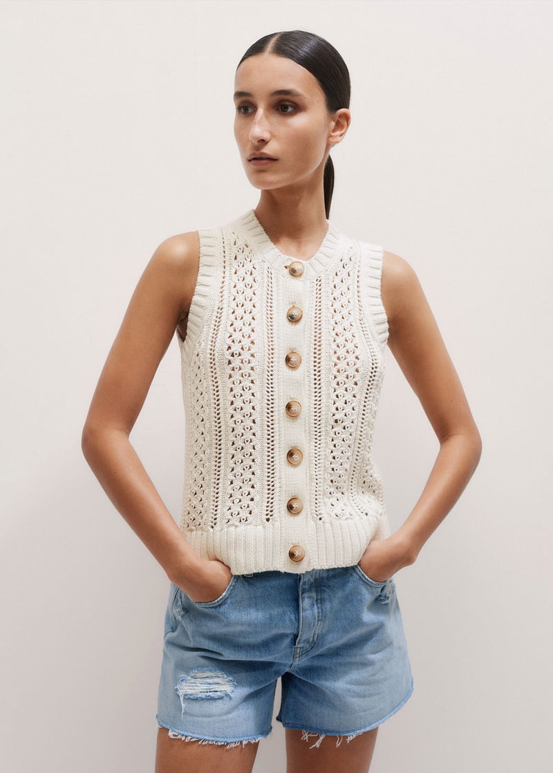 Cotton Open Stitch Vest Cream