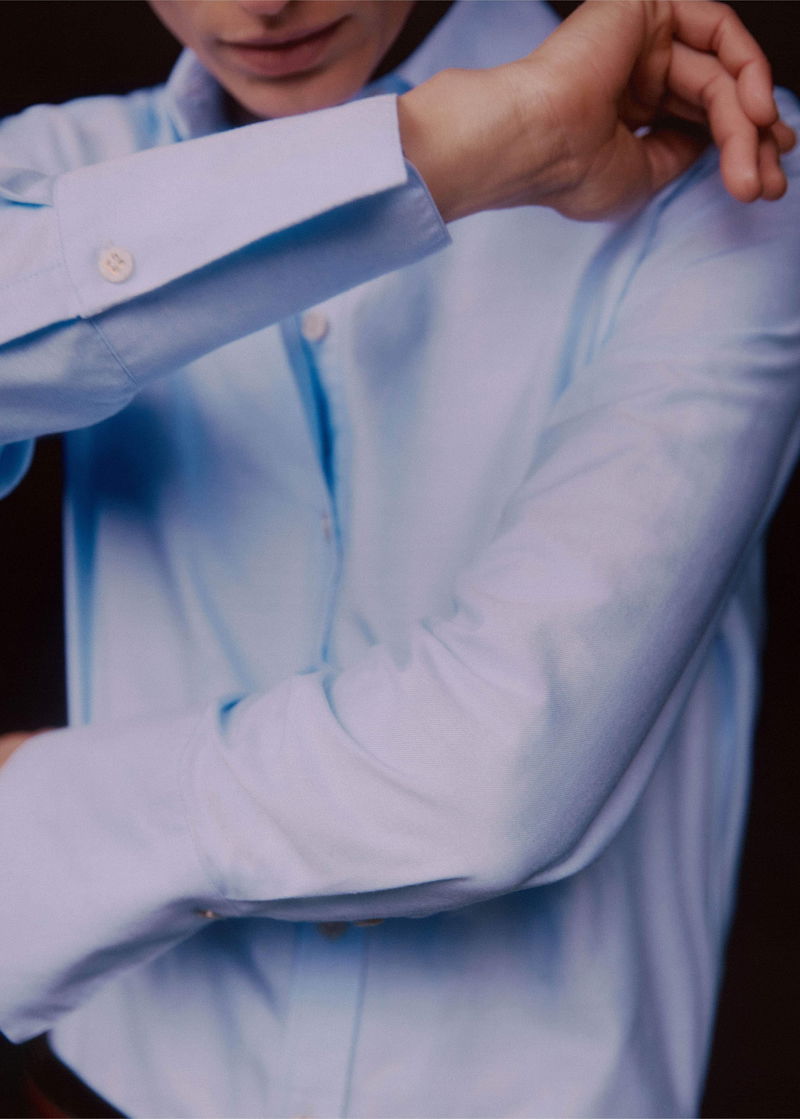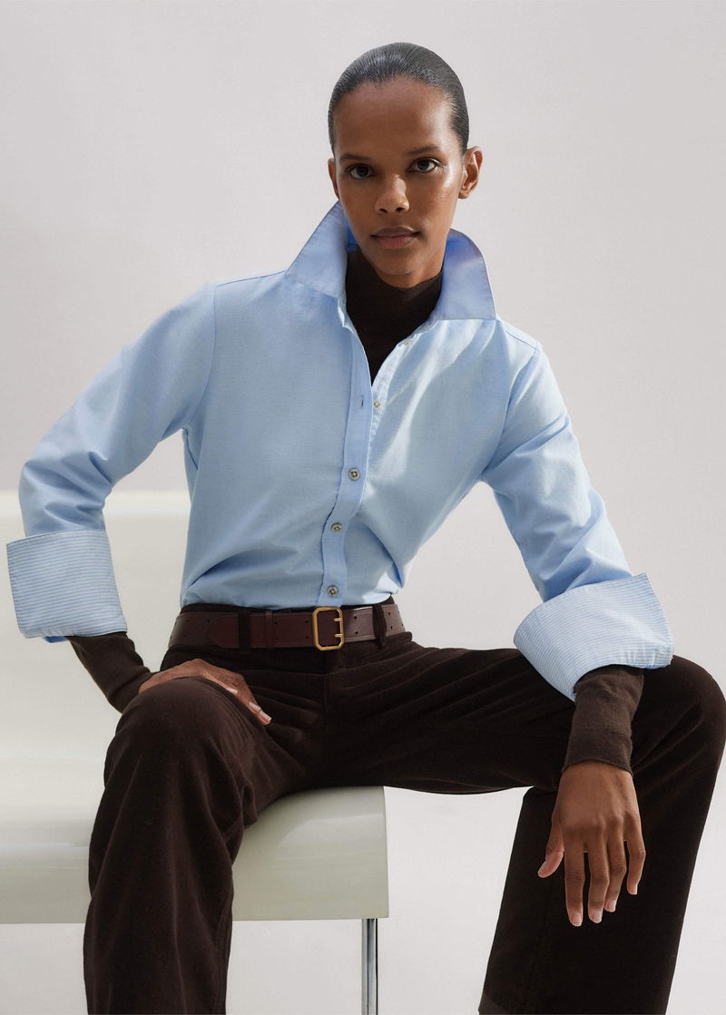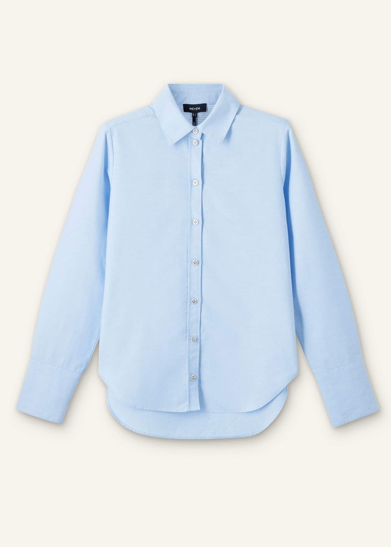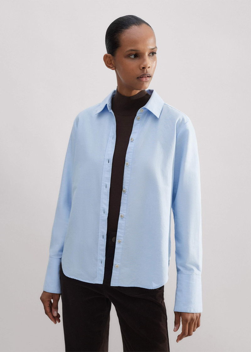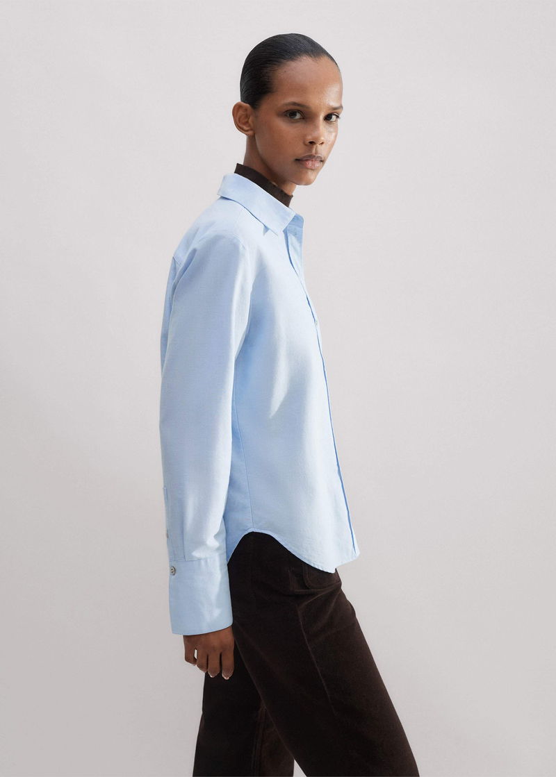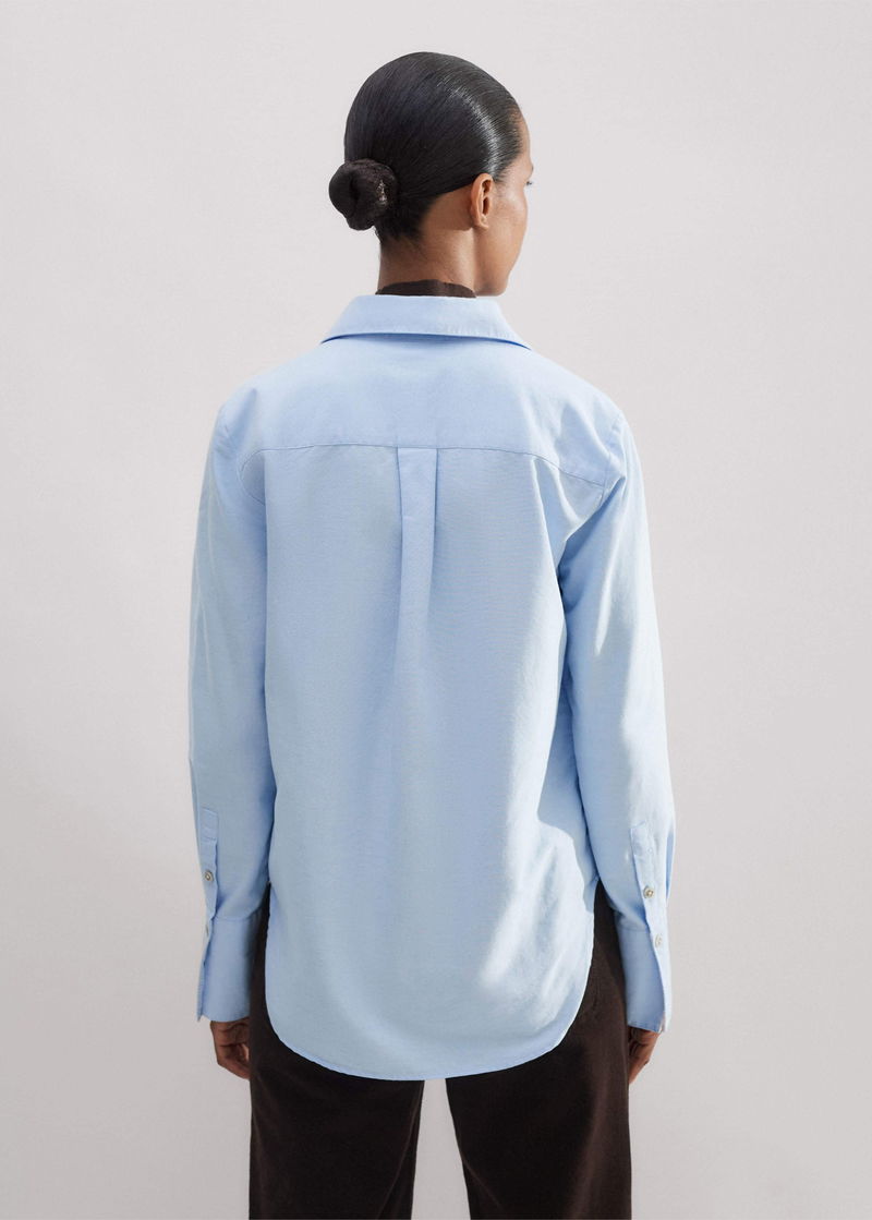 ME+EM's Blue Cotton Oxford Lived-In Forever Shirt is garment-washed for a more relaxed, lived-in feel.