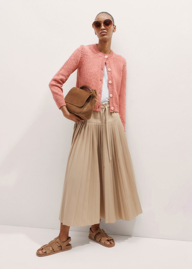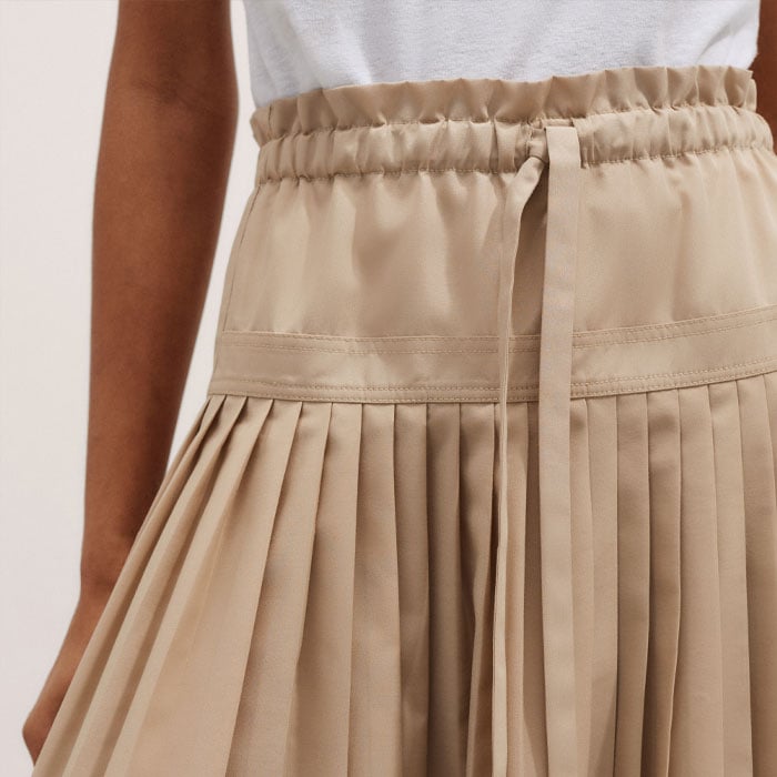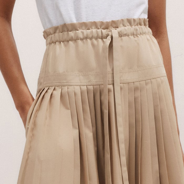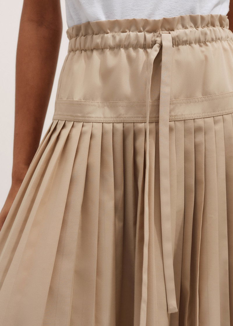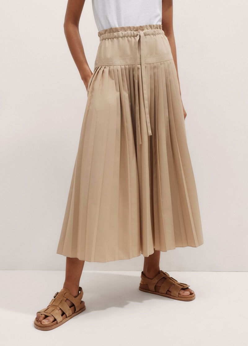 Cotton Pleated Maxi Skirt Pale Tan