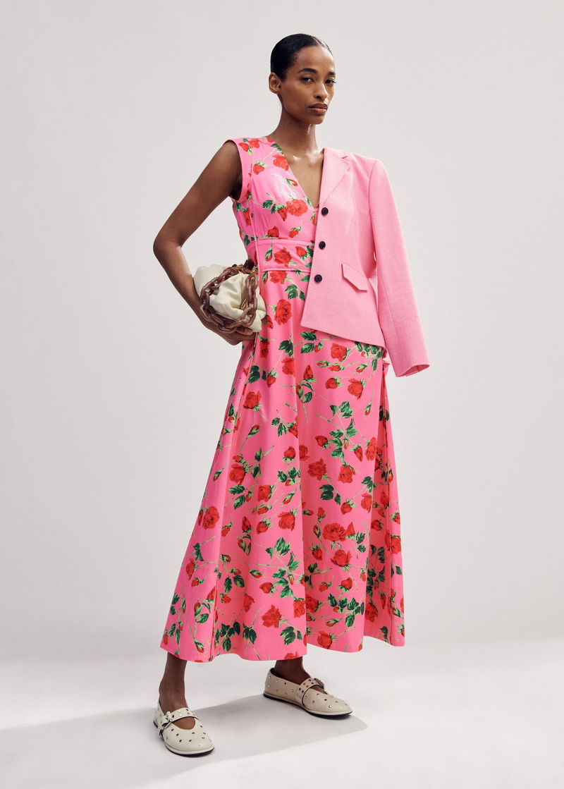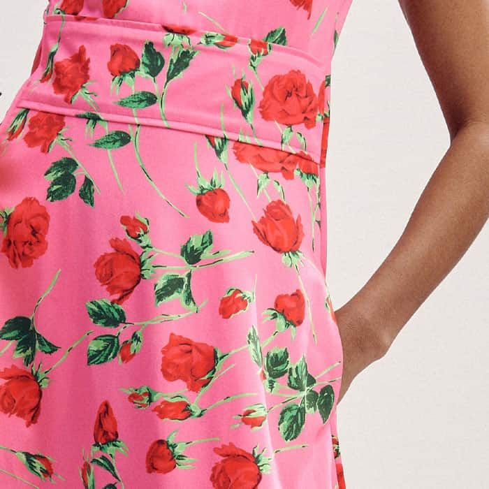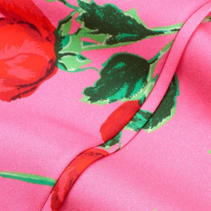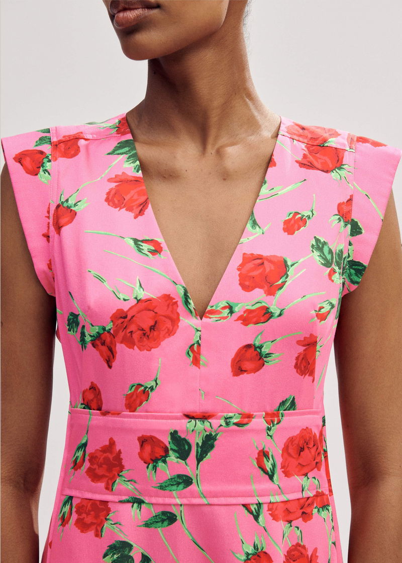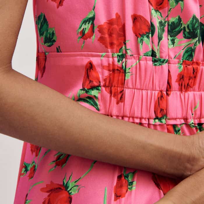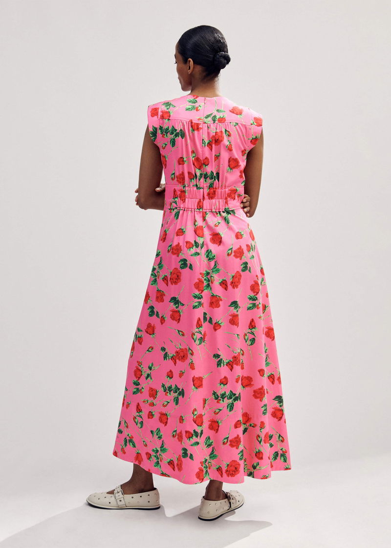 Cotton Sateen Rose Print Maxi Dress Pink/Green/Red