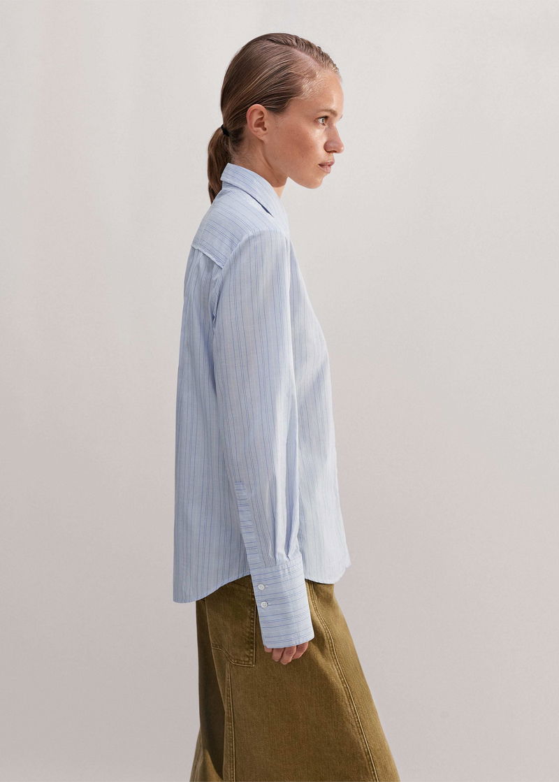 Cotton Silk Supersoft Forever Fine Stripe Shirt Blue/White