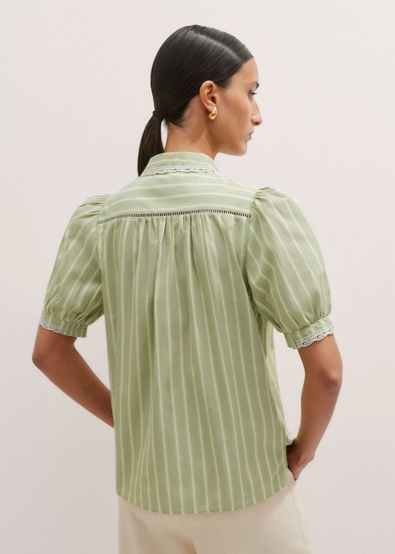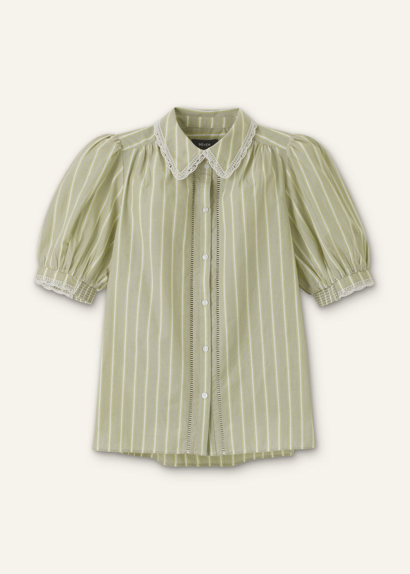 Cotton Stripe Lace Trim Blouse Silver Sage