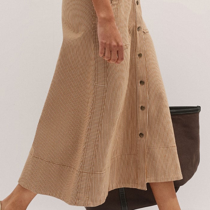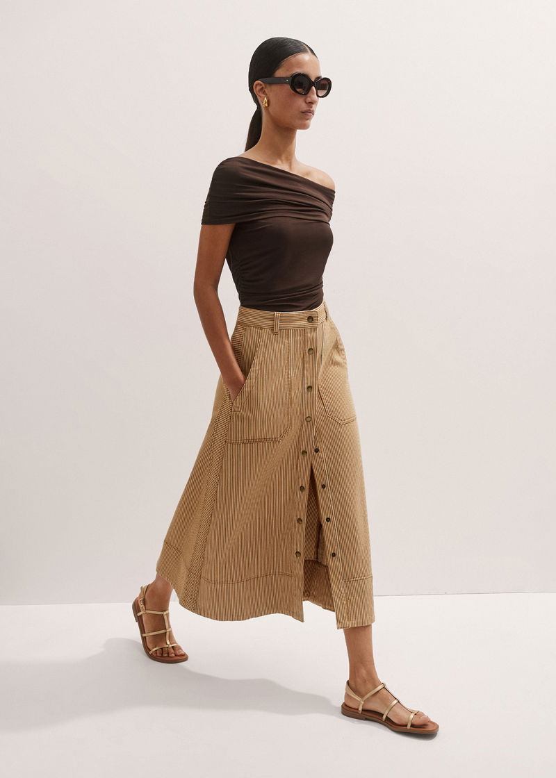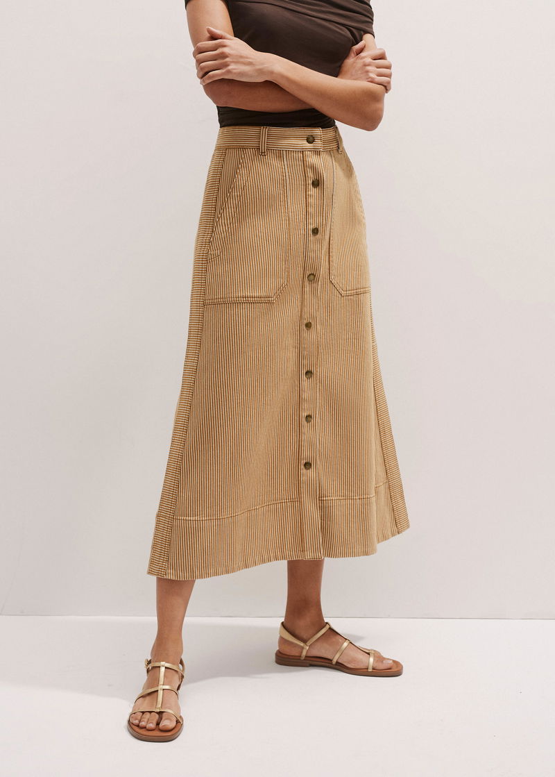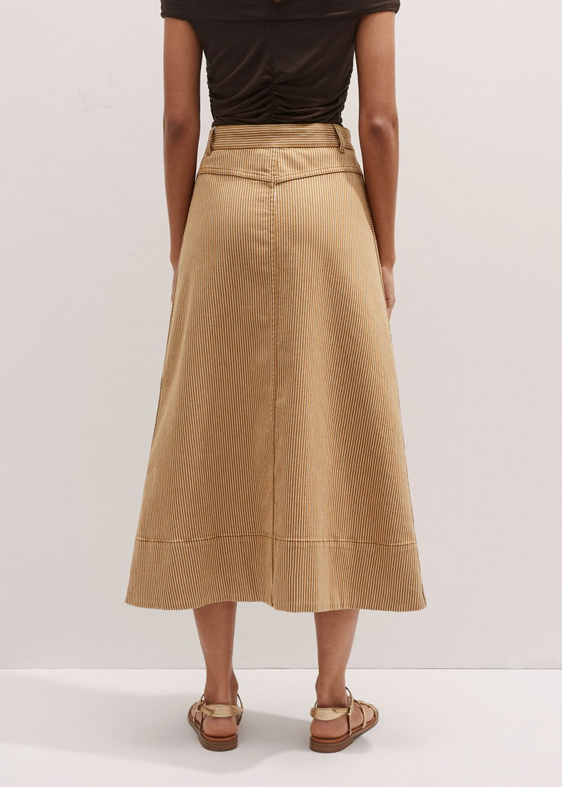 Cotton Stripe Maxi Skirt Toffee/Ecru