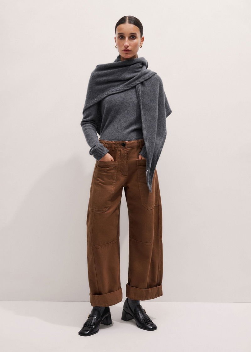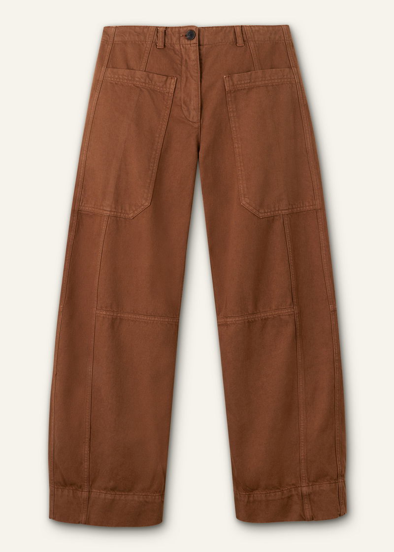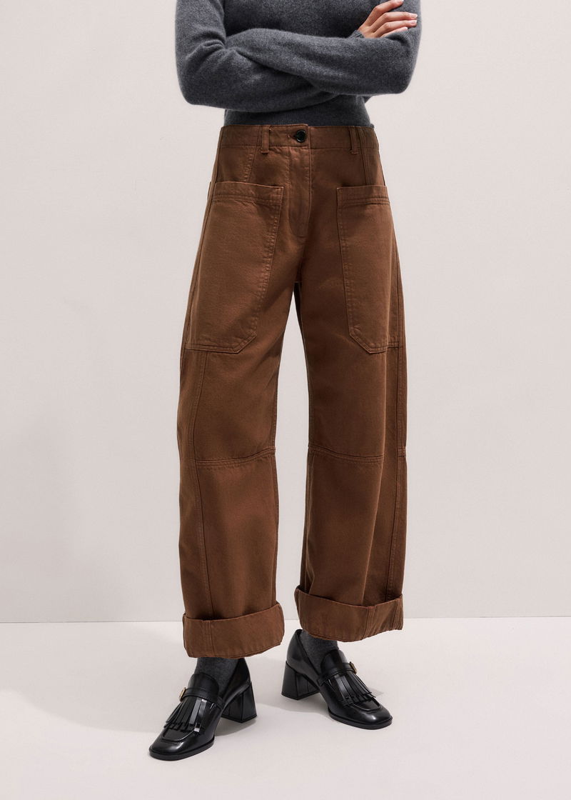 Cotton Twill Exaggerated Barrel Trouser Burnt Caramel