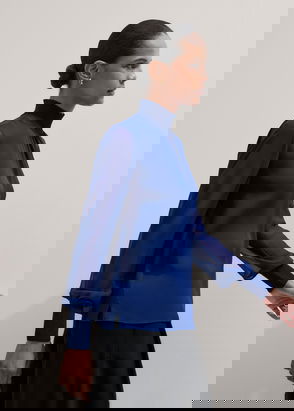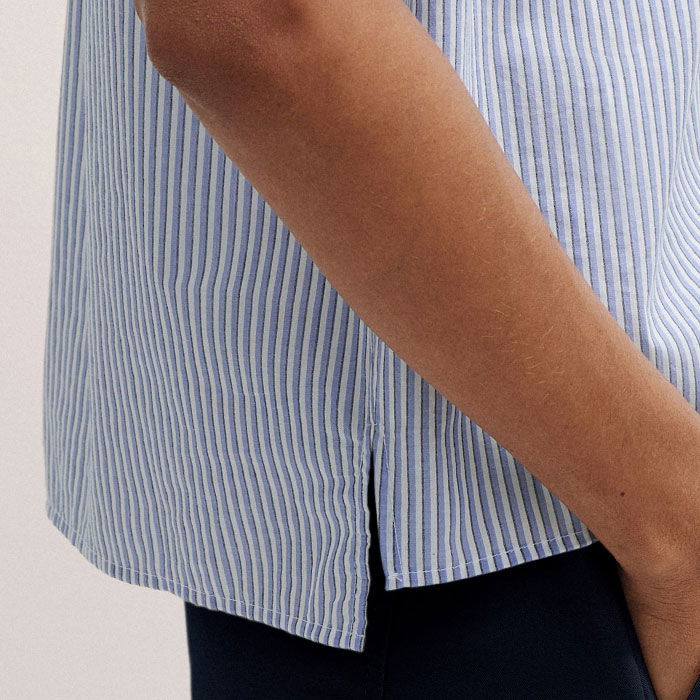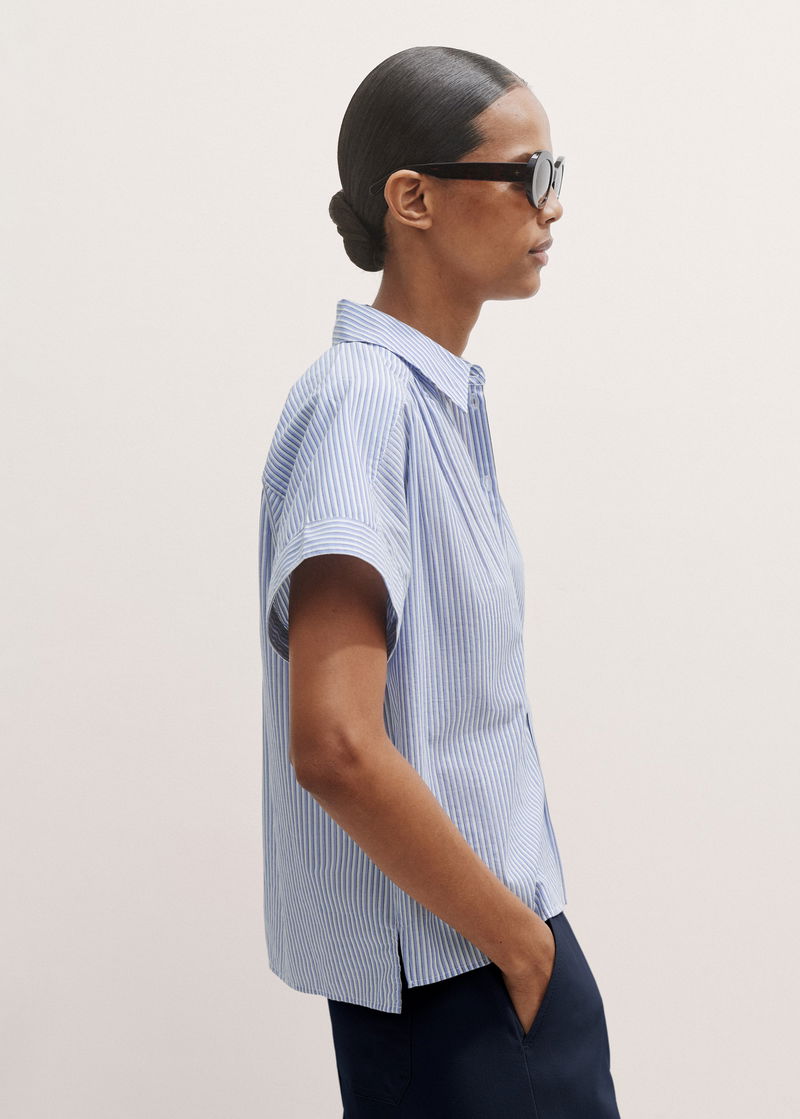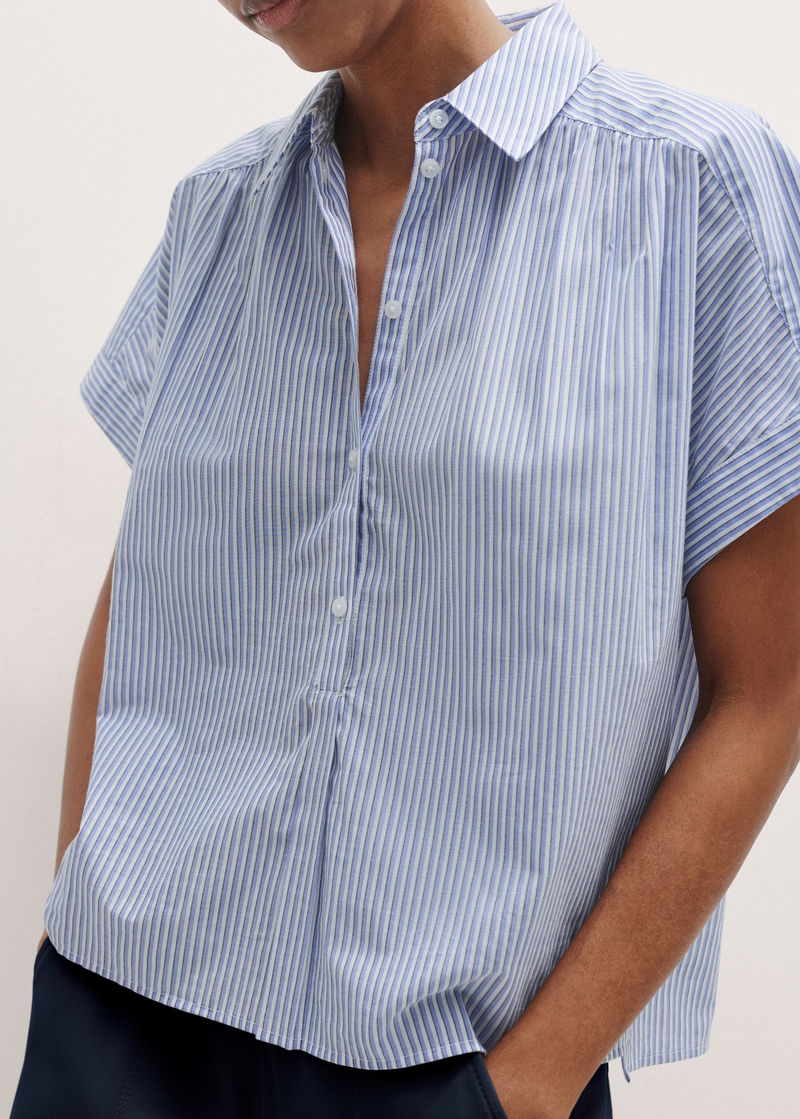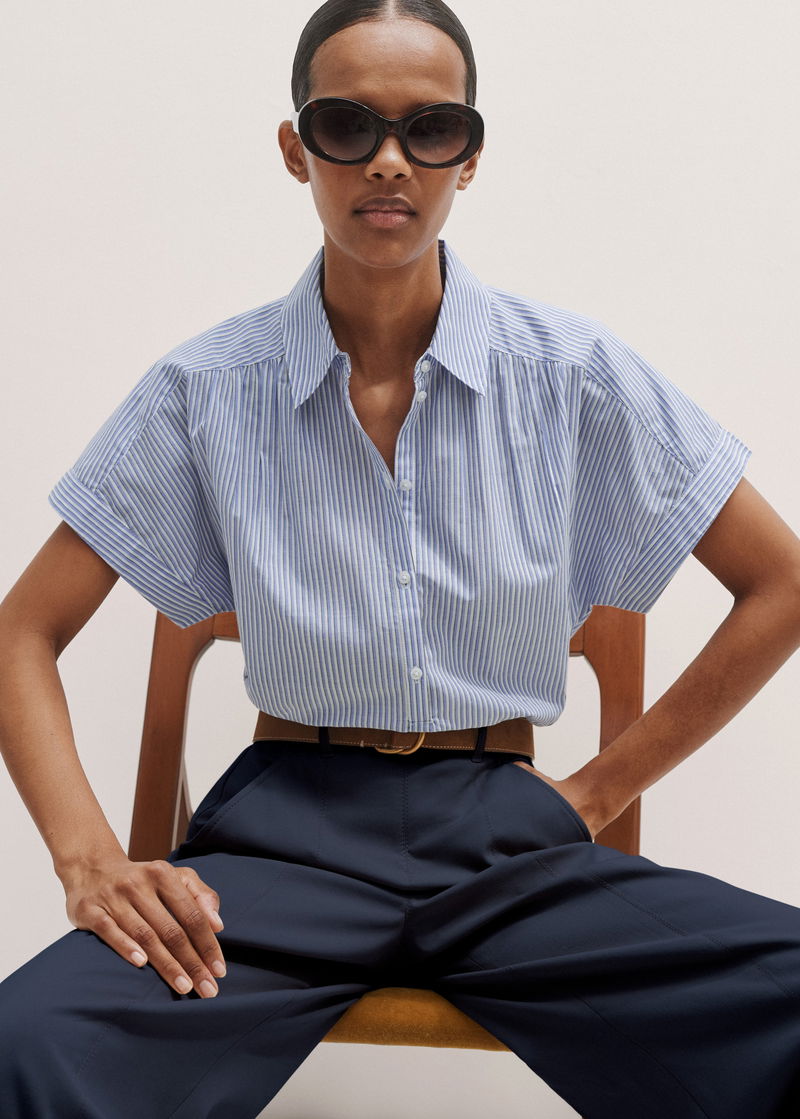 ME+EM's Blue Stripe Boxy Blouse features a horizontal seam across the back to create the perfect boxy fit.