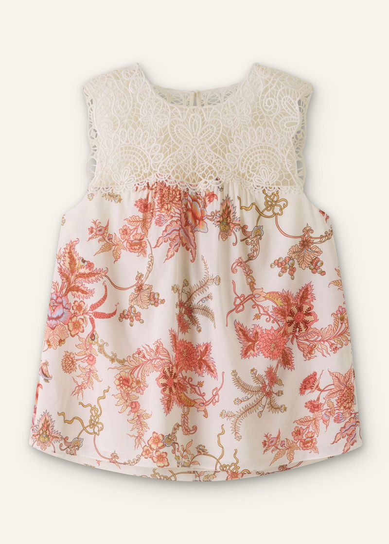 Cotton Wild Bloom Print Swing Top Light Cream/Peach/Multi