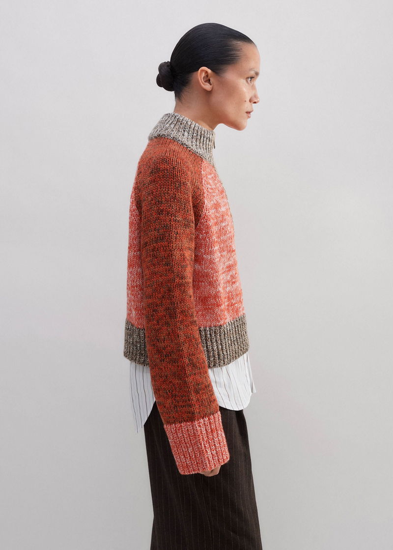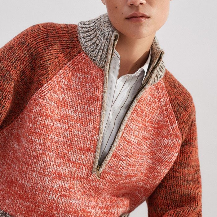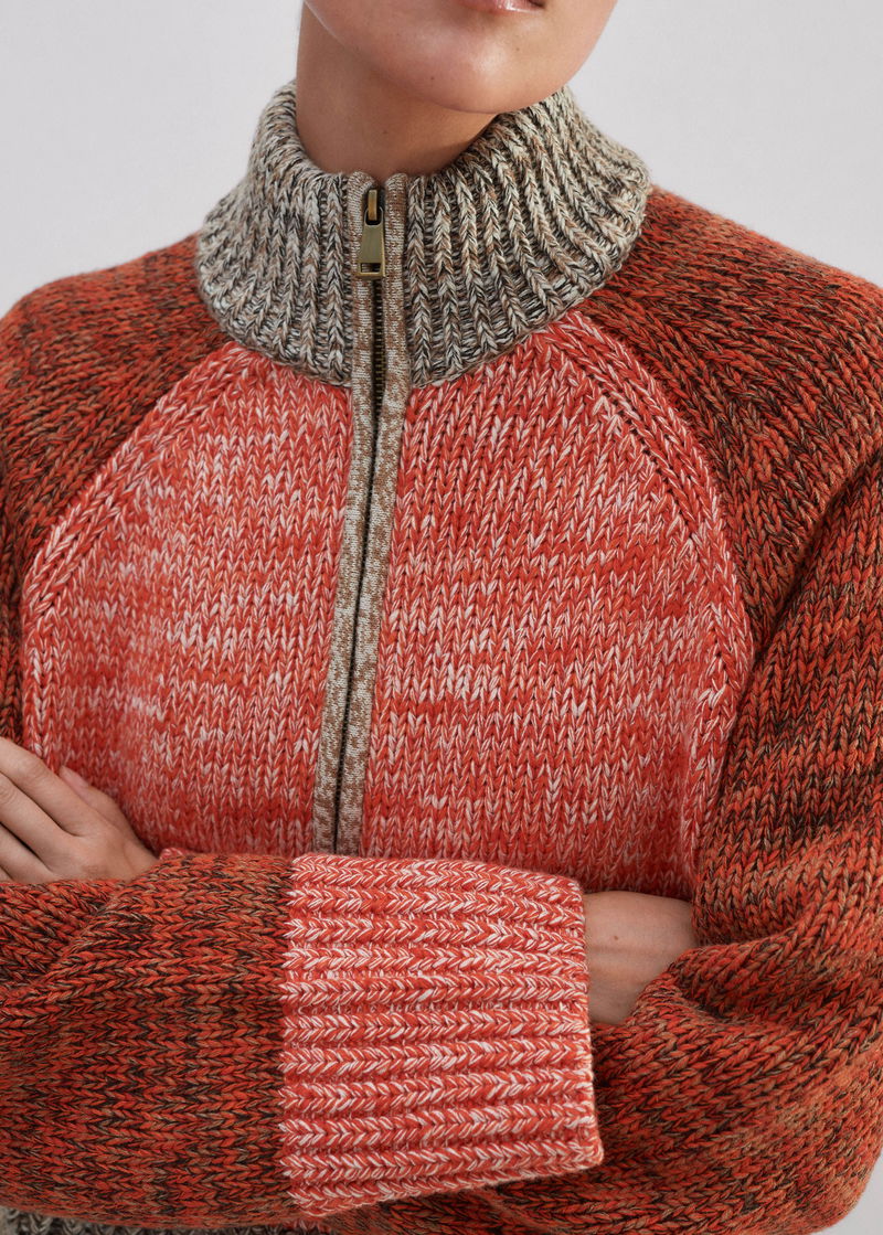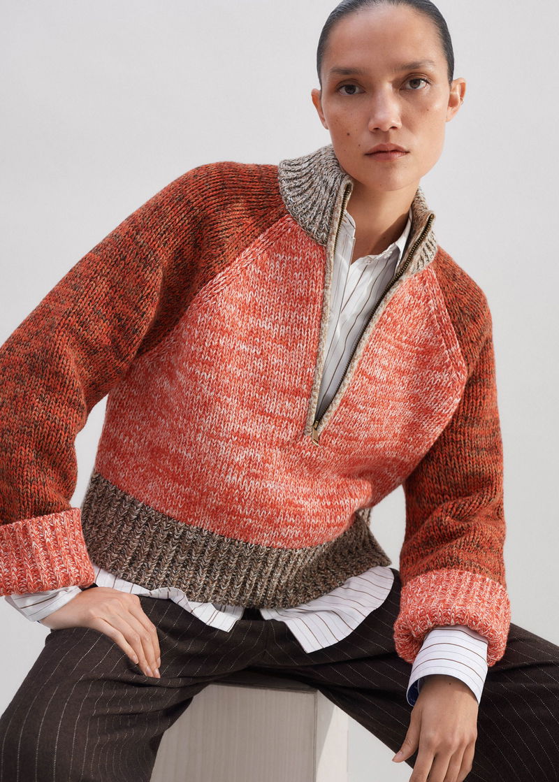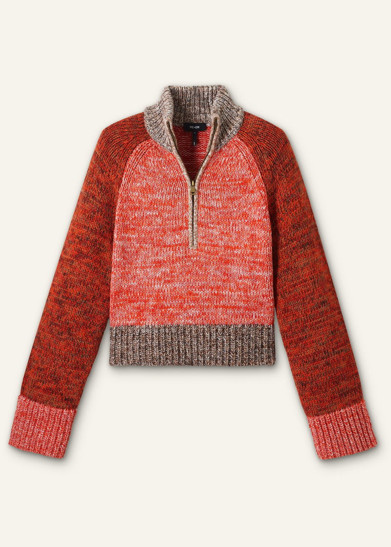 Cotton Wool Chunky Mouliné Half Zip Jumper Orange Spice Mouliné
