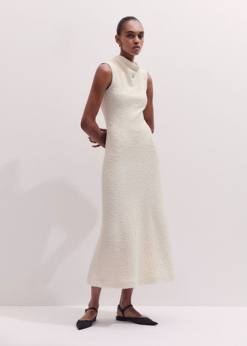 Cowl Neck Fit And Flare Maxi Dress Light Cream