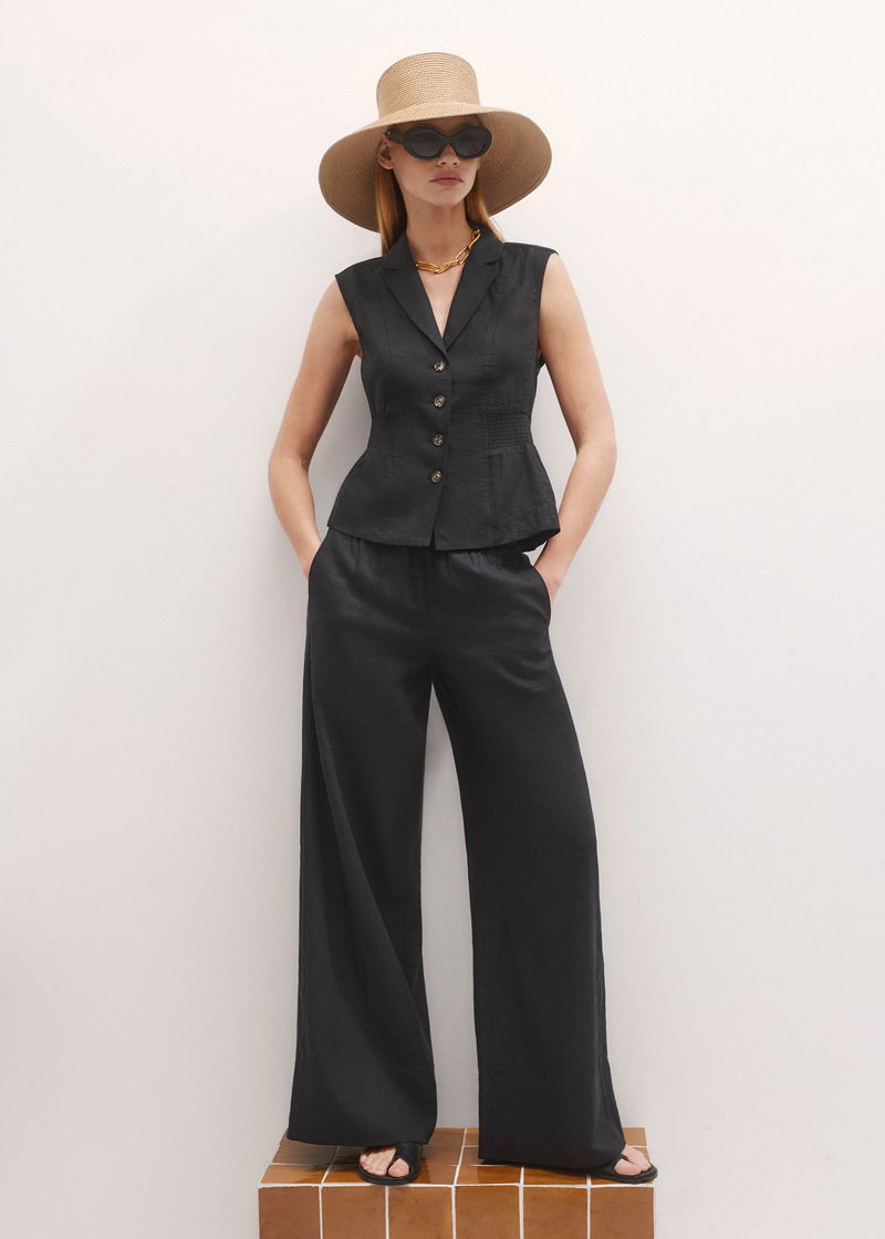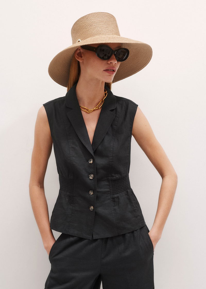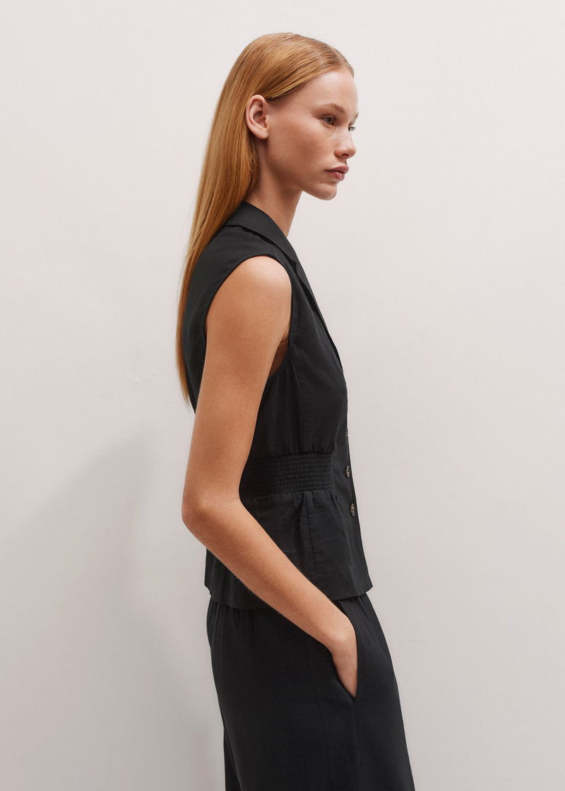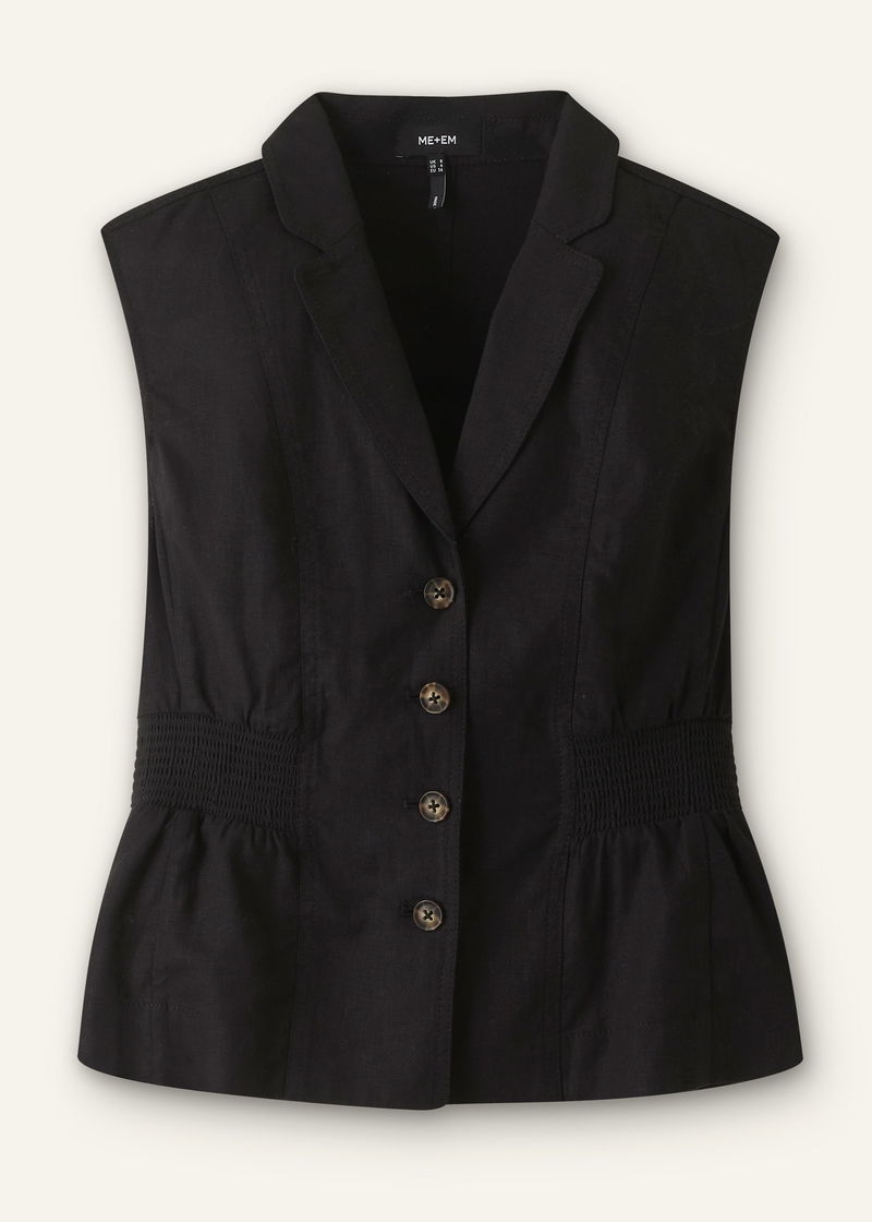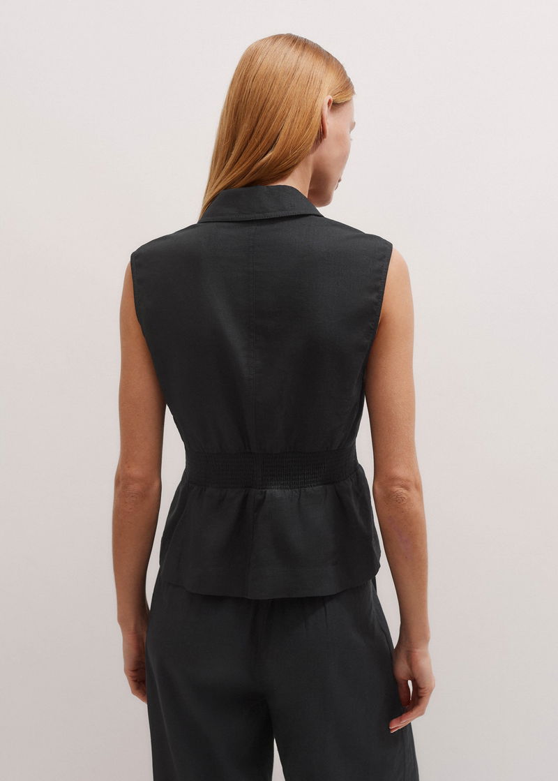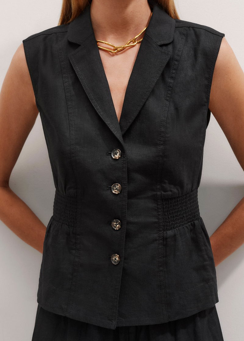 Crease-Less Linen Shirred Waist Waistcoat Black