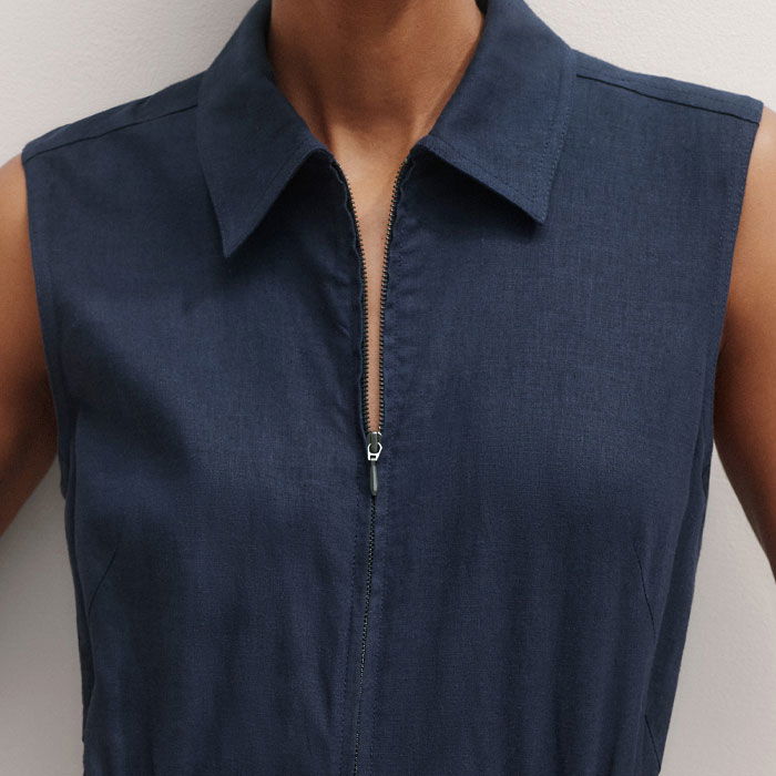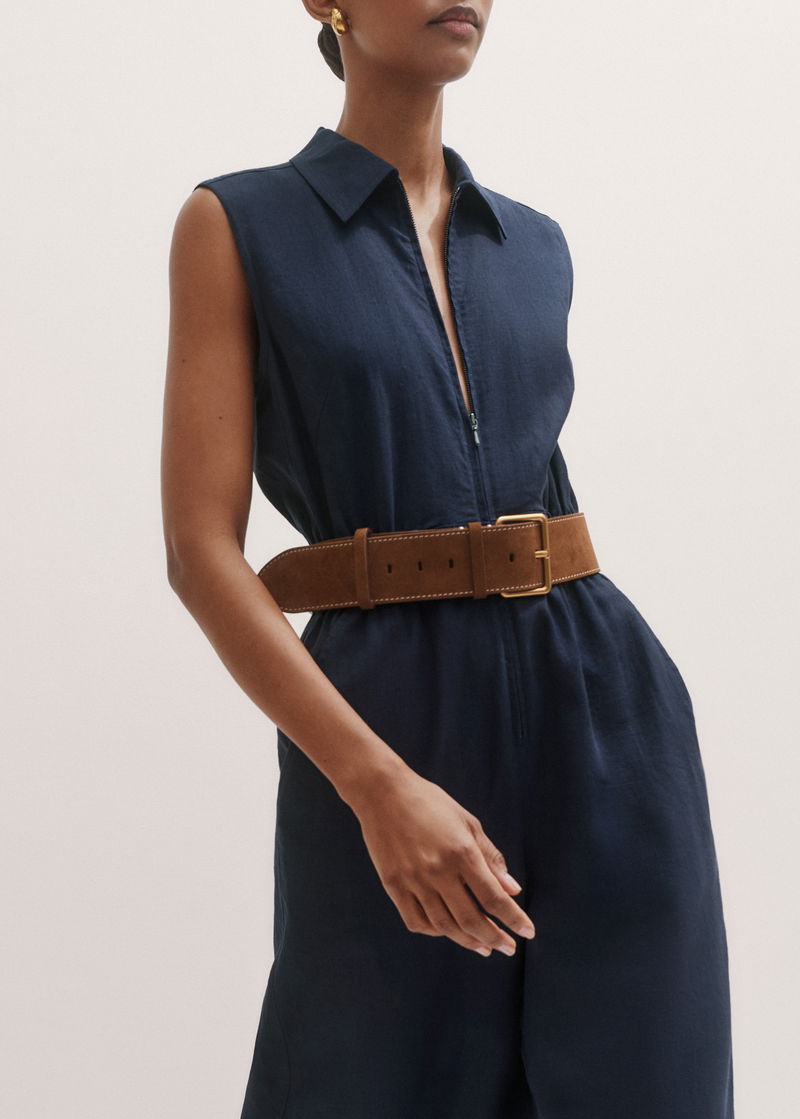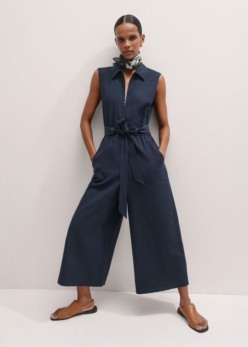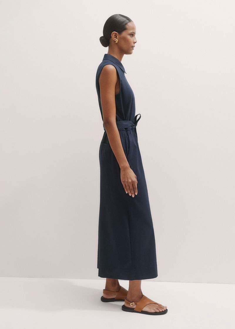 Crease-Less Linen Sleeveless Jumpsuit + Belt Navy