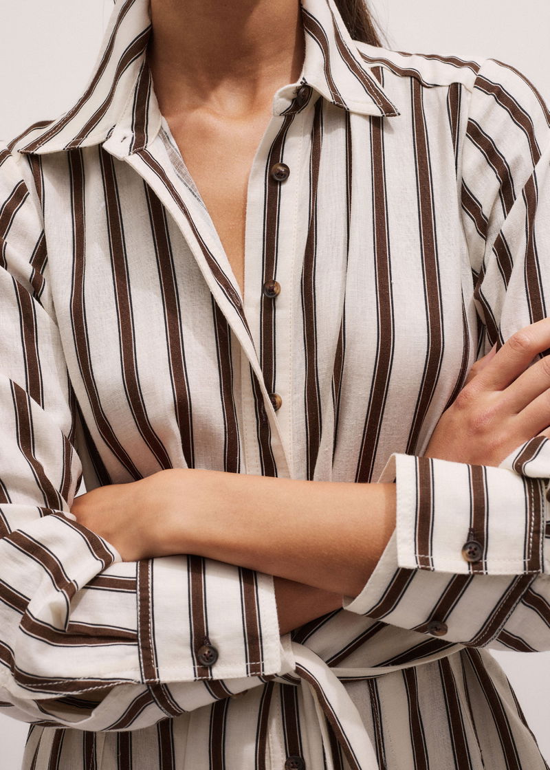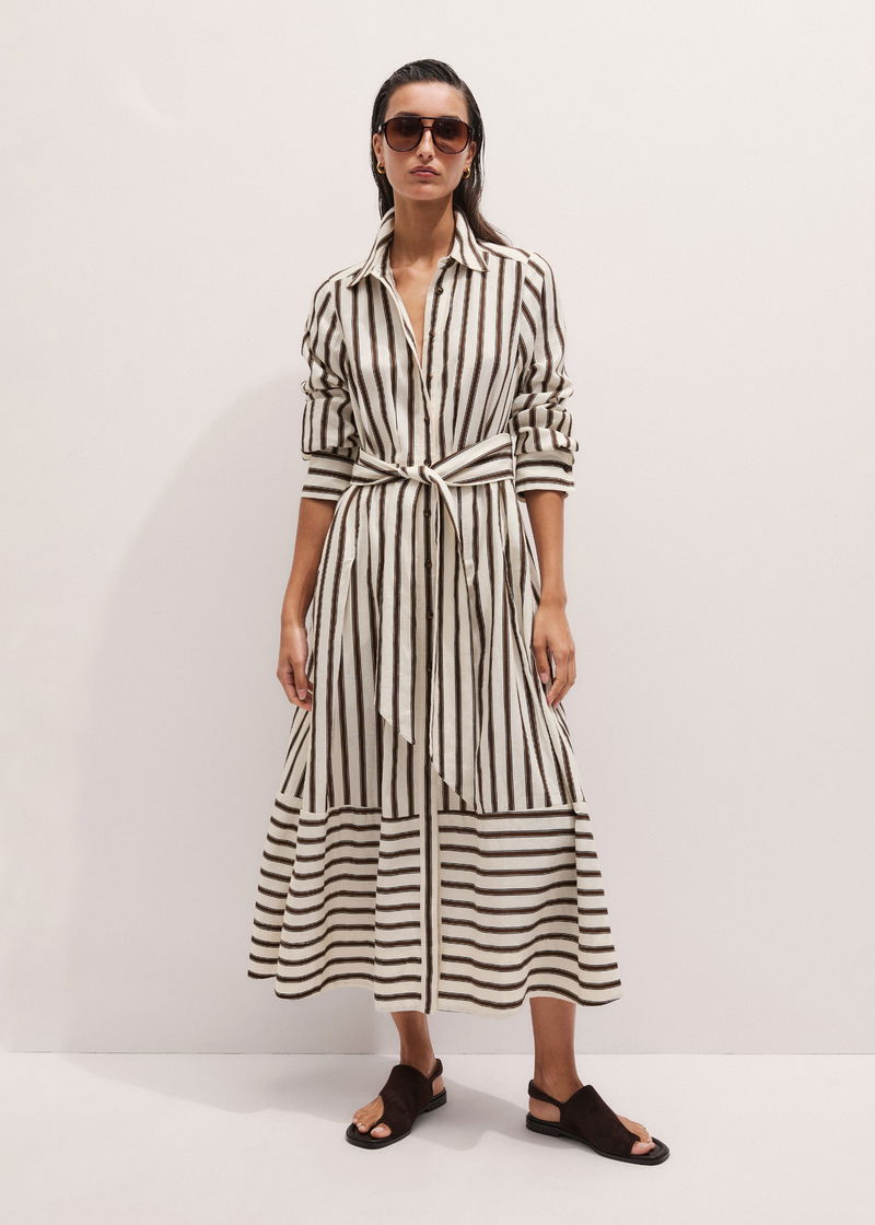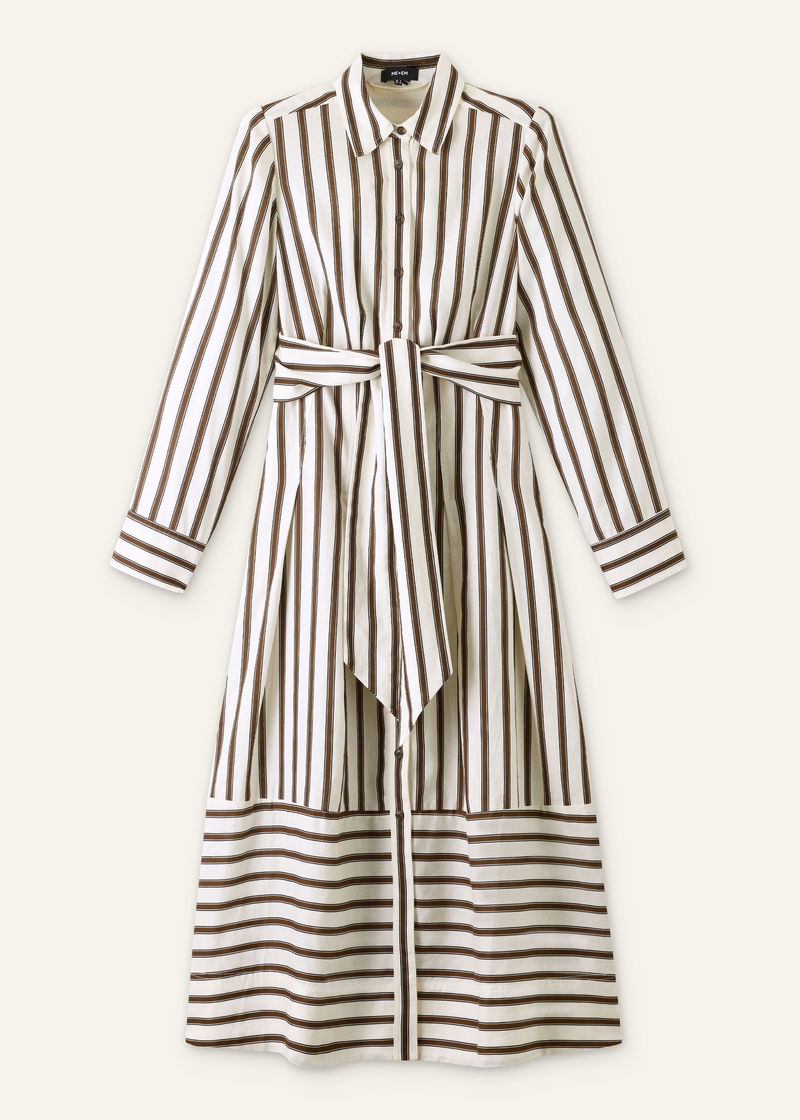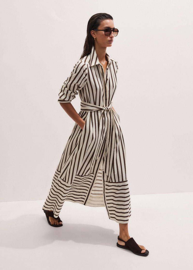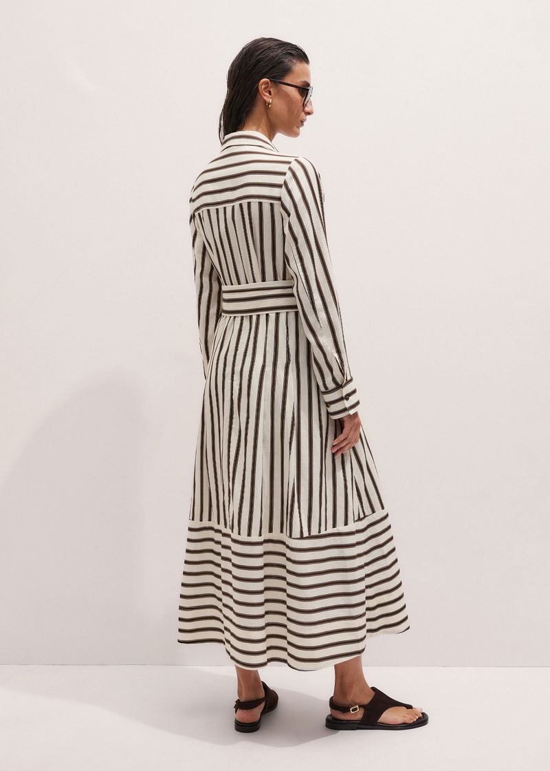 Crease-Less Linen Spring Stripe Maxi Dress + Belt Light Cream Multi